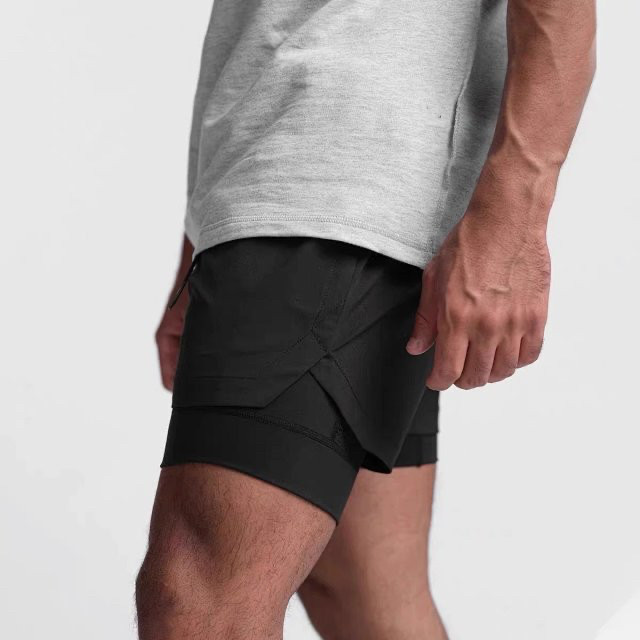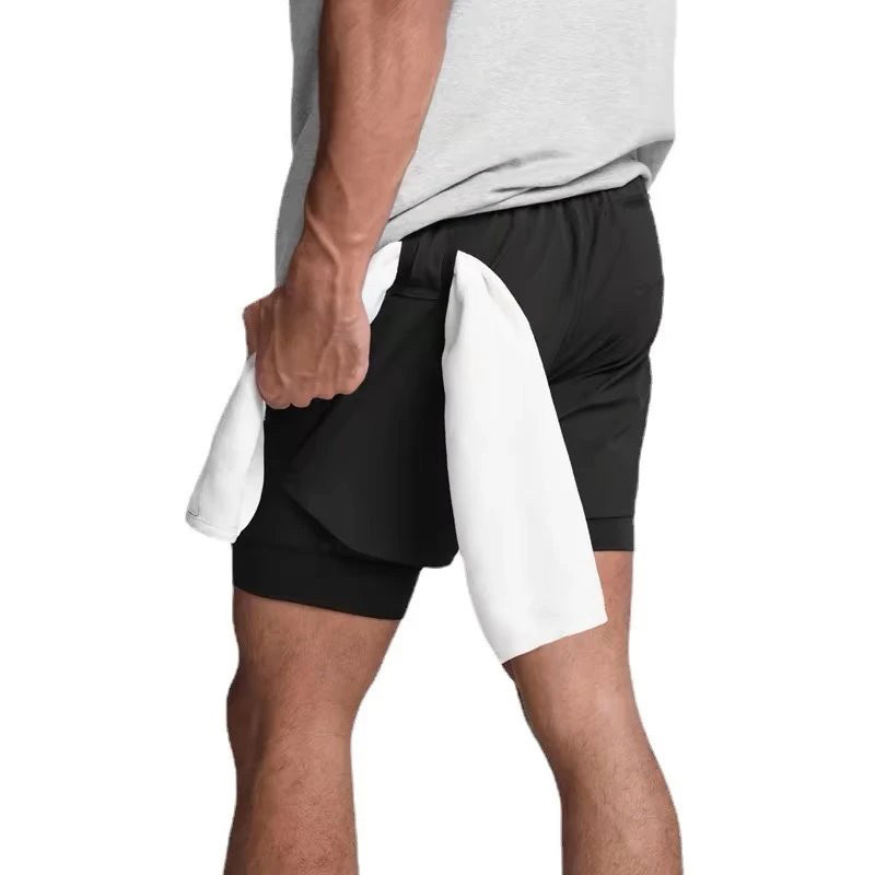 Al Men's Sports Shorts Double-Layer Yoga Fitness Breathable Basketball Training Cycling Jogging Casual Shorts