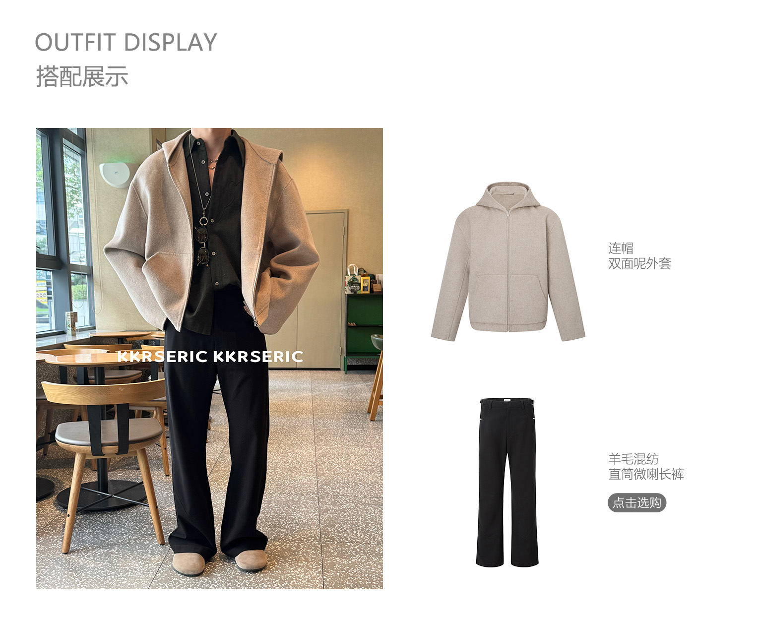 Kkrs Eric Italian Imported Wool Camel Hair Ac Style High-Weight Double-Sided Wool Zipper Coat