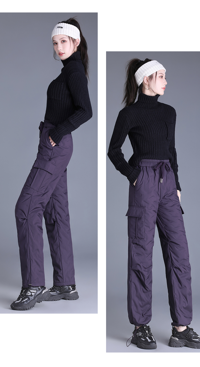 Women's down Pants for Outdoor Wear in Extreme Cold Temperatures Below -40 Degrees, Snow Pants for Middle-Aged Mothers, Sports Casual Straight-Leg Pants