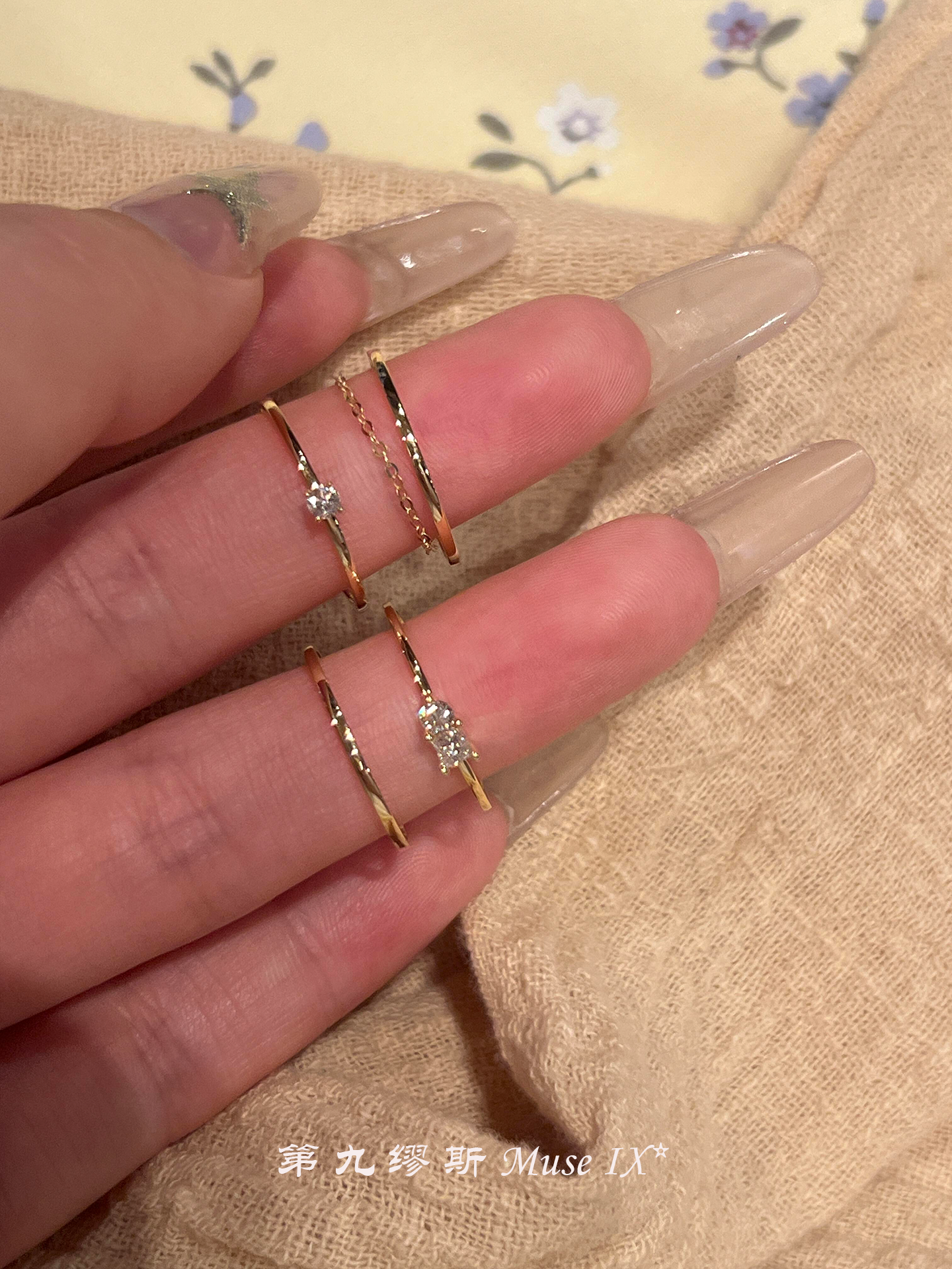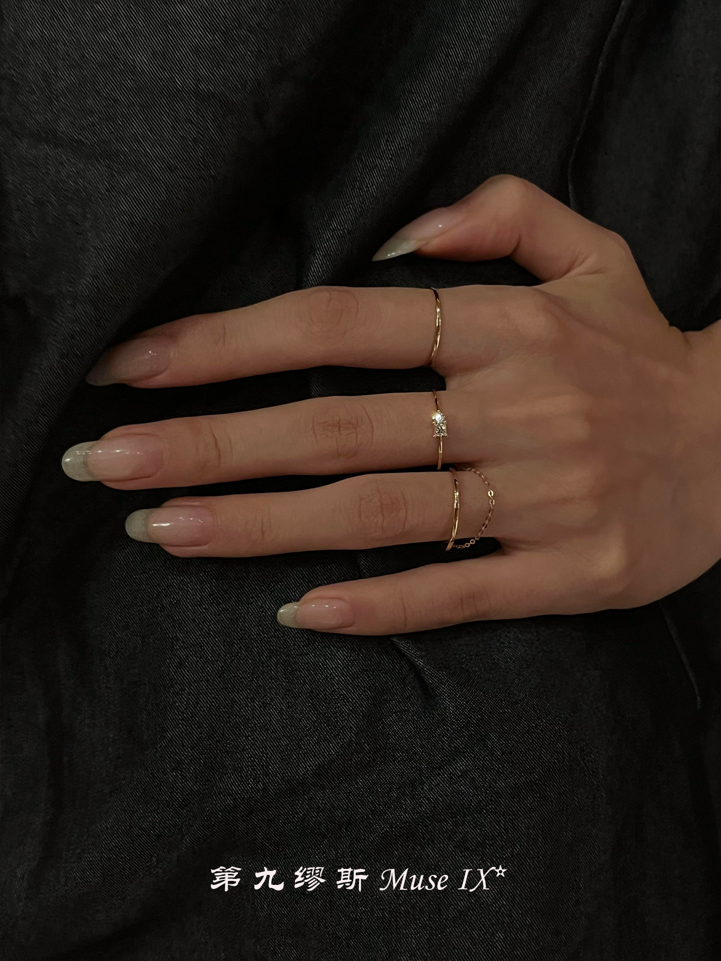 【Ninth Muse】Recommended for Layering! Gold Square Diamond Plain Band Ring, Simple and High-End Feel, Soft Chain Index Finger Ring