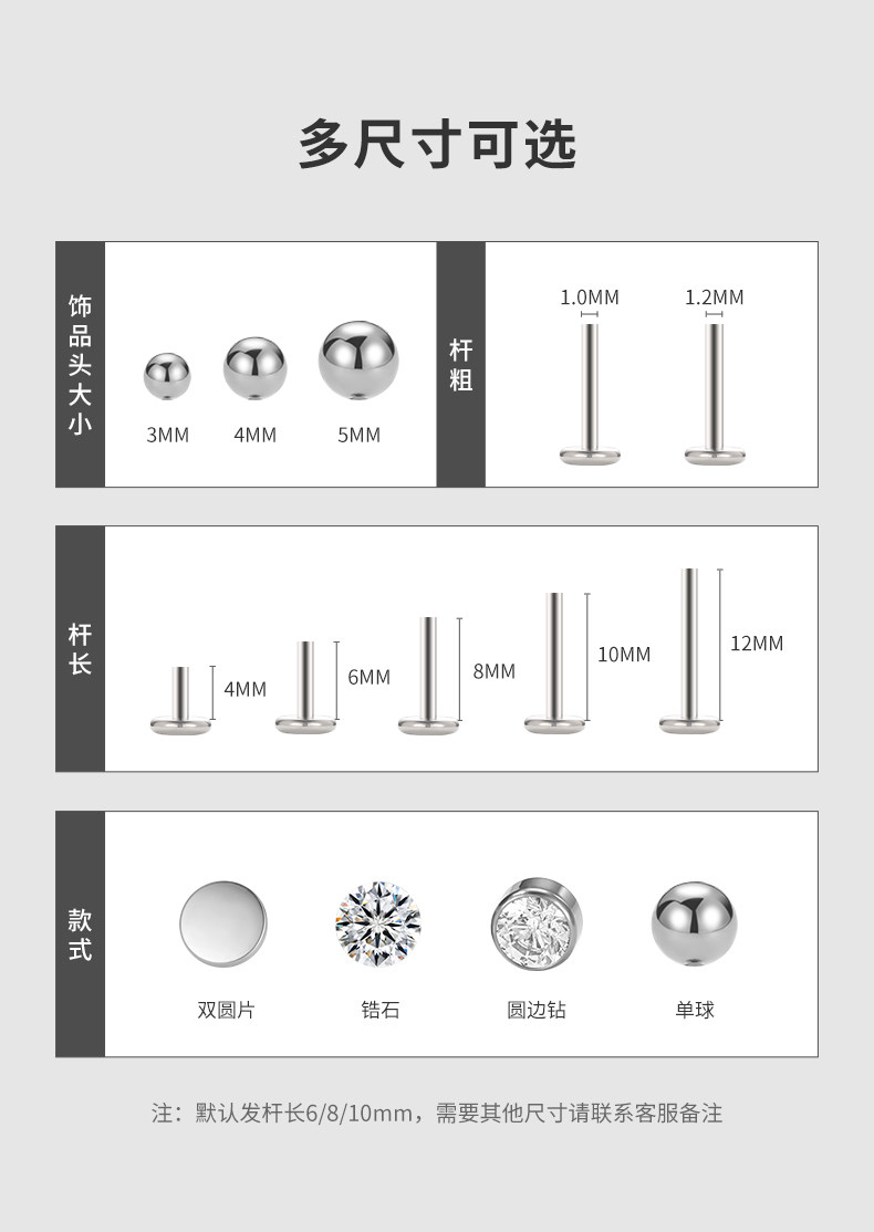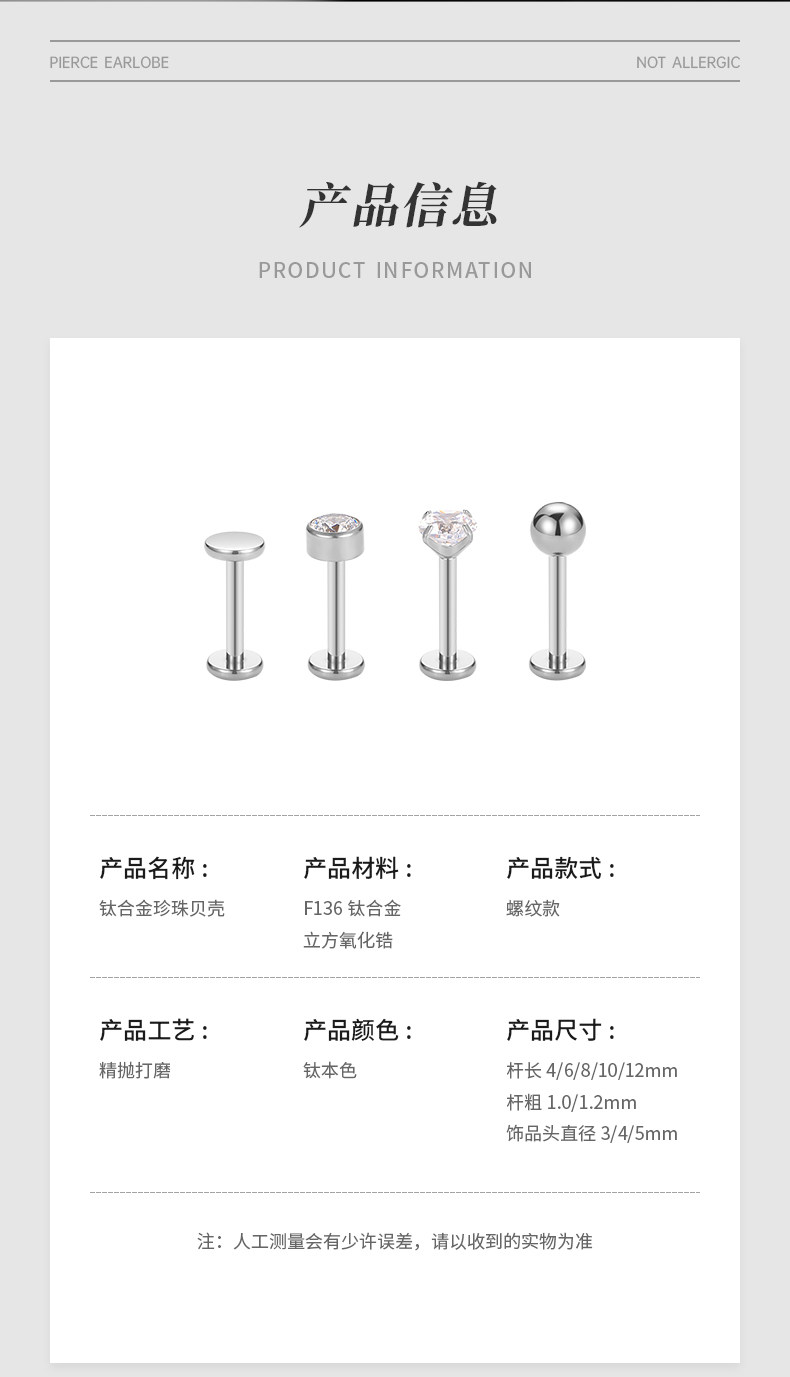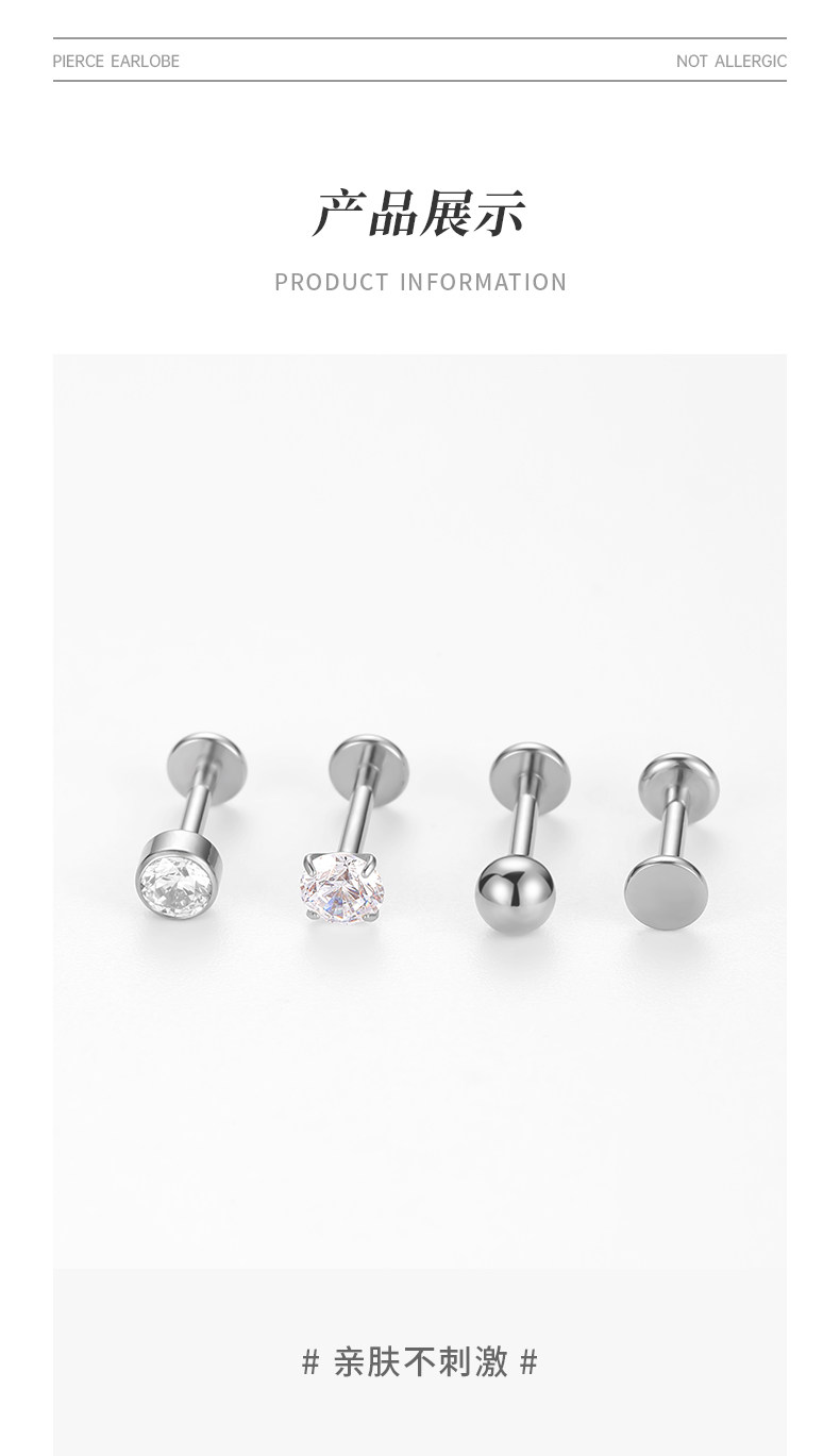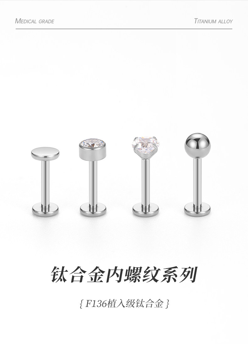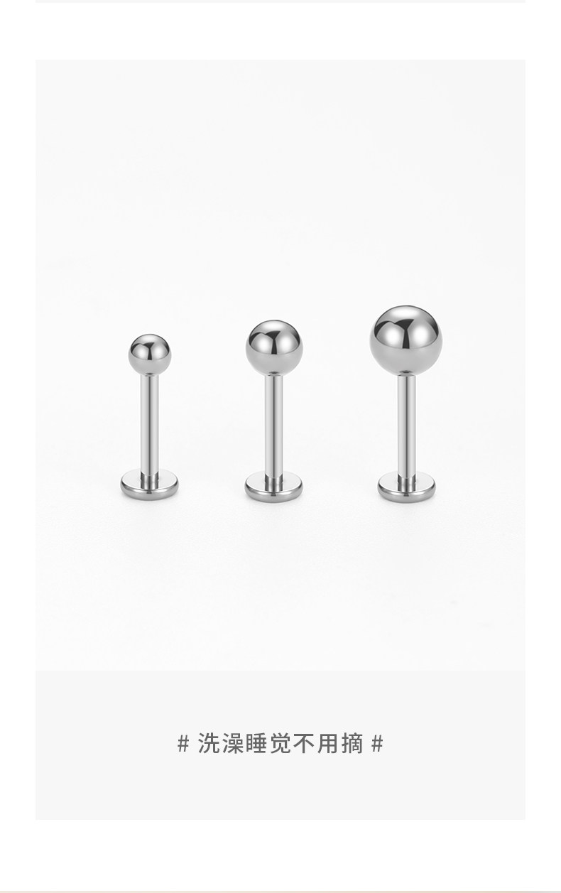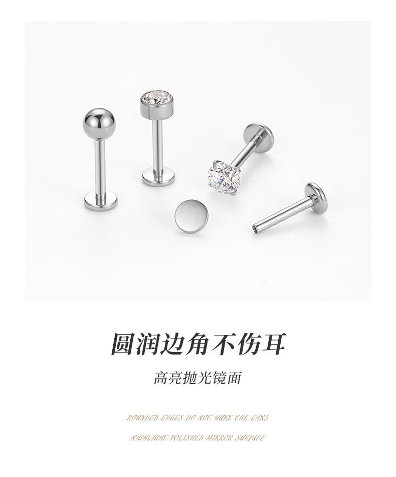 F136 Medical-Grade Titanium Alloy Ear Studs for Ear Piercing, Ear Bone Studs, Flat-Bottom Basic Model, Internal Spiral Cochlear, No Need to Remove for Sleeping