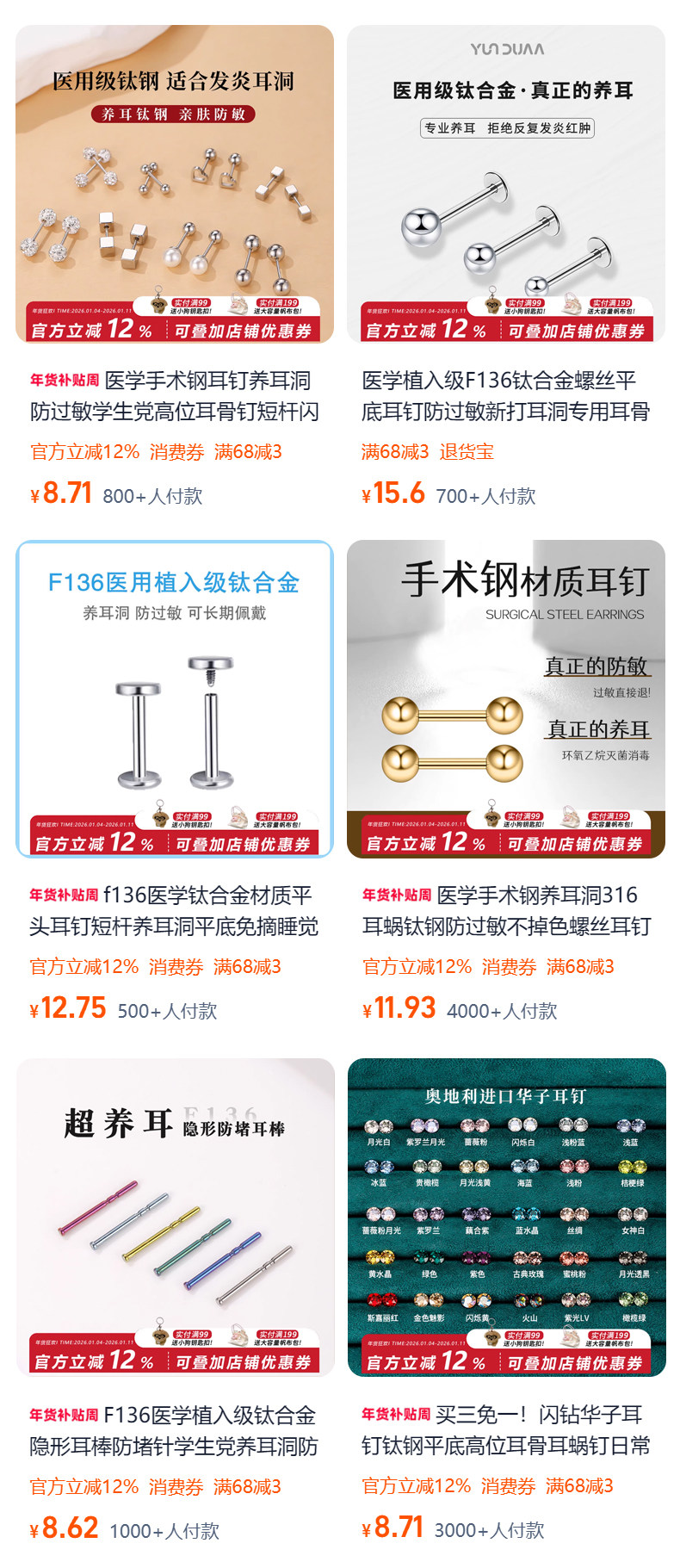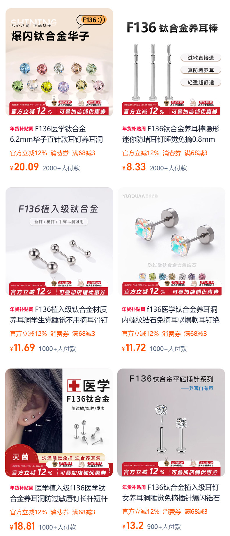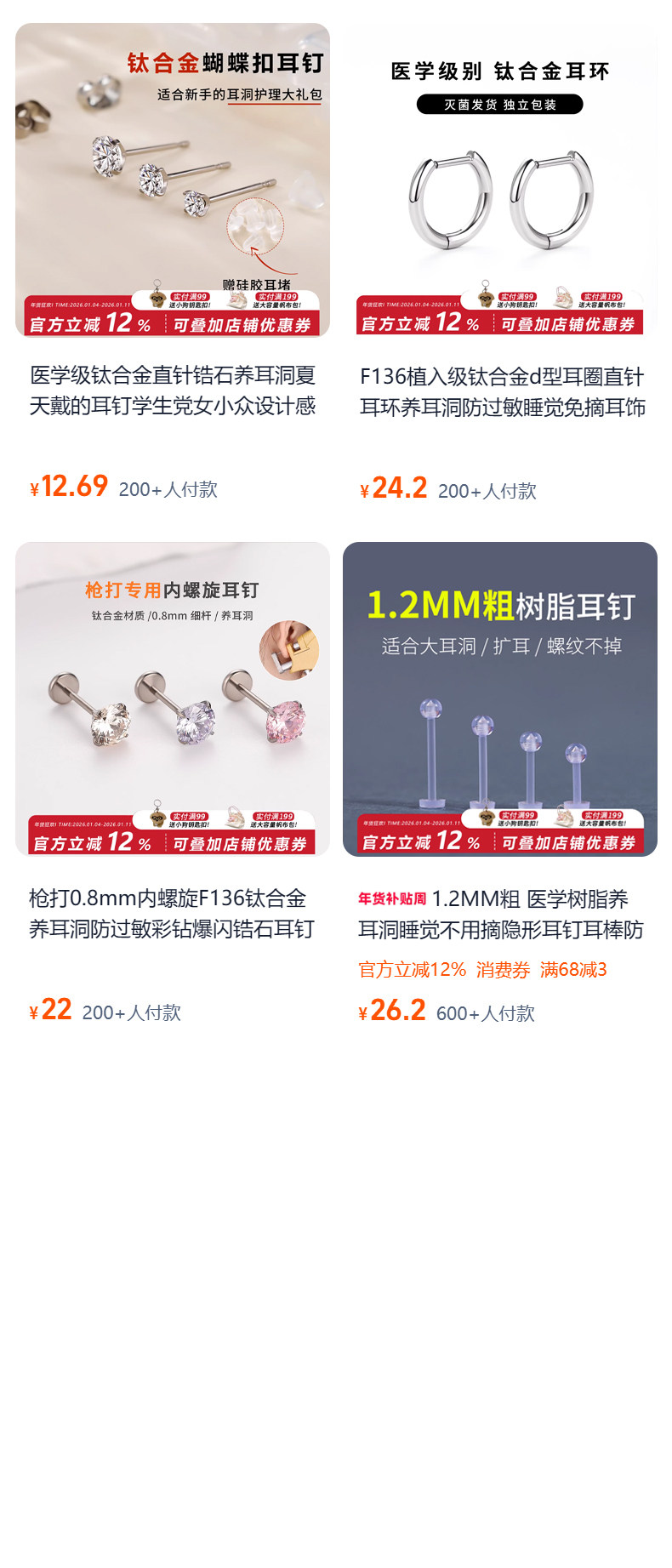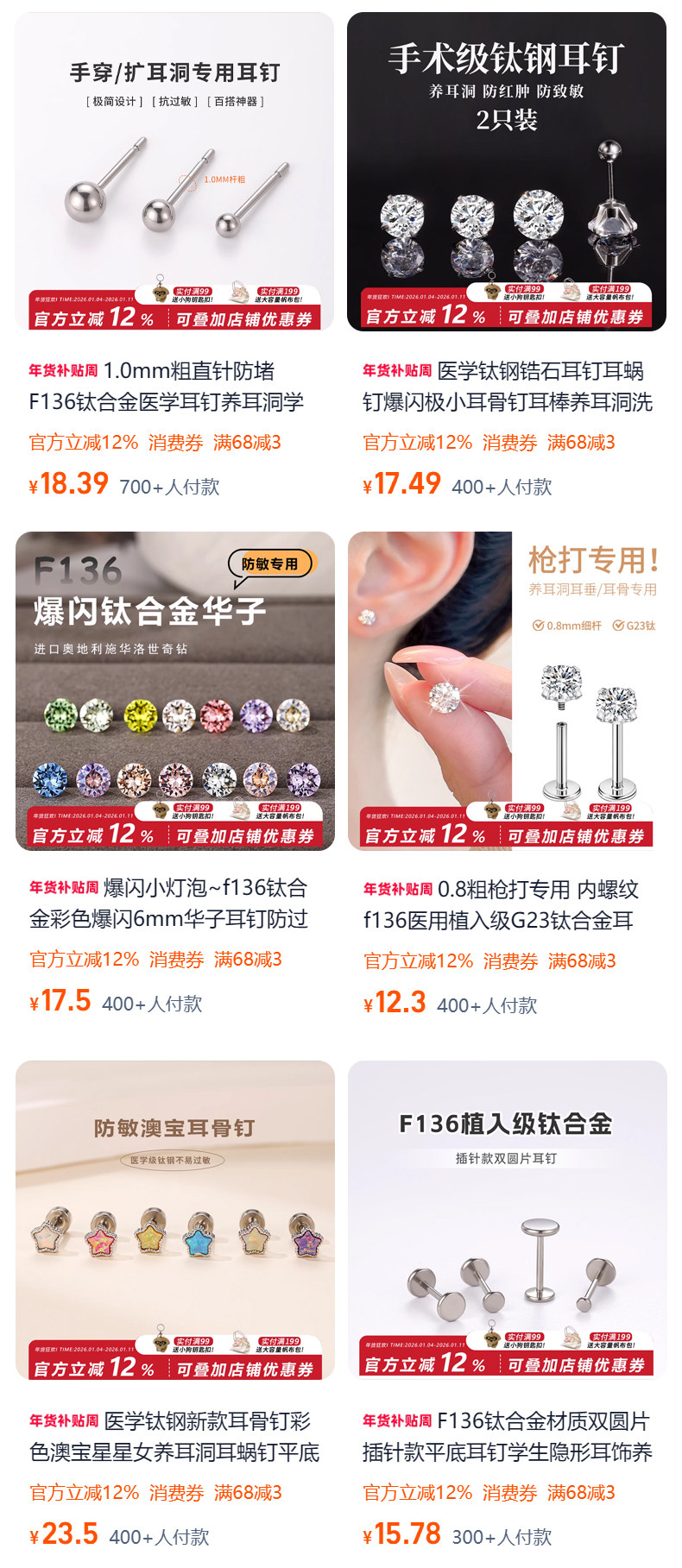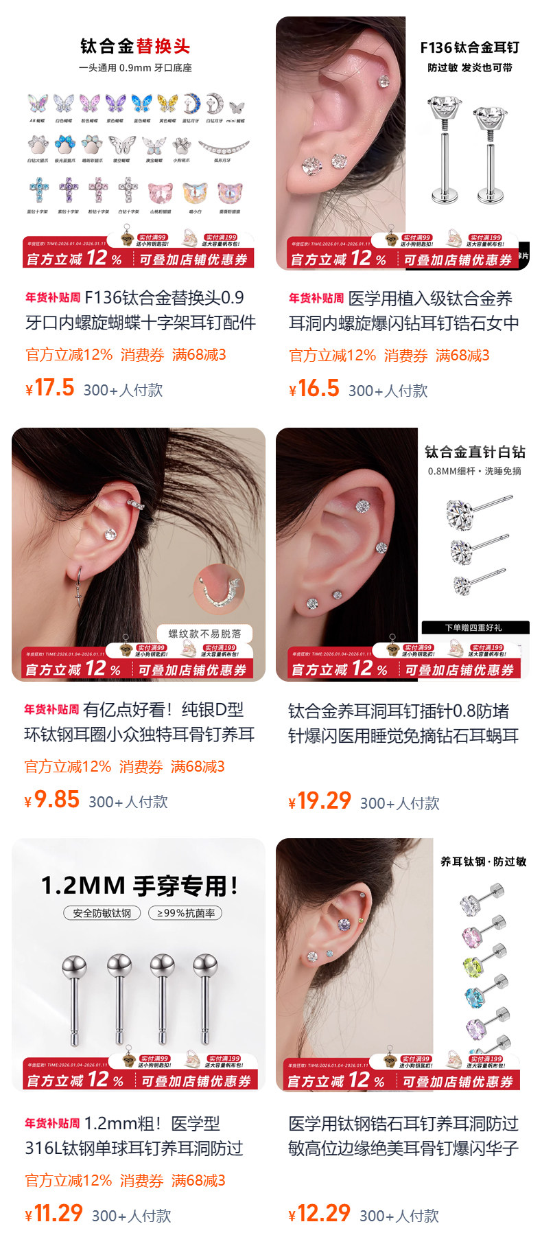 F136 Medical-Grade Titanium Alloy Ear Studs for Ear Piercing, Ear Bone Studs, Flat-Bottom Basic Model, Internal Spiral Cochlear, No Need to Remove for Sleeping