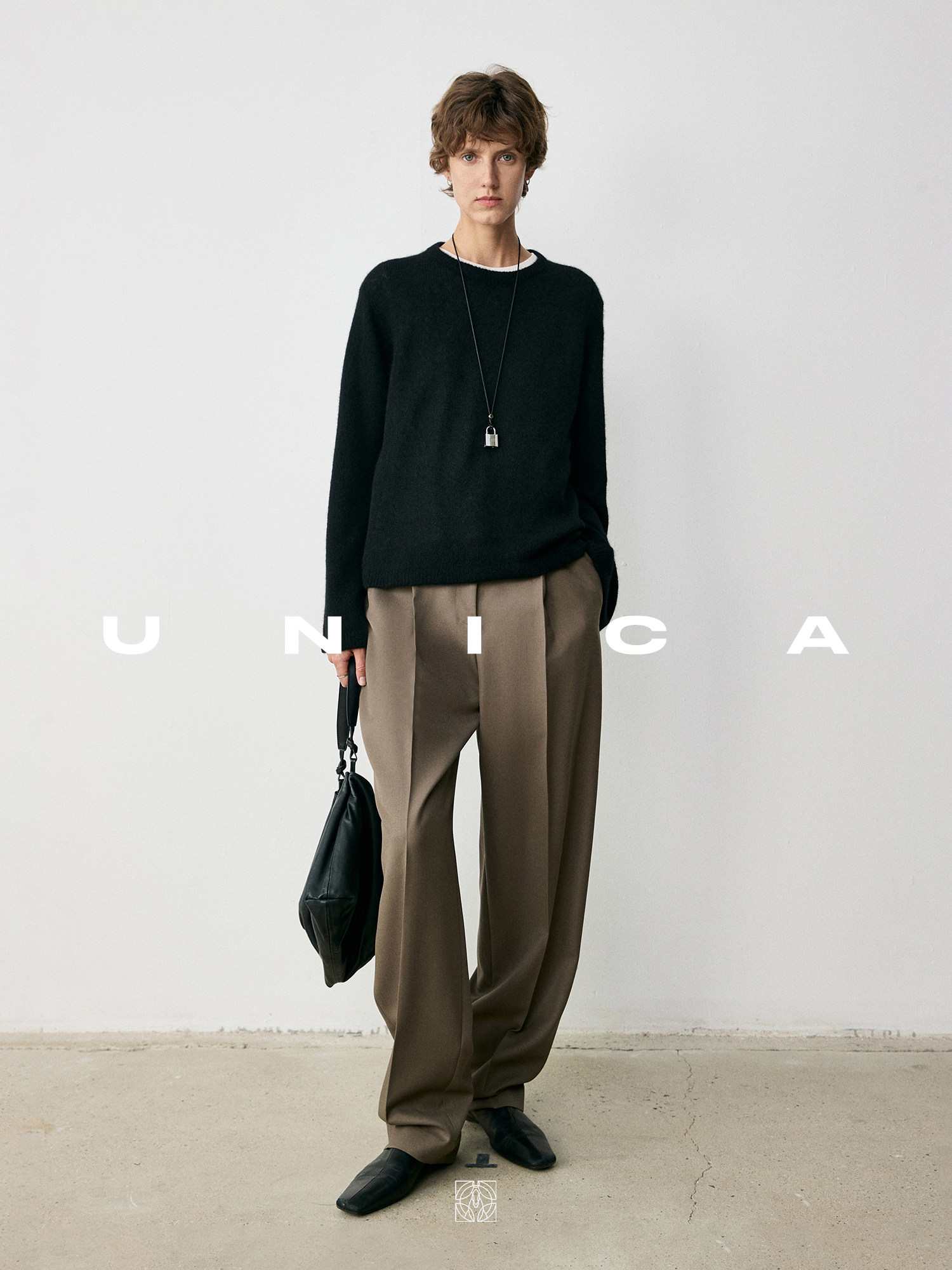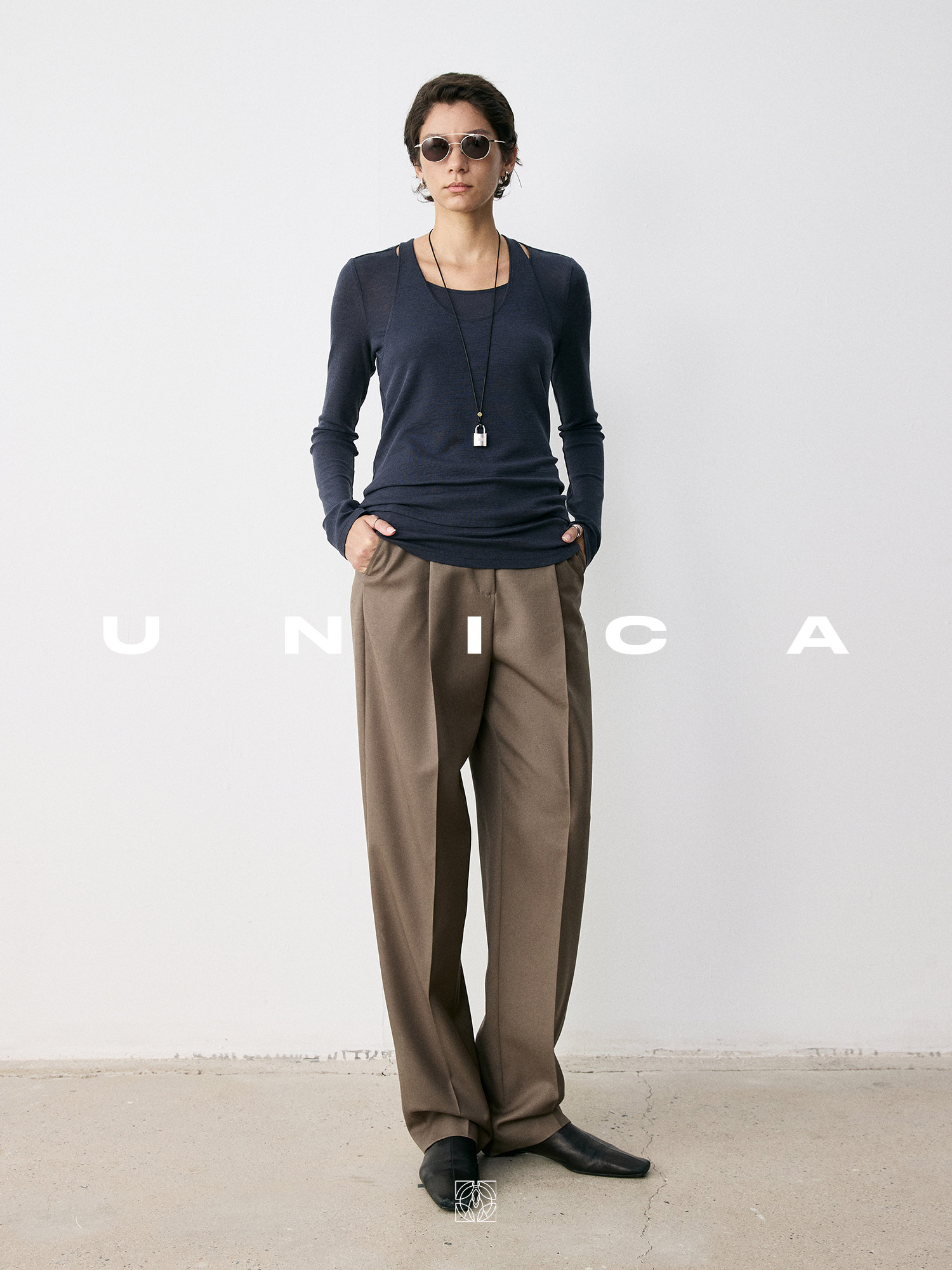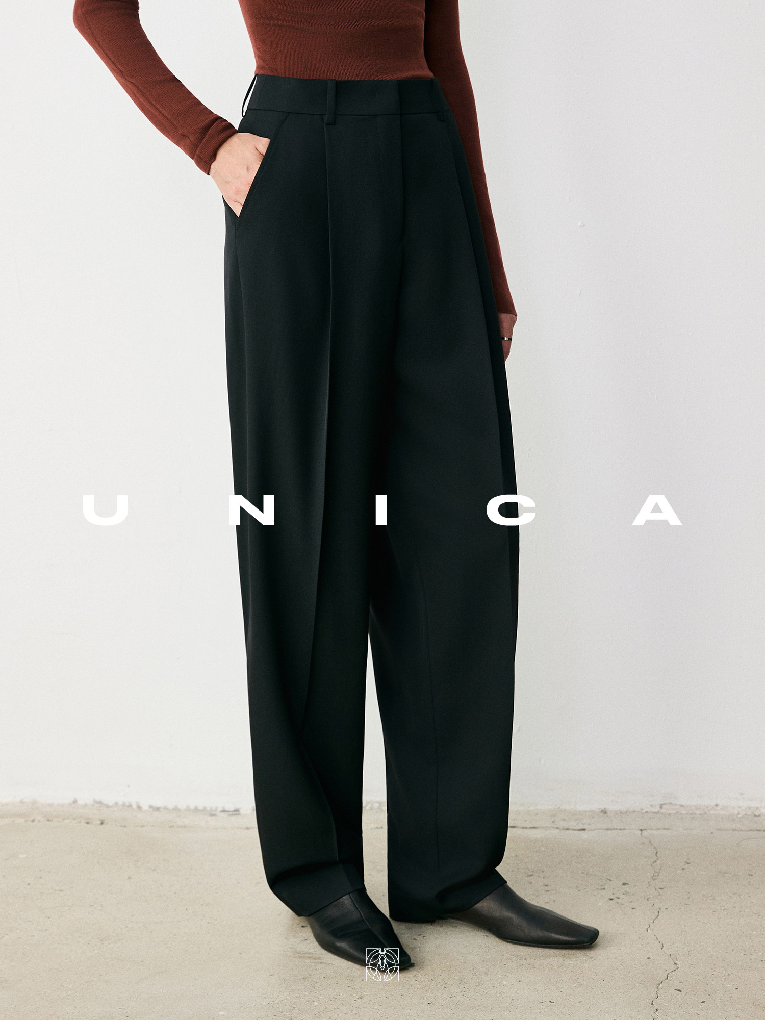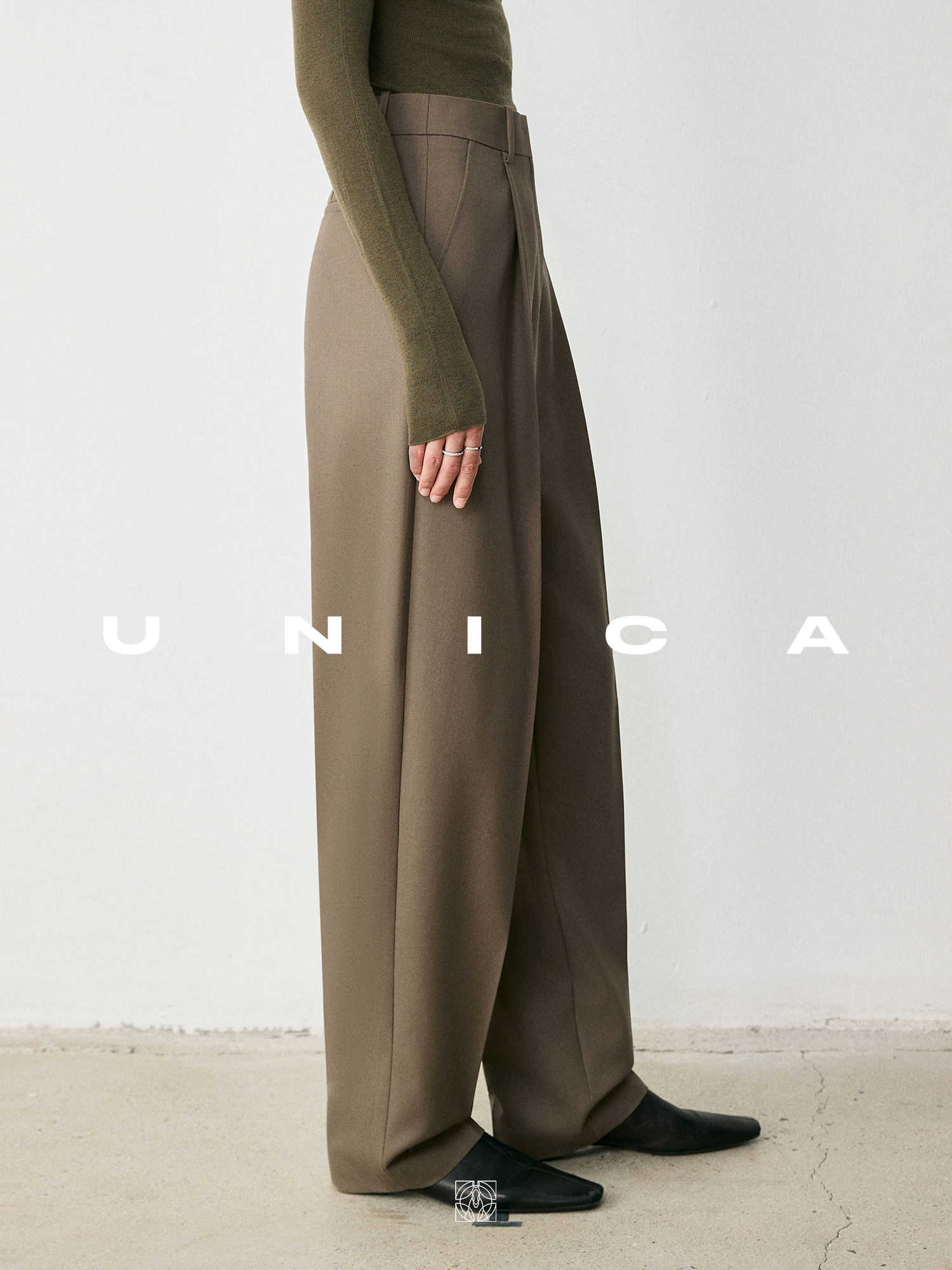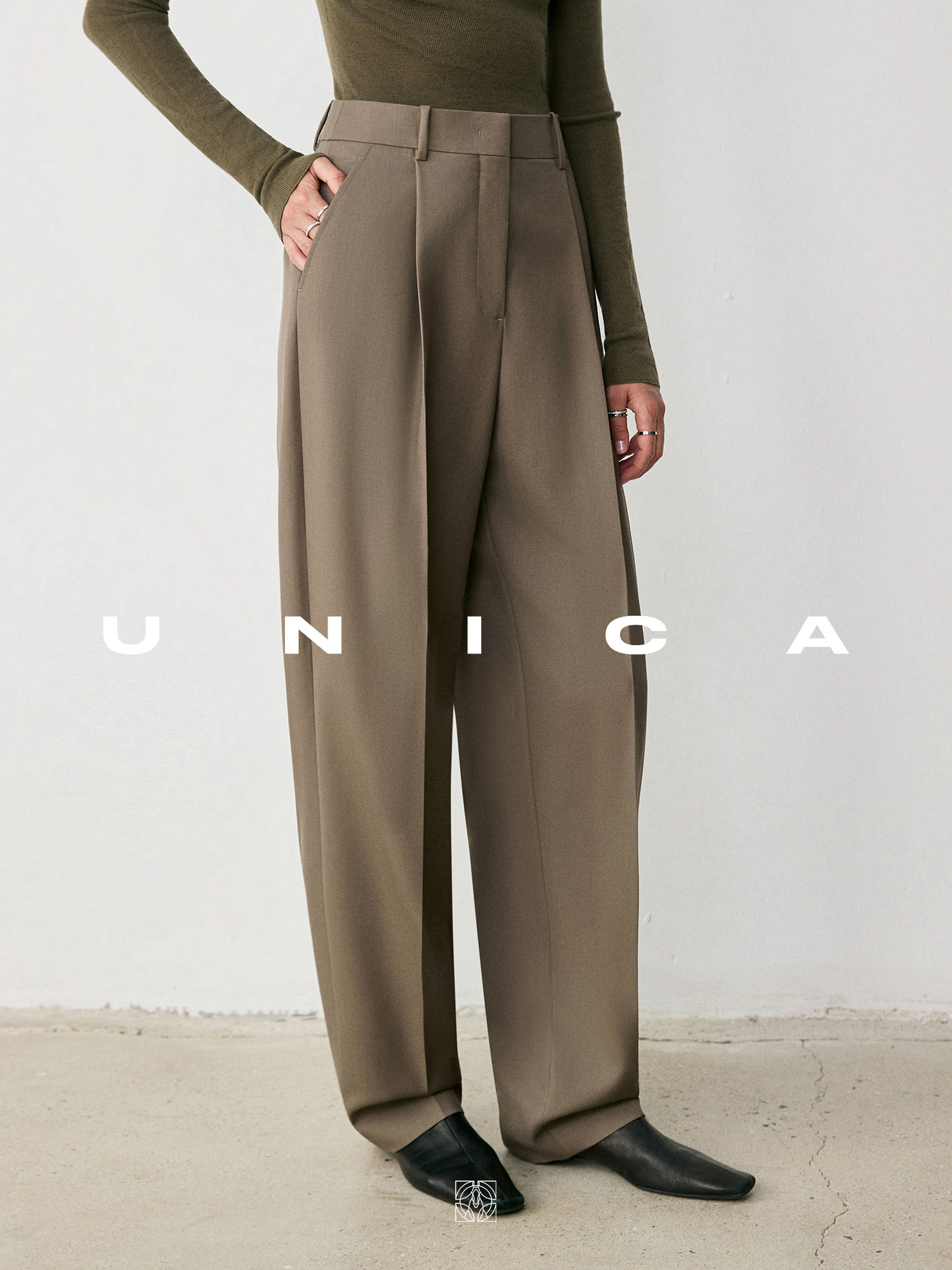 Unica/Micro-Tapered Slimming Versatile_Thickened Strong Twist Fine-Woven Wool Neat Leg-Shaping Dress Pants Casual Trousers