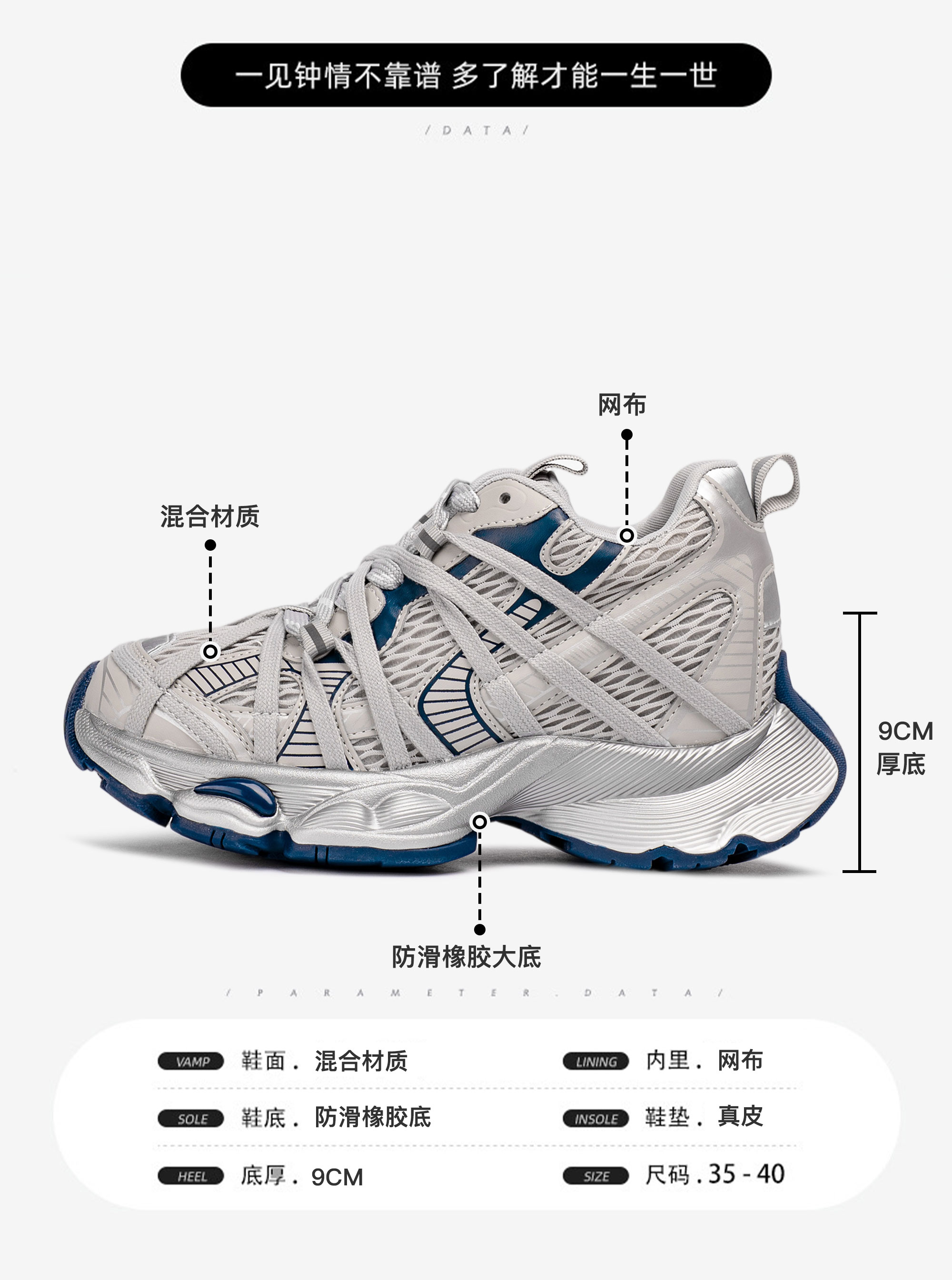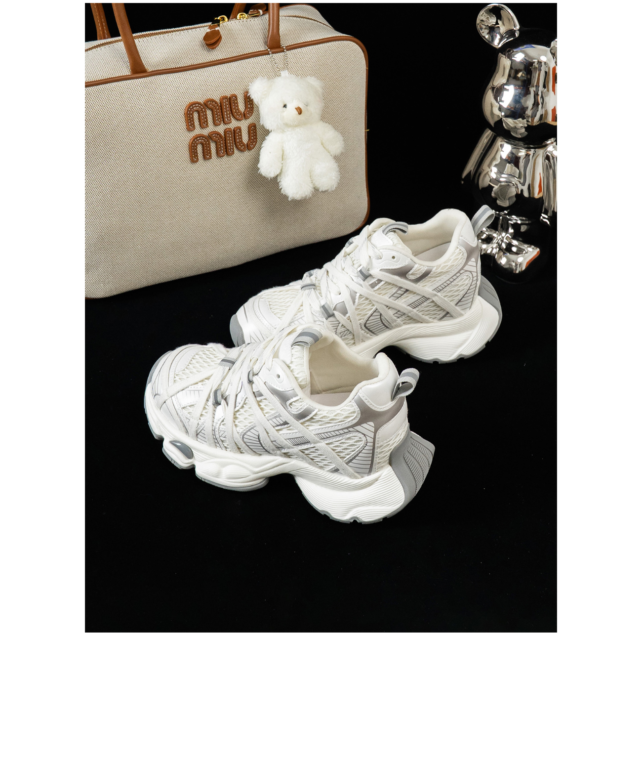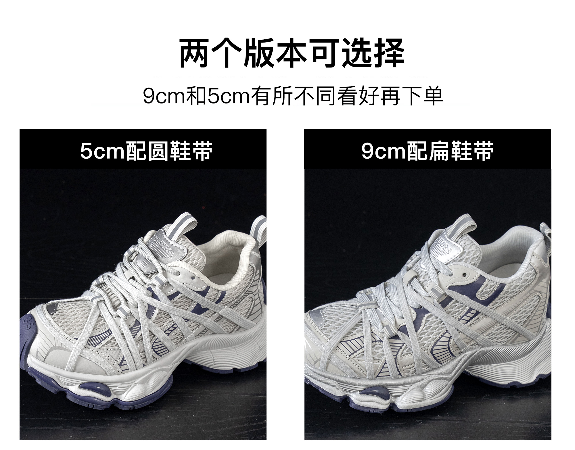 9cm Lace-Up Dad Sneakers for Women, Fleece-Lined, 2025 New Model, Thick-Soled, Height-Increasing, Mesh, Soft-Soled, Trendy Sneakers