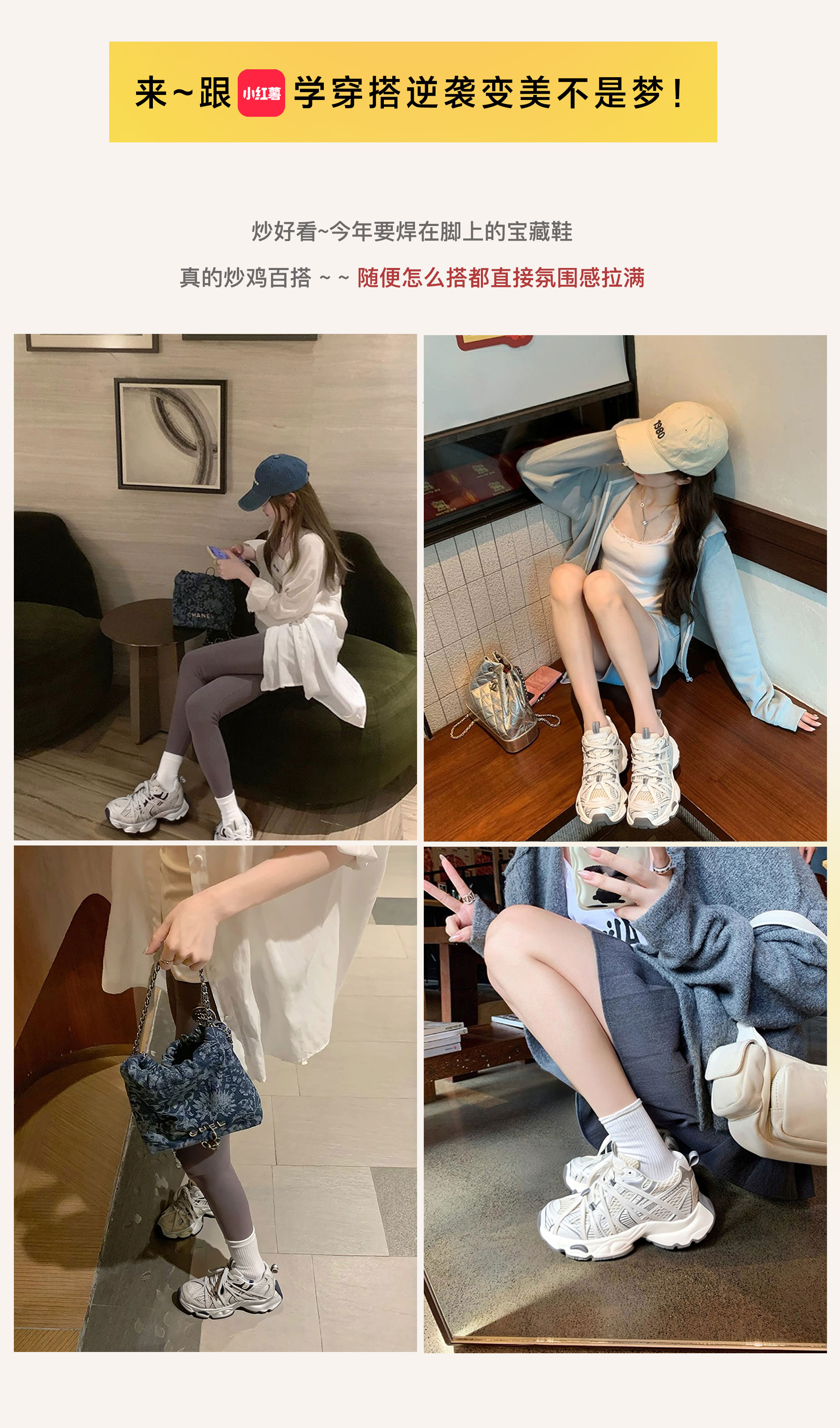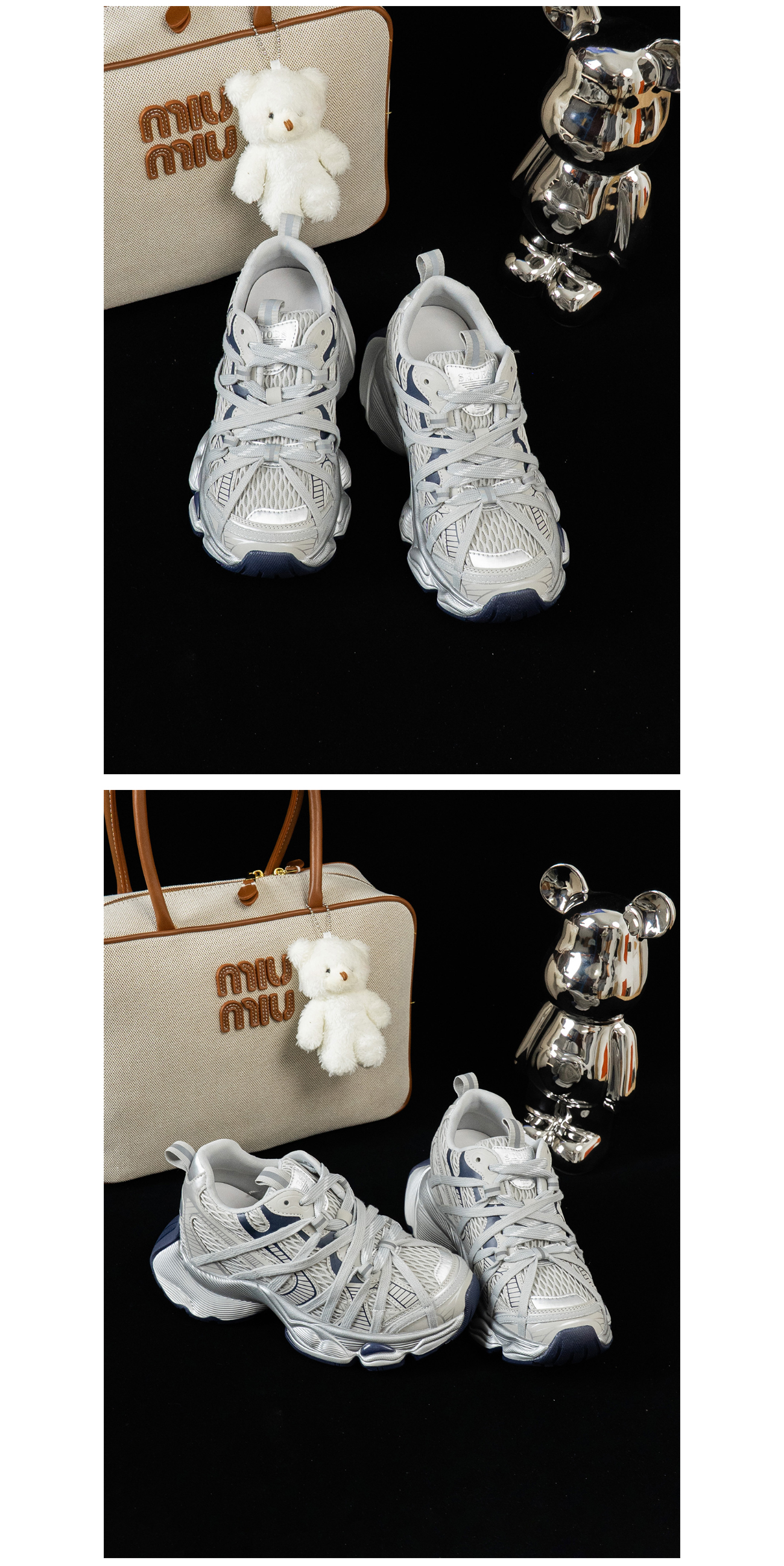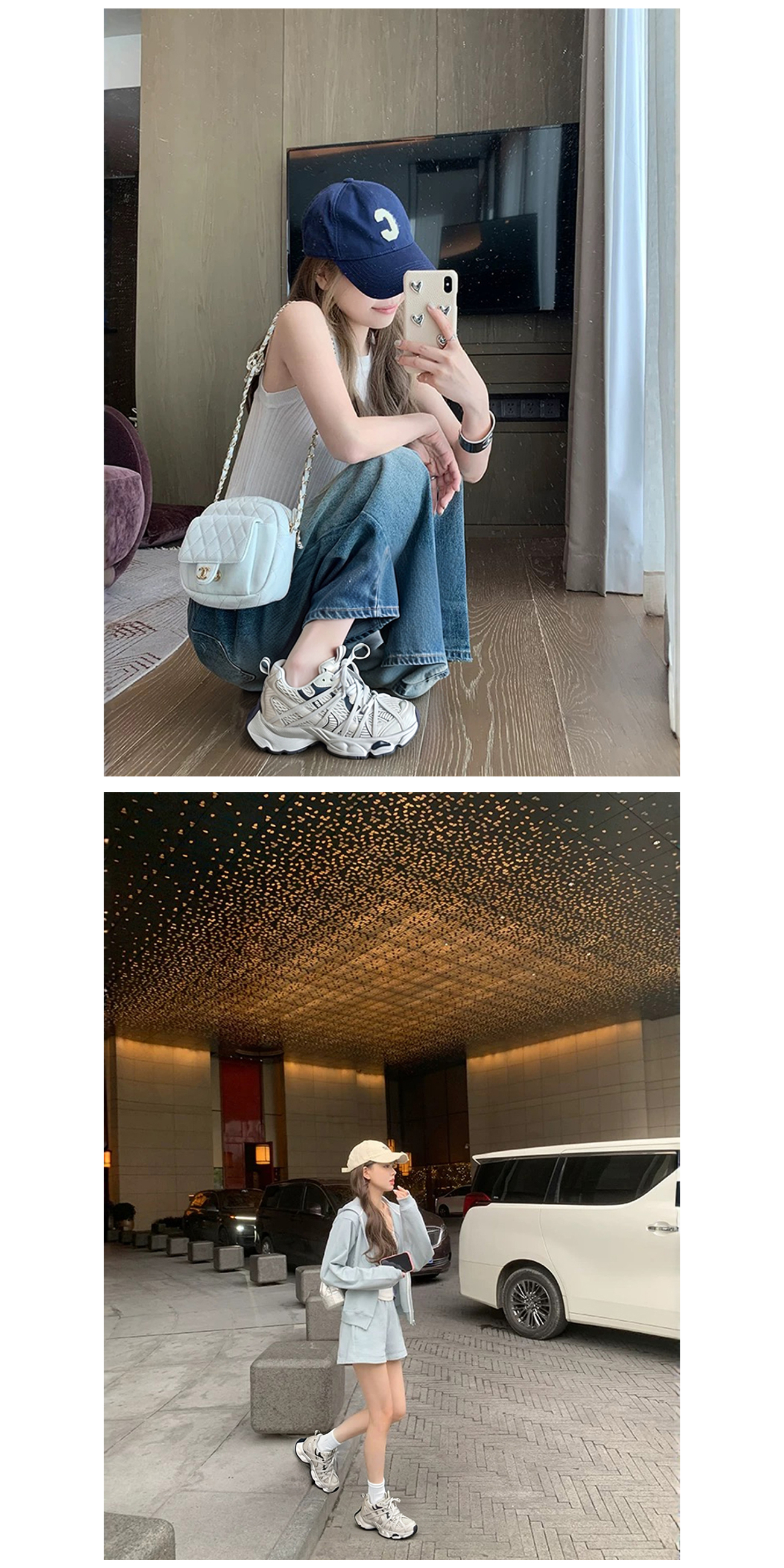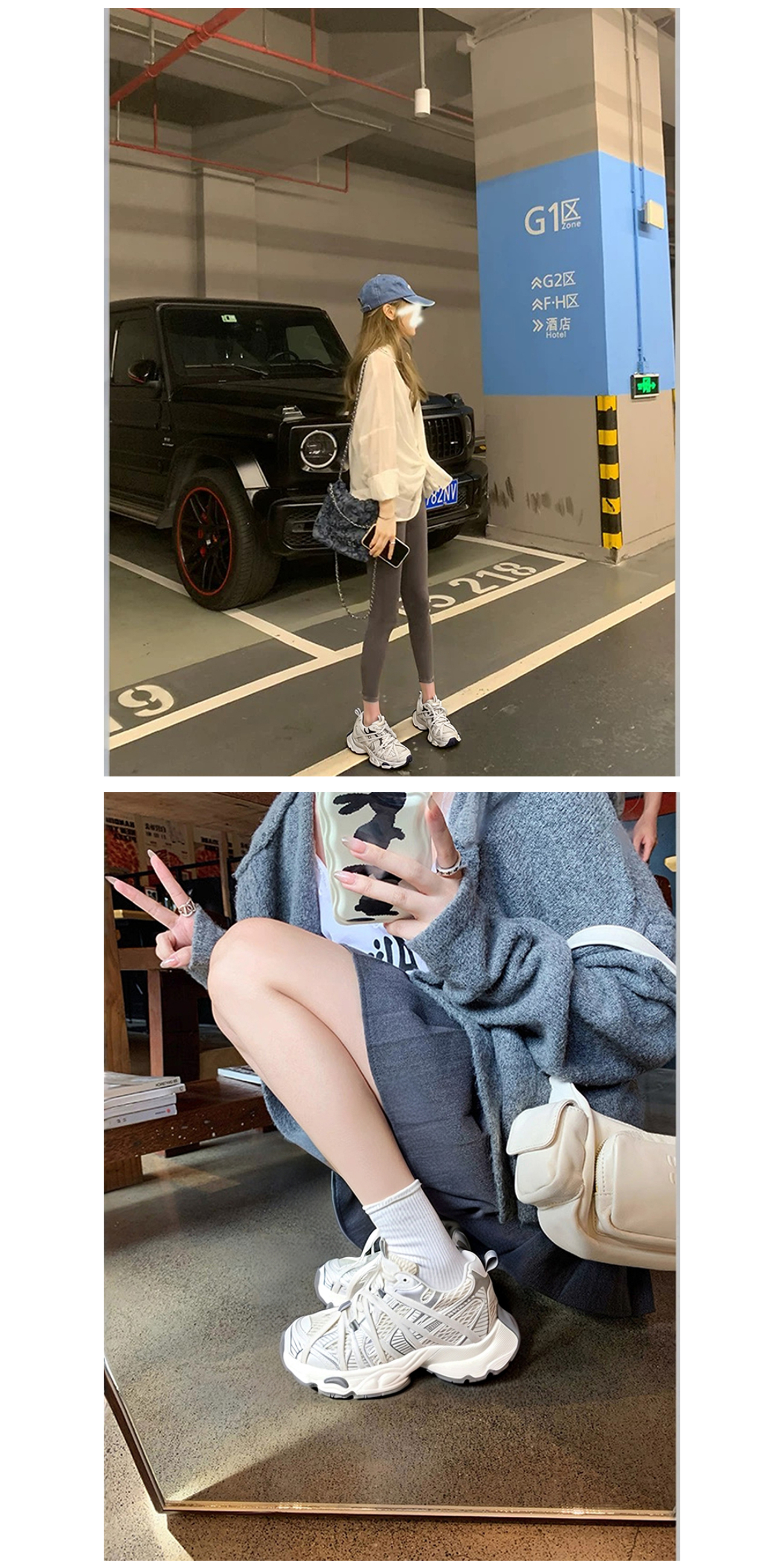 9cm Lace-Up Dad Sneakers for Women, Fleece-Lined, 2025 New Model, Thick-Soled, Height-Increasing, Mesh, Soft-Soled, Trendy Sneakers