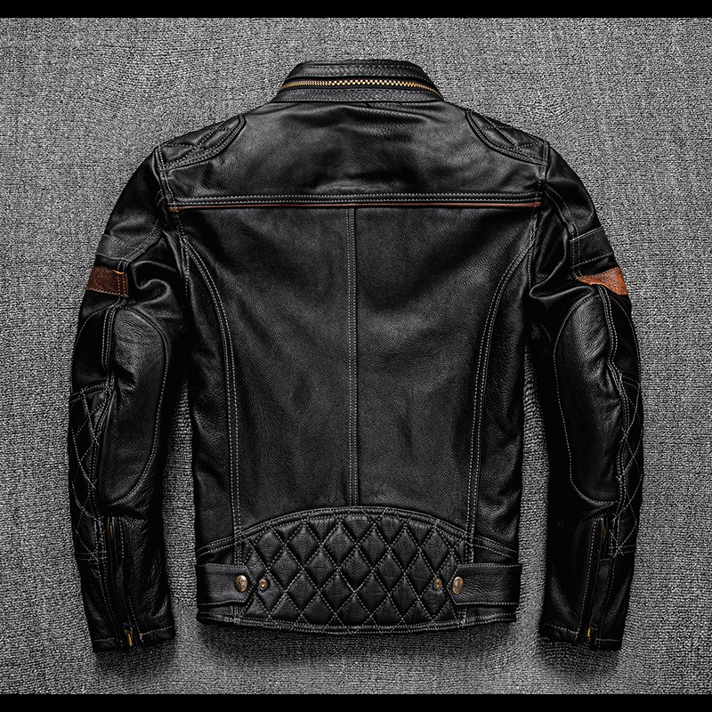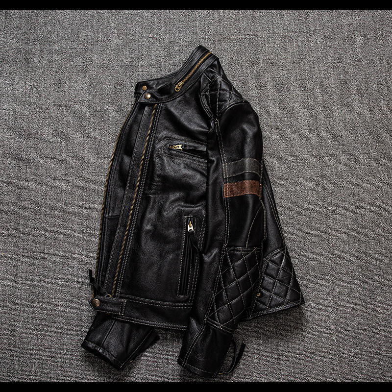 Mk Genuine First-Layer Cowhide Men's Leather Jacket Spring and Autumn New High-End Cycling Stand-Up Collar Leather Jacket for Men