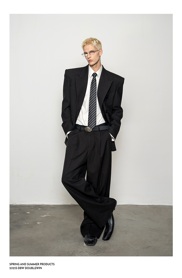 Dbw Doublewin Retro High-End Tie for Men, High-End Business Formal Wear, Black Striped Shirt and Suit Matching