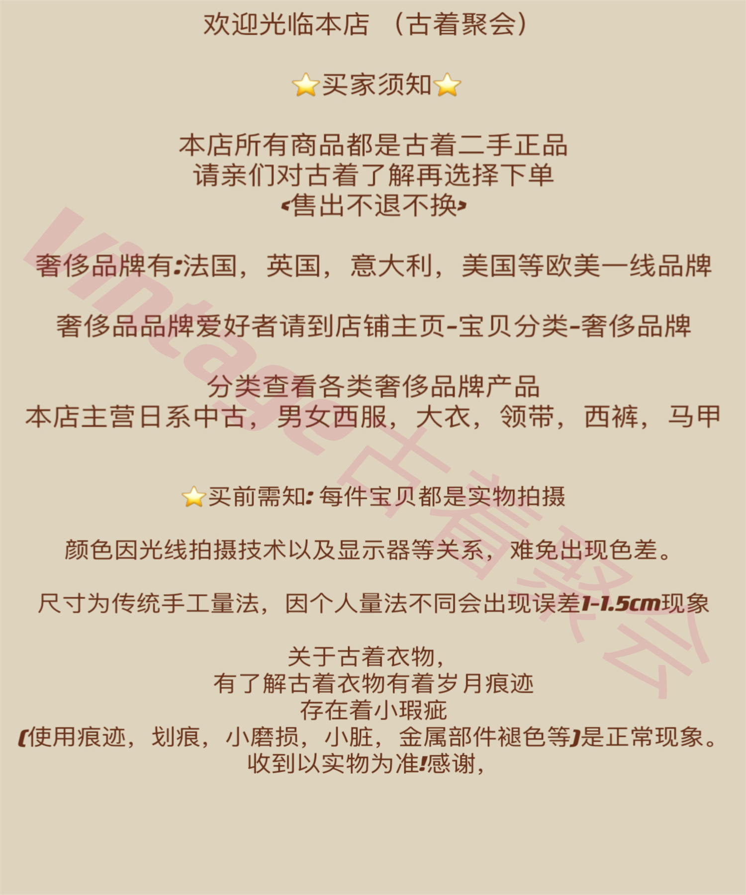 发货前会检查,有发现瑕疵会提前告知古着菲全新,