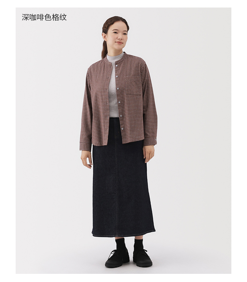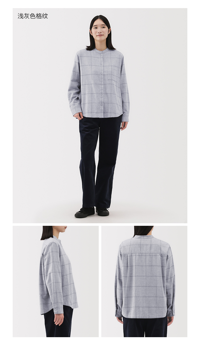 Muji Women's Flannel Stand-Up Collar Long-Sleeved Shirt Women's Shirt Jacket Autum Women's Clothing