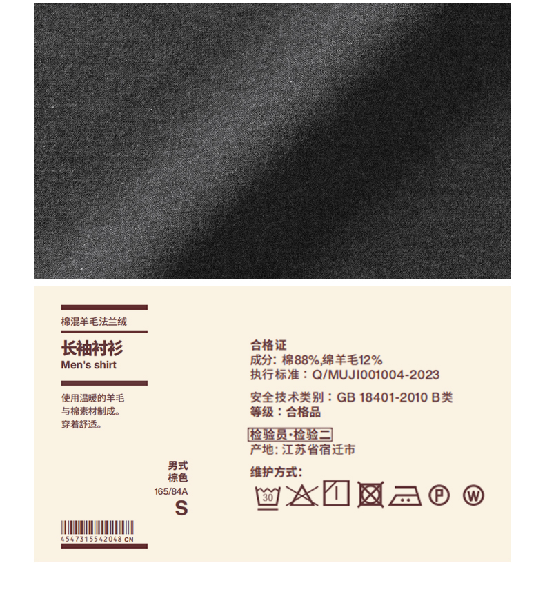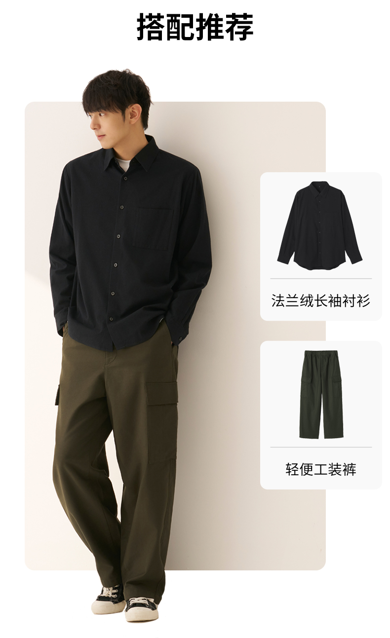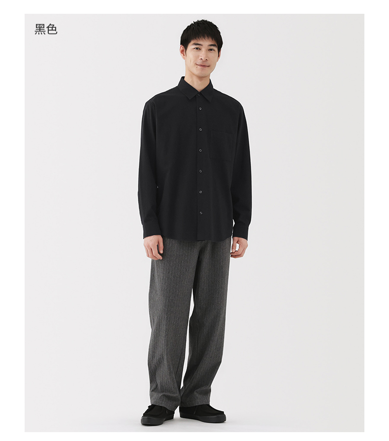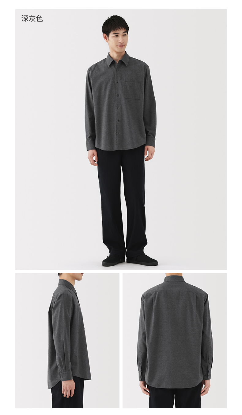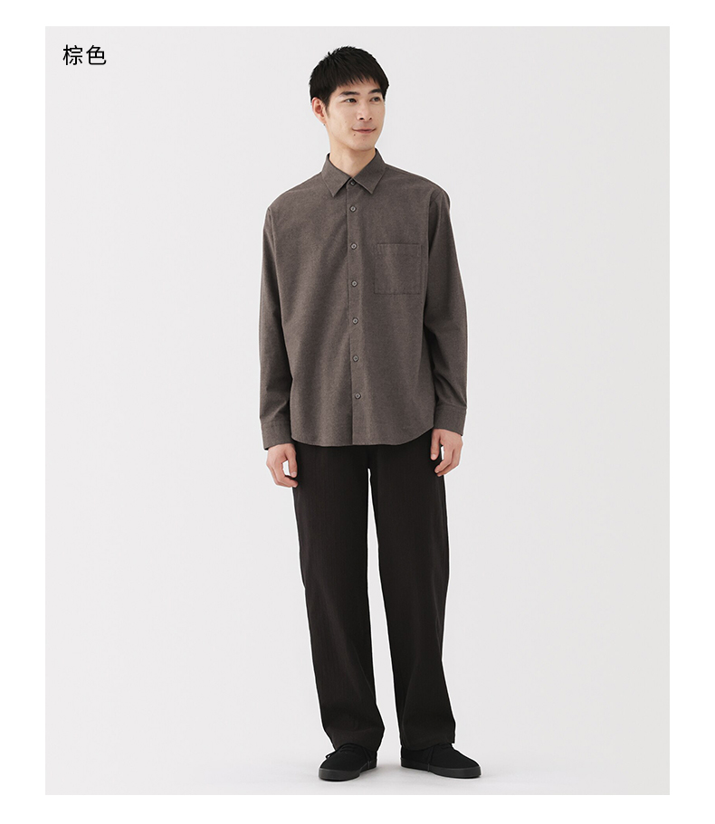Muji Men's Cotton-Blend Wool Flannel Long-Sleeve Shirt Men's Shirt Men's Clothing Autumn