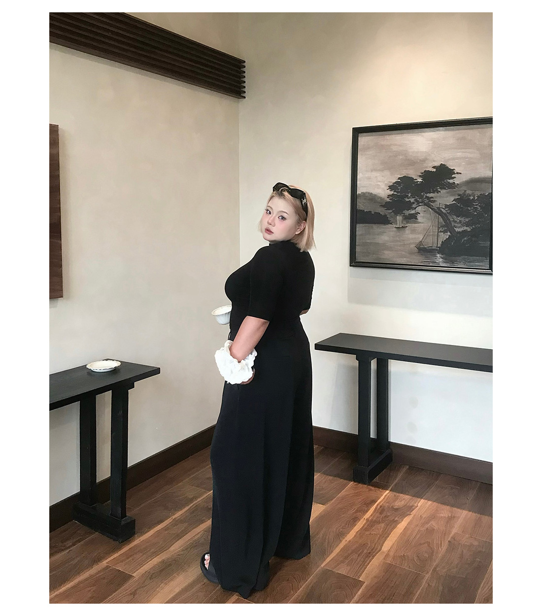 Global Flower [Berlin Black] Large Size Black High-End Draped Suit Pants Versatile High-Waisted Loose Straight-Leg Trousers
