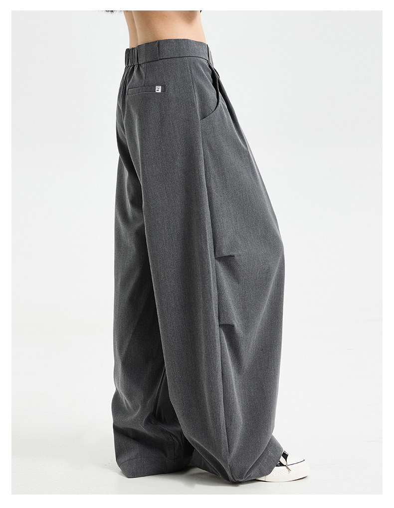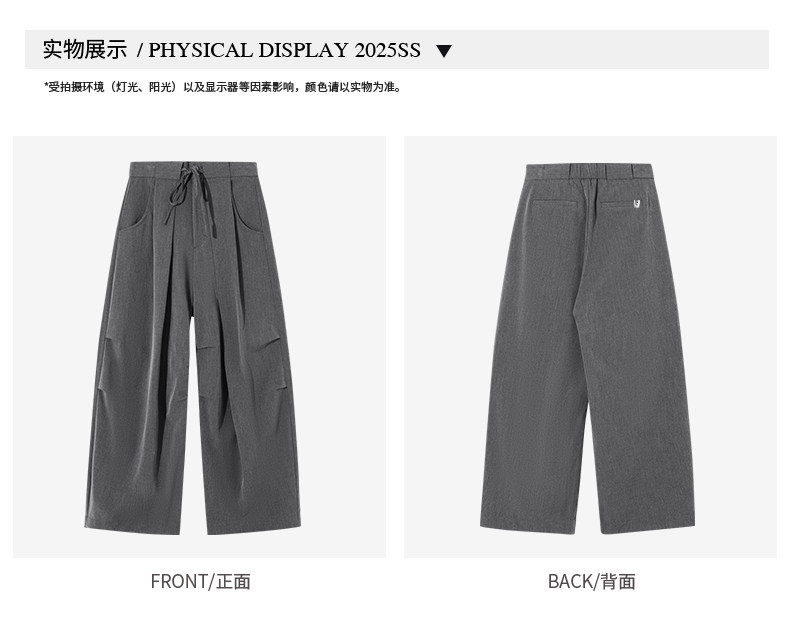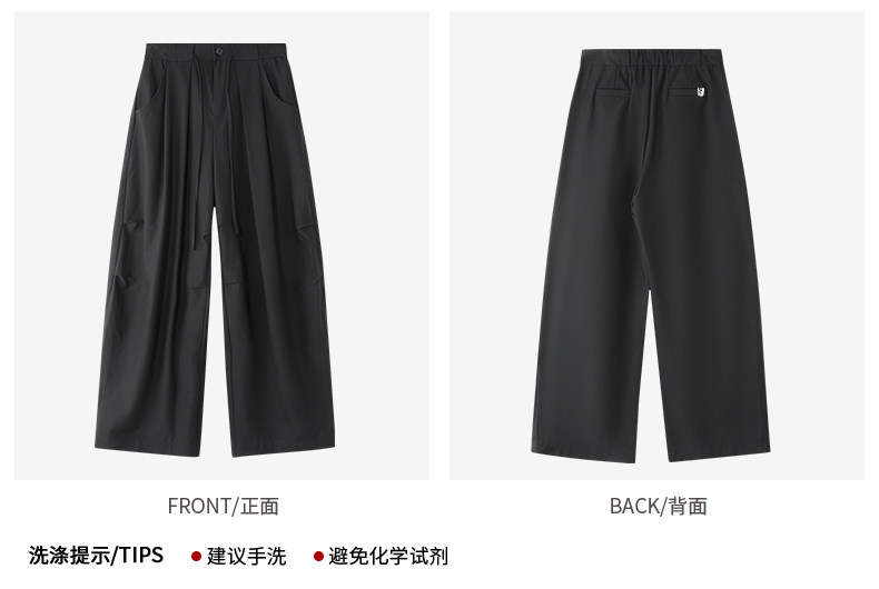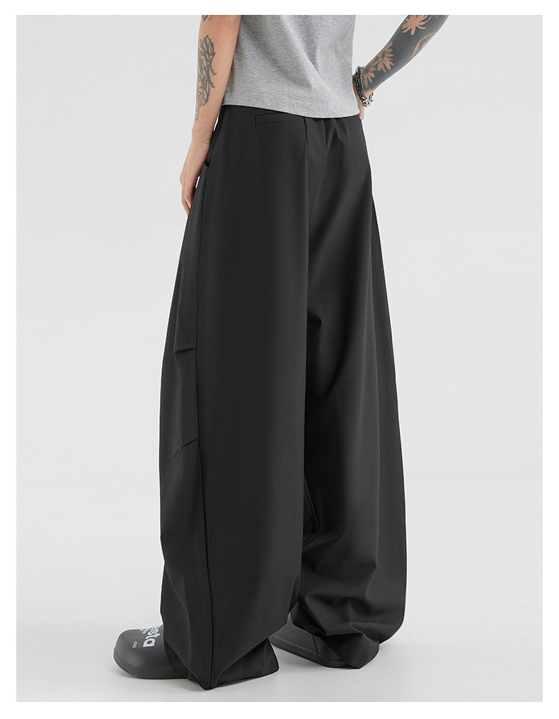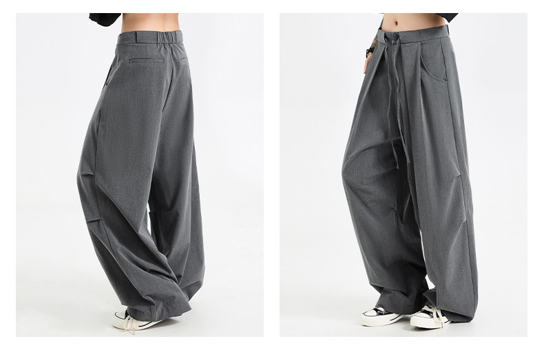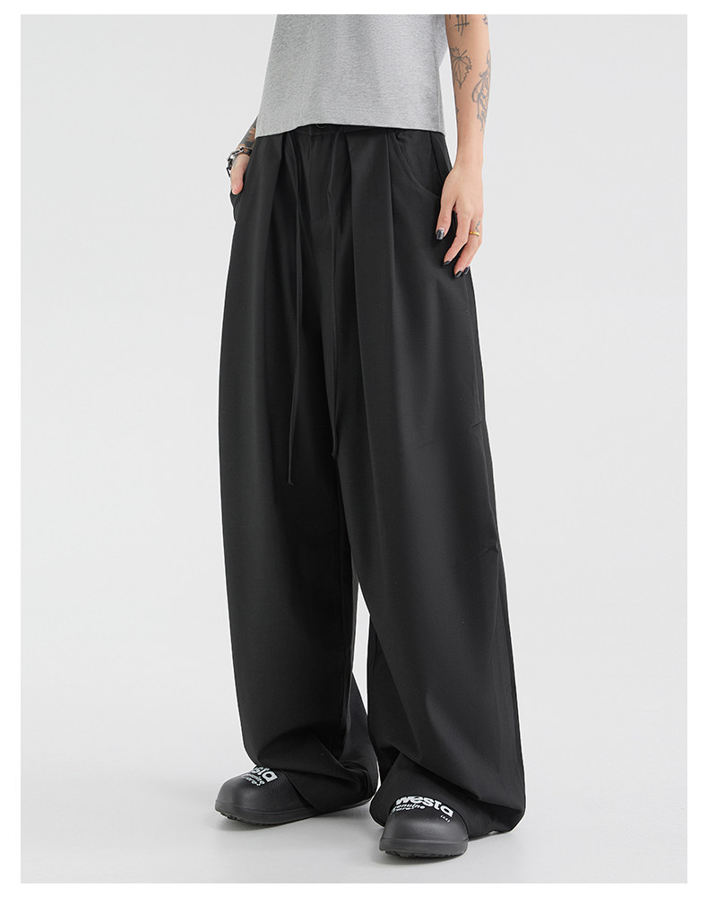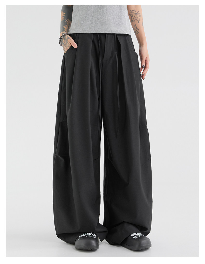 Korean-Style Lace-Up Pleated Layered Silhouette Trousers for Men and Women, Spring and Autumn Loose Drape Floor-Length Wide-Leg Casual Parachute Pants