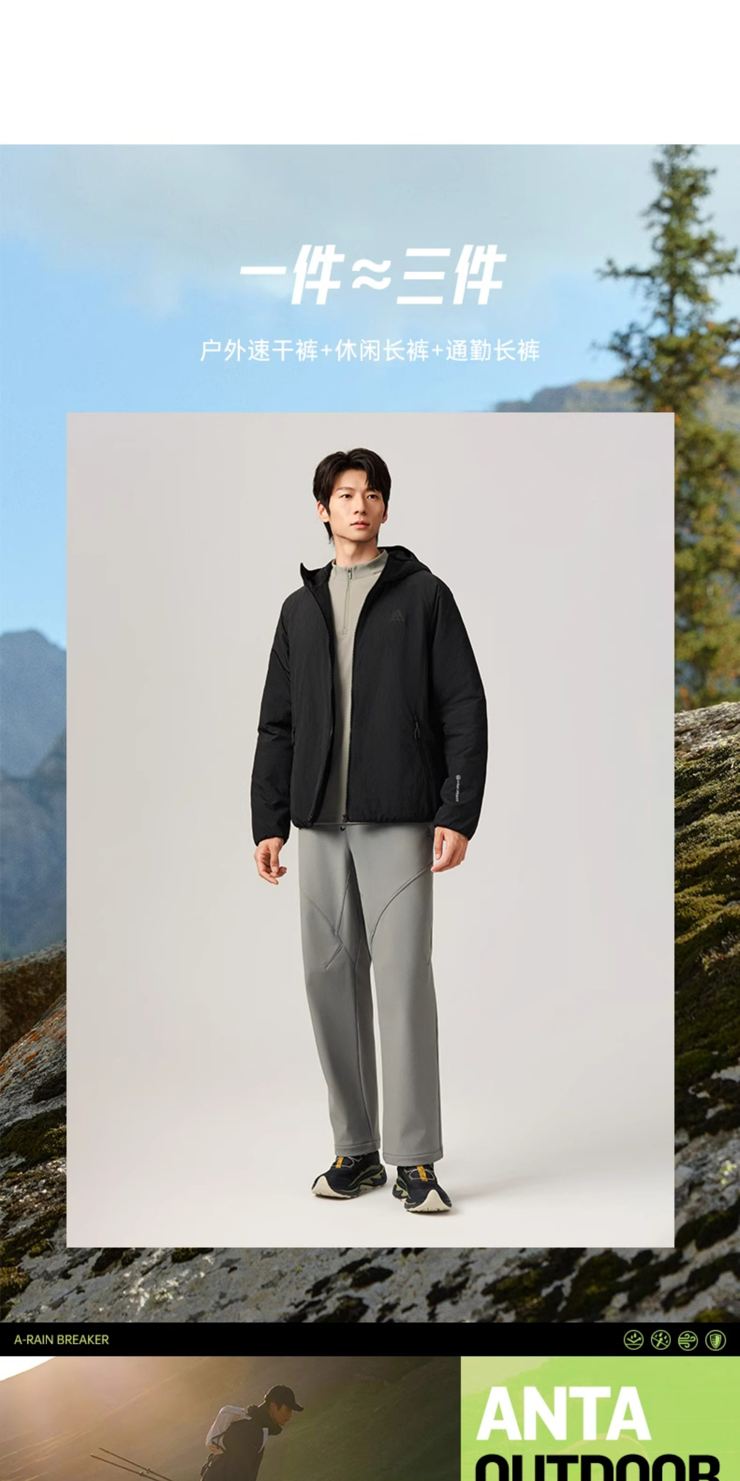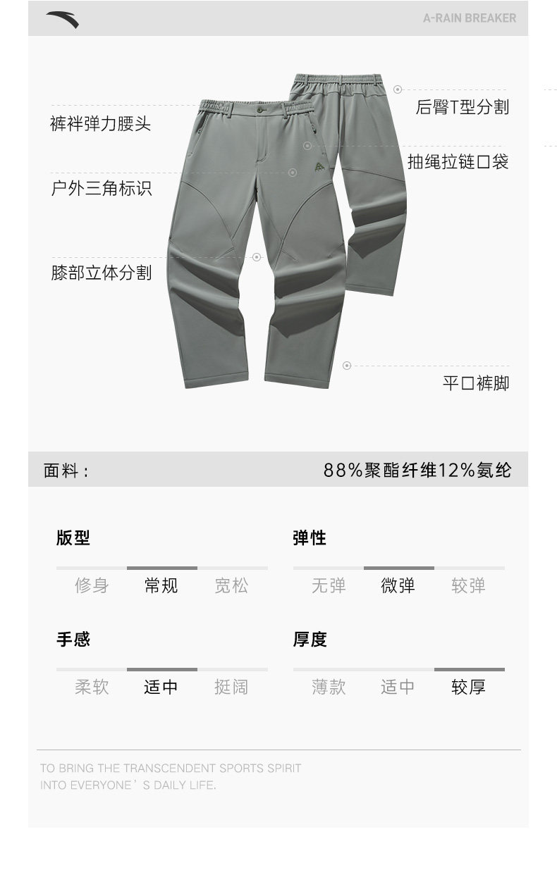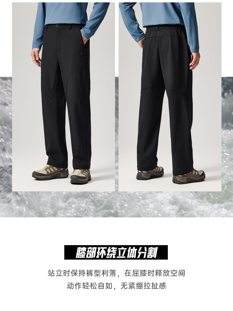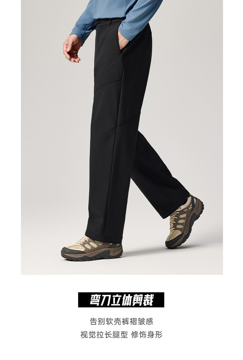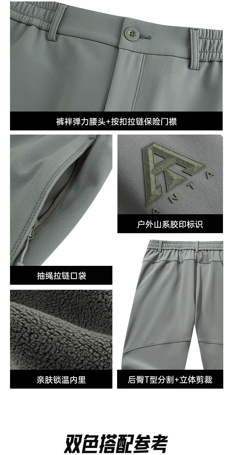 Anta Earth Shell Softshell Scimitar Pants Fleece-Lined Long Pants Men's Winter Straight Casual Pants Outdoor Hiking Pants