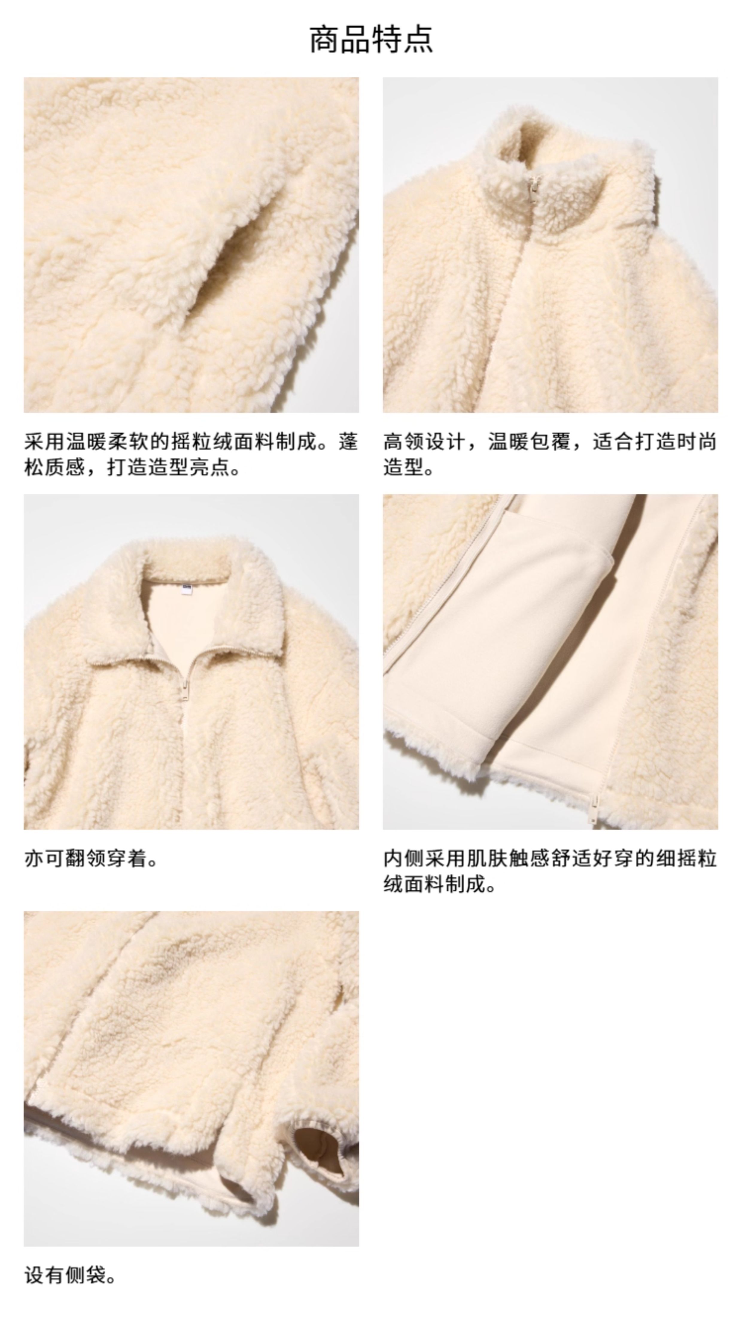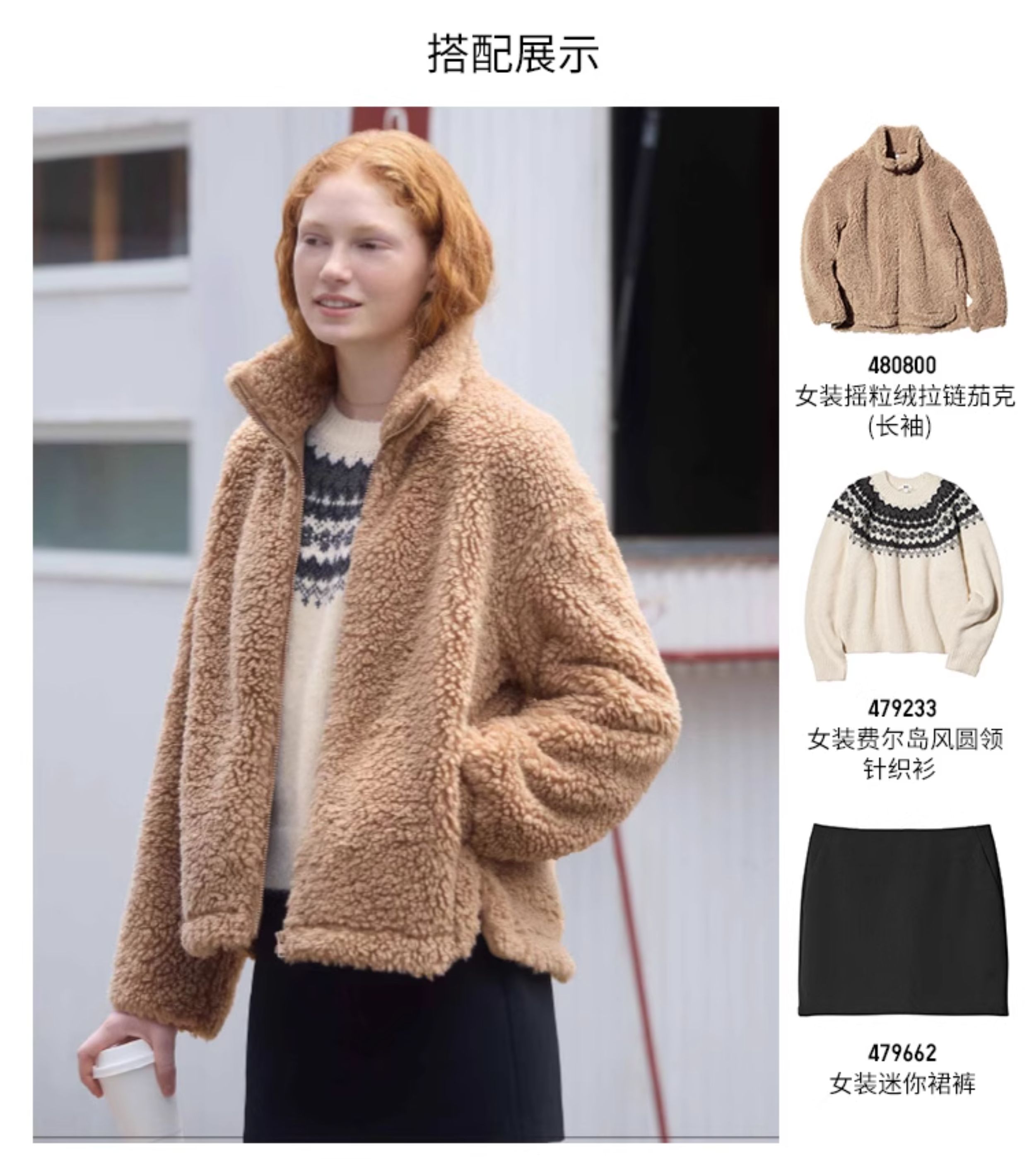 Uniqlo Women's Fleece Zipper Jacket/Long-Sleeve Coat Jacket 25 Autumn and Winter New Style 480800