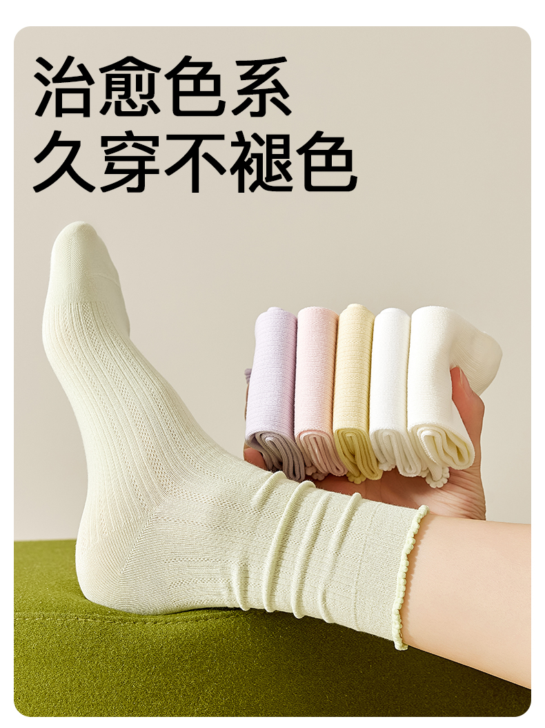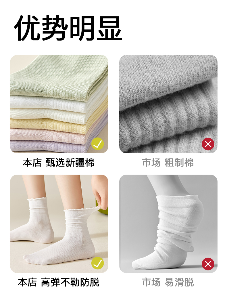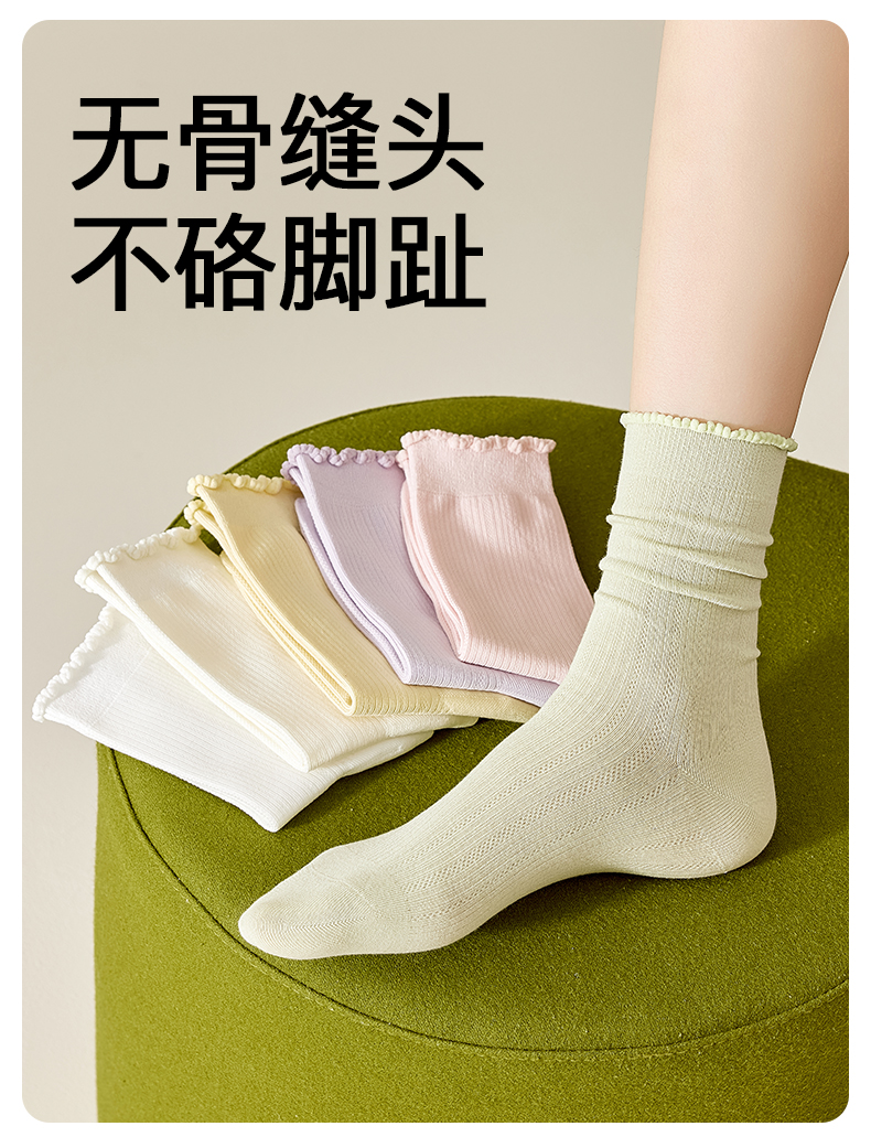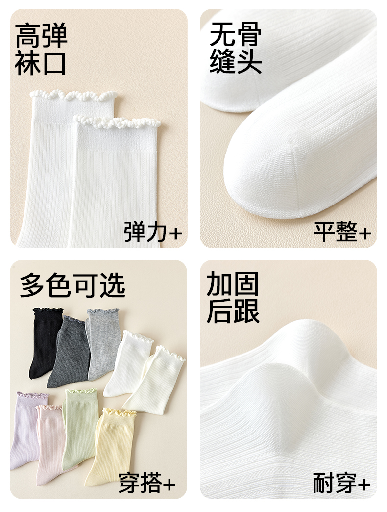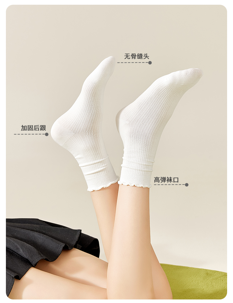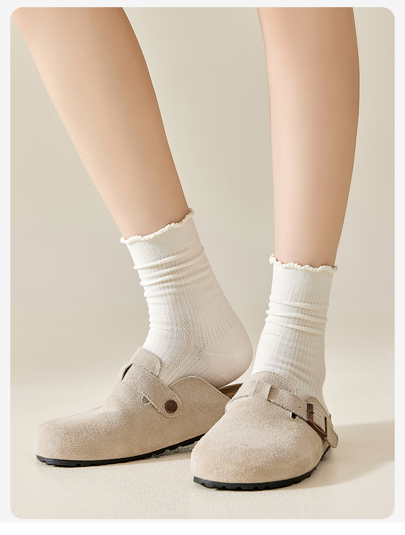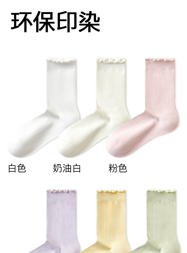 White Socks for Women, Pure Cotton Mid-Calf Socks, Seamless Slouch Socks, Antibacterial, Spring and Autumn, Lace Trim, Odor-Resistant, Sweat-Absorbent, Maternity Long Socks