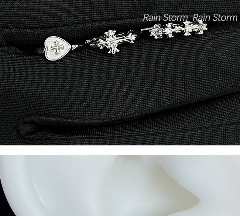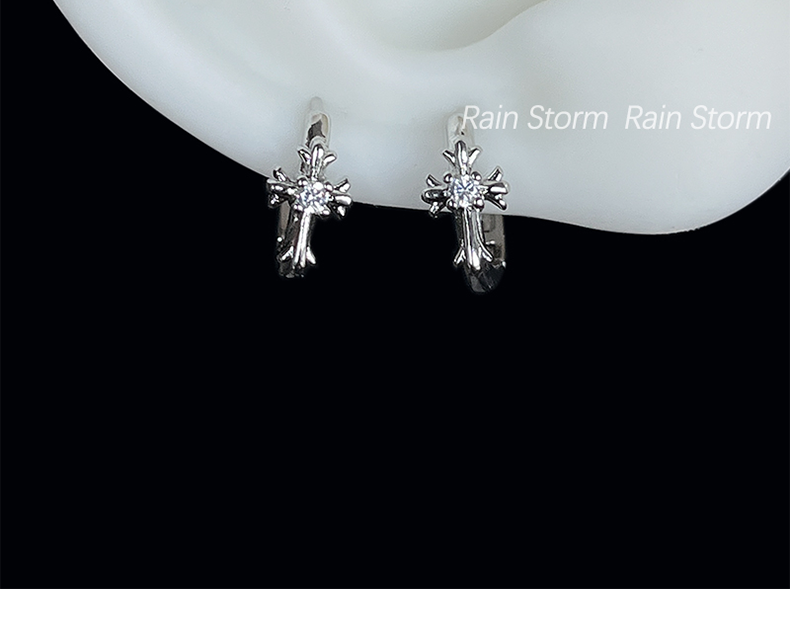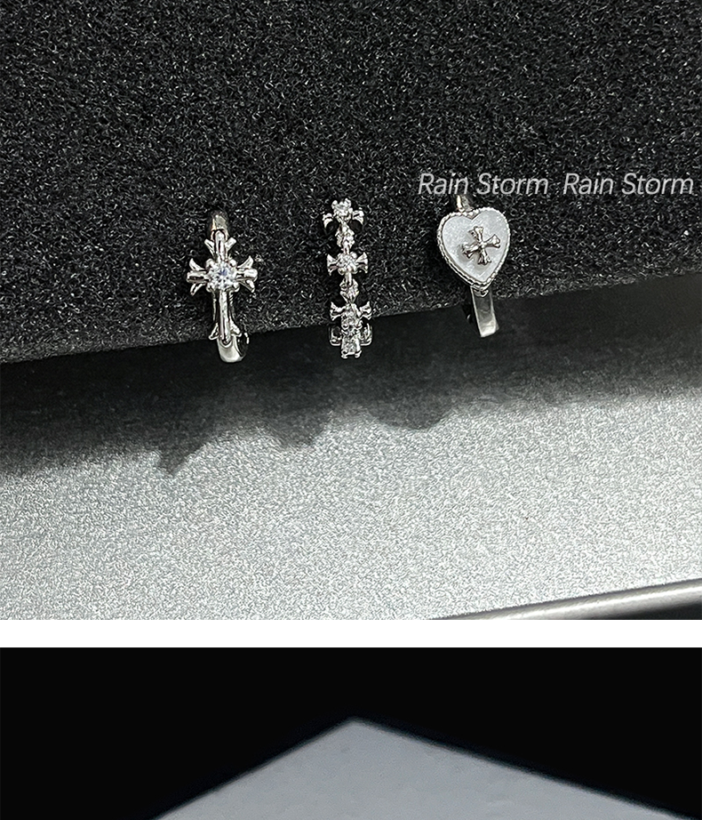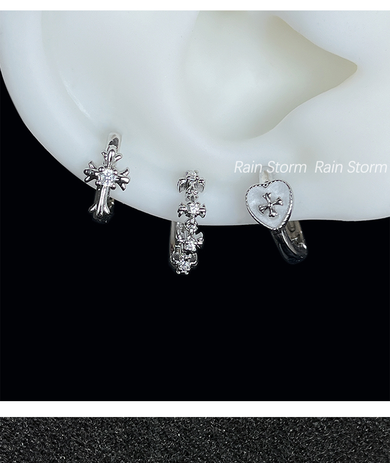 Rain Storm Sparkling Diamond Cross Heart Hoop Earrings Niche Minimalist Style Stackable Ear Cuffs Versatile Exquisite Earrings