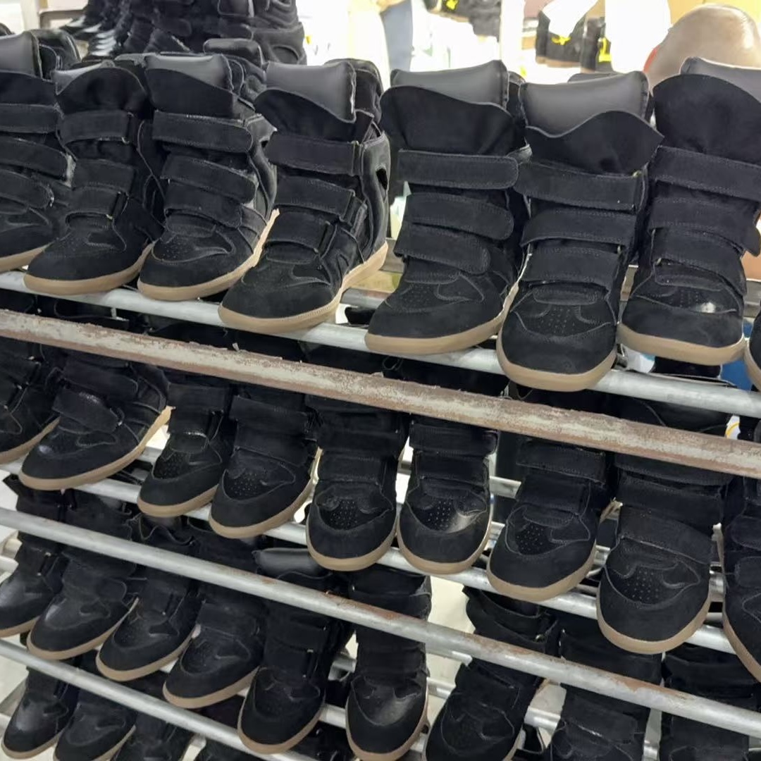 European and American Style Velcro Invisible Height-Increasing Women's Shoes 6cm Wedge Heel Color-Blocked Sports Casual Shoes Genuine Leather High-Top Shoes