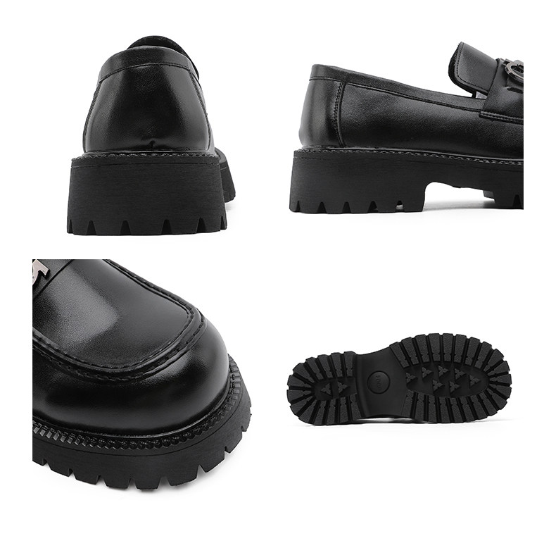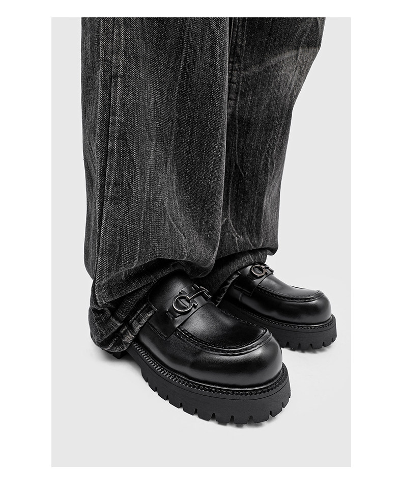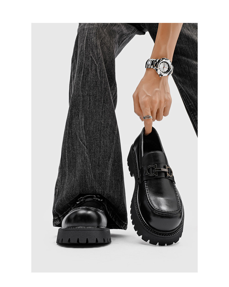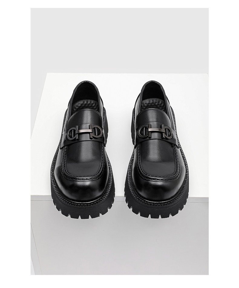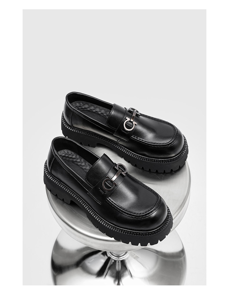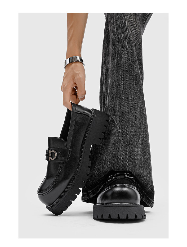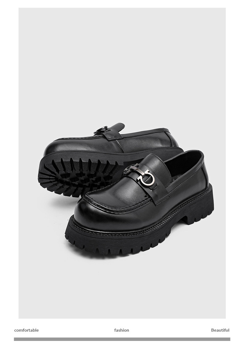 2025 New Round-Toe Casual Loafers with 5cm Thick Soles, Height-Increasing Leather Shoes for Men, Dark Metal Slip-On Derby Shoes