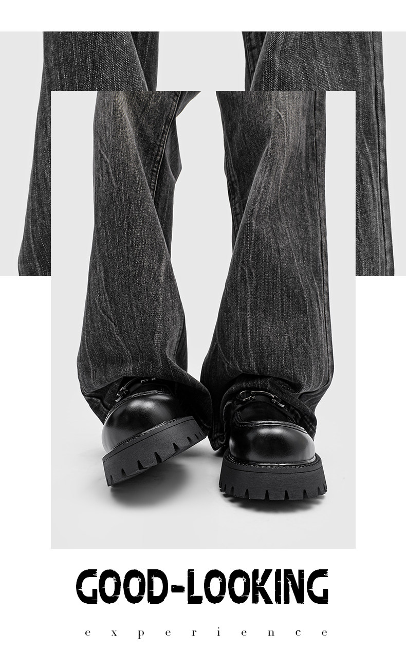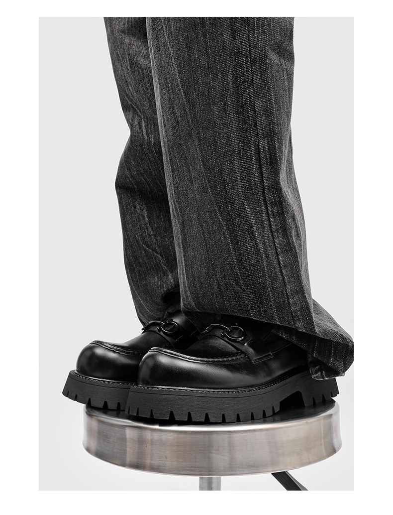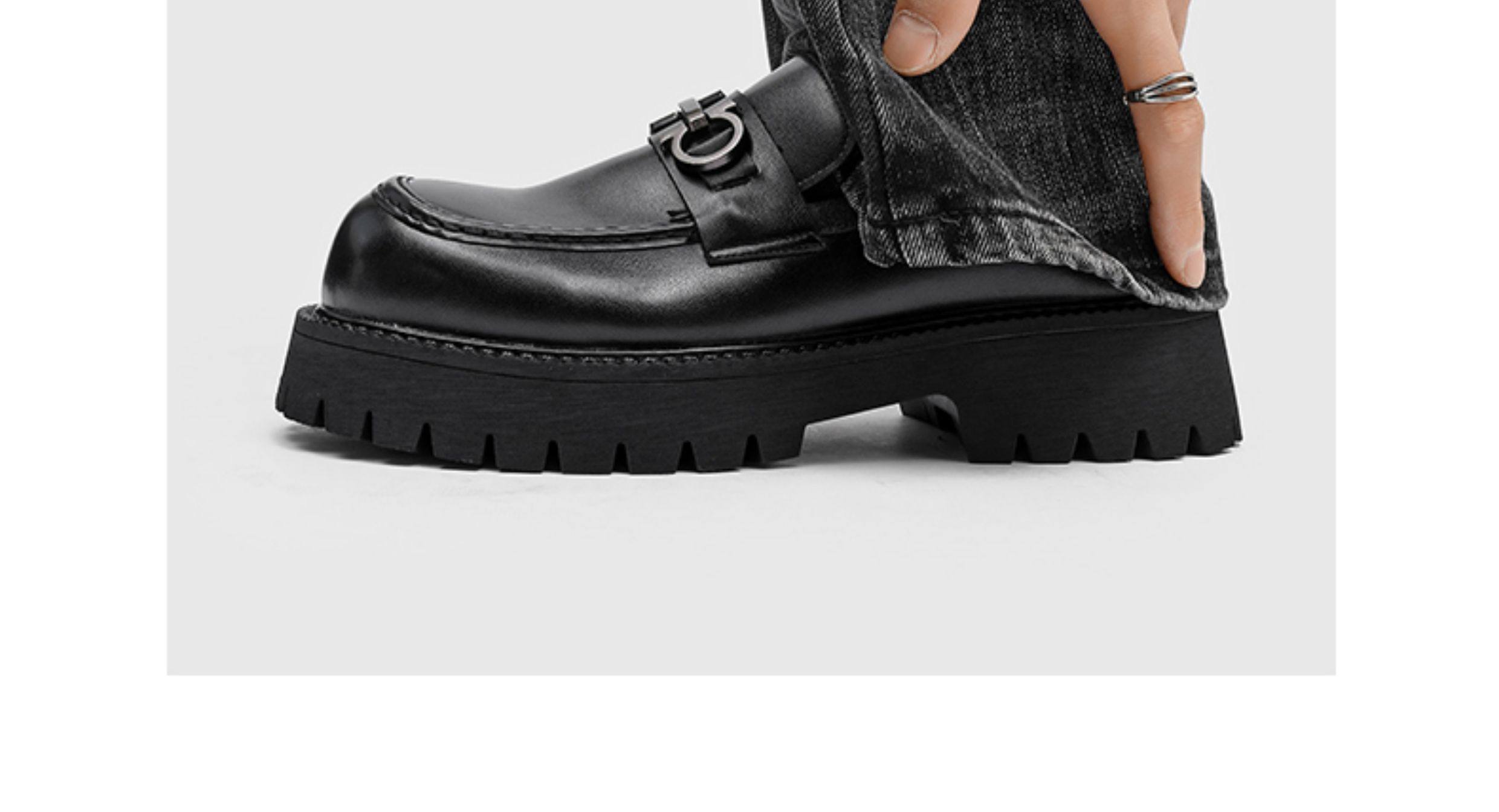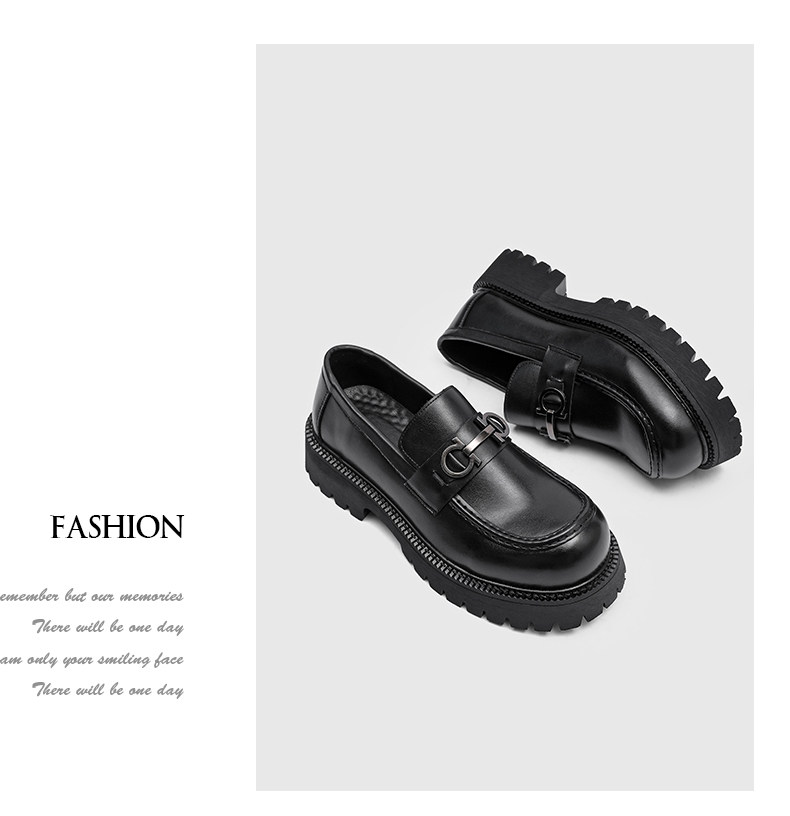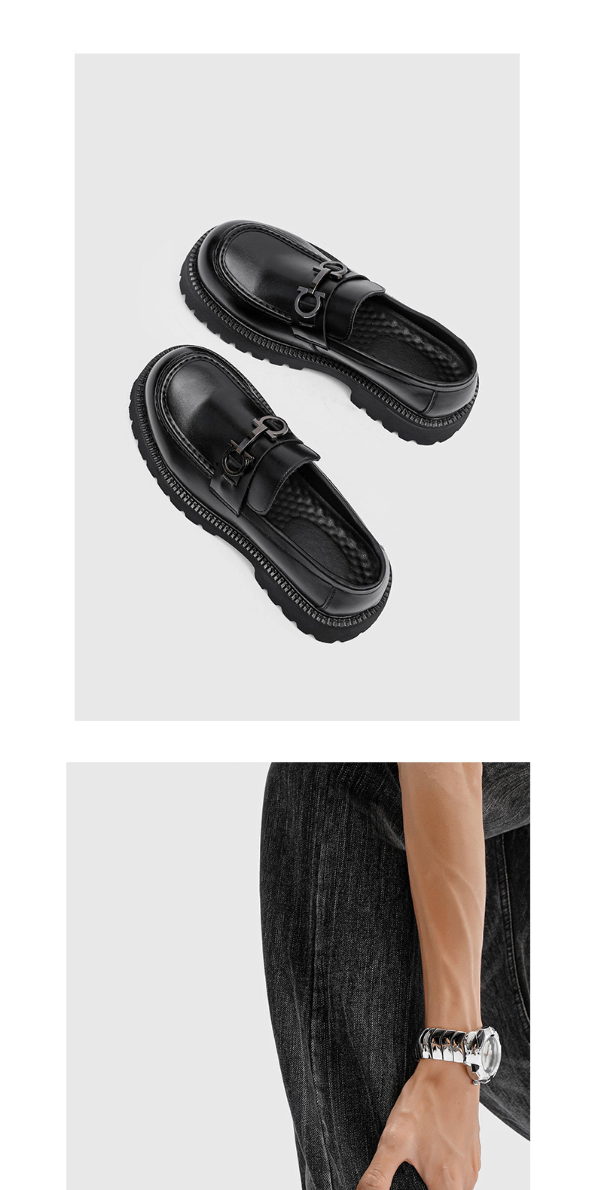 2025 New Round-Toe Casual Loafers with 5cm Thick Soles, Height-Increasing Leather Shoes for Men, Dark Metal Slip-On Derby Shoes