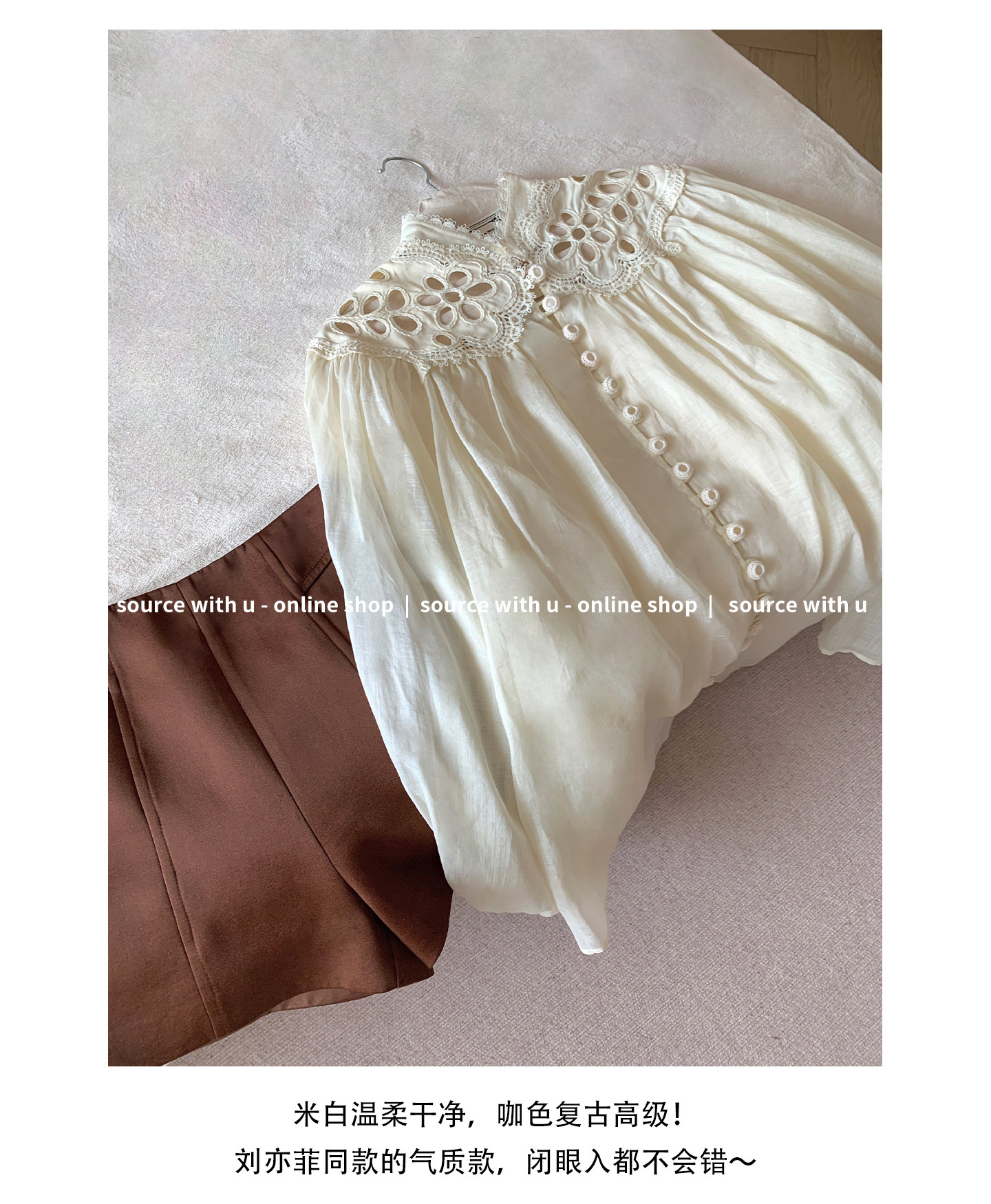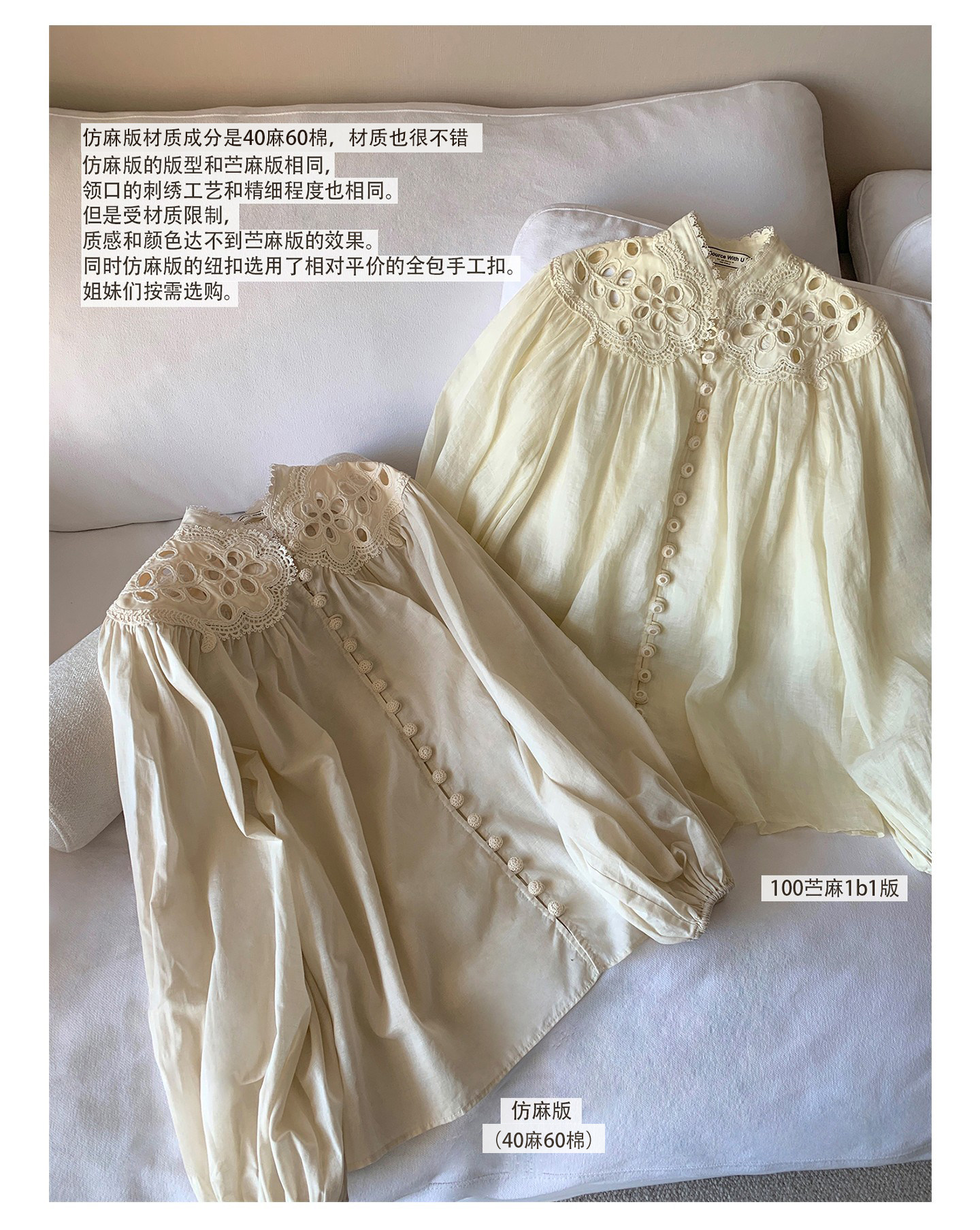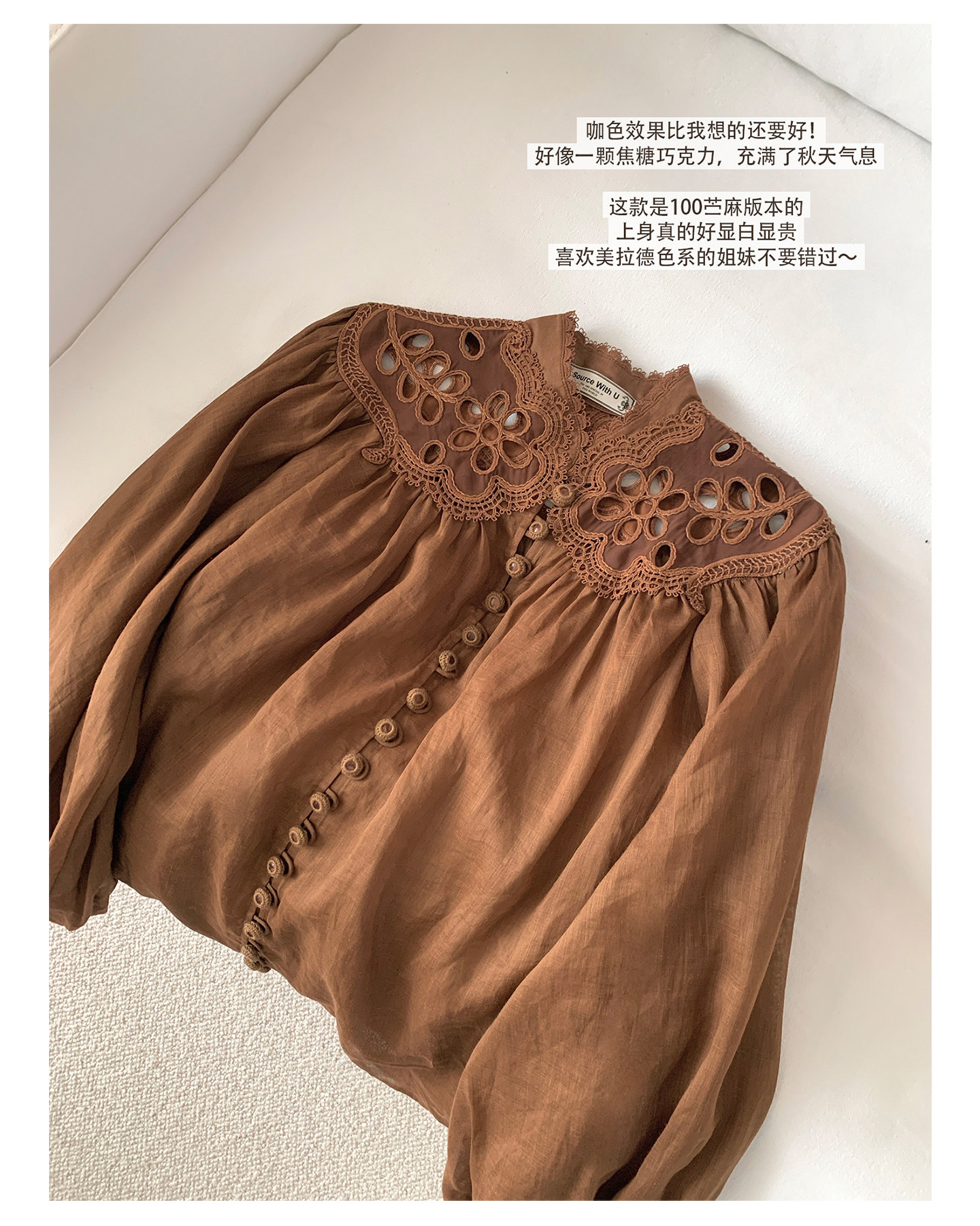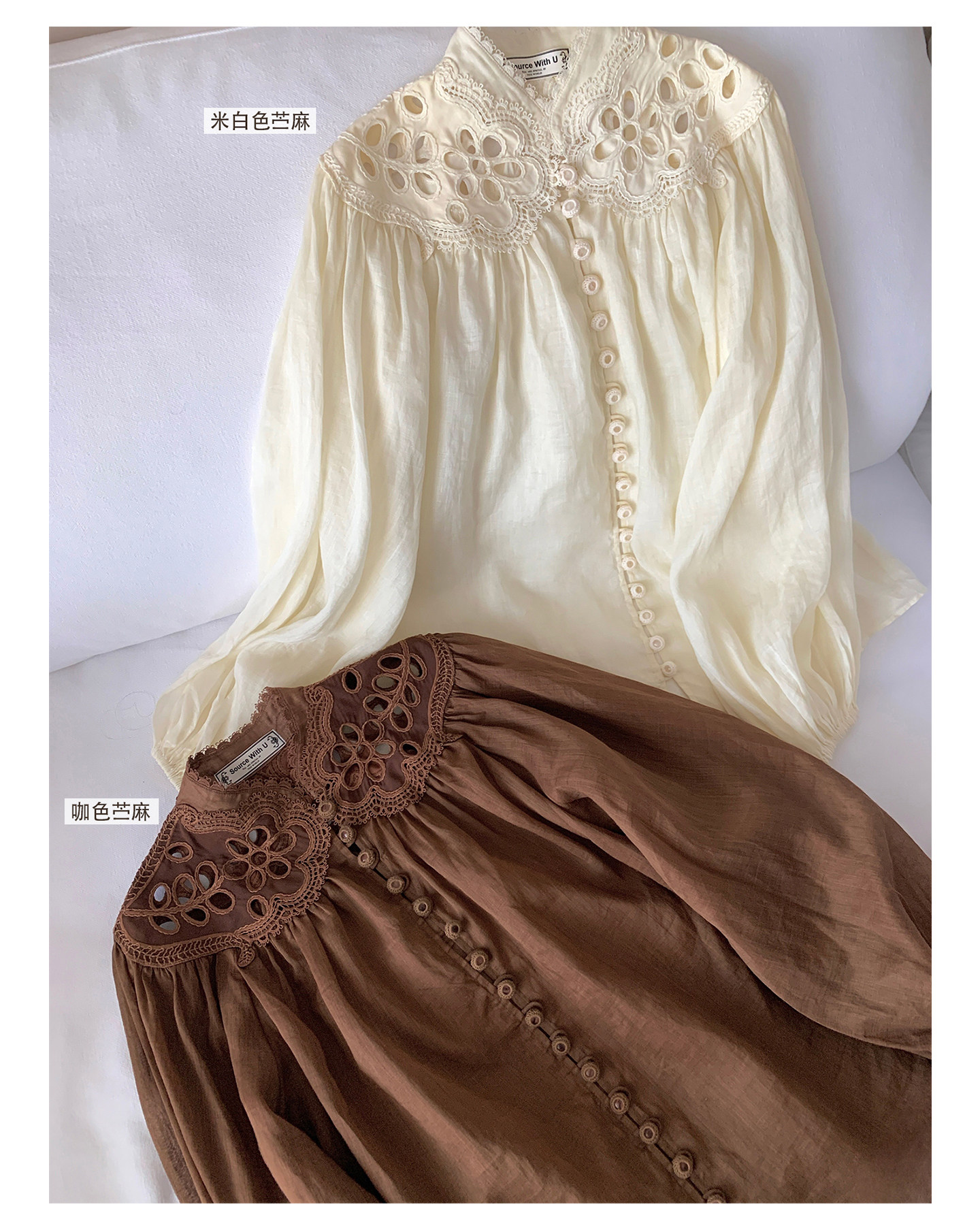 Sourcewithu Liu Yifei's Same Style 100% Ramie Hollow Embroidery High-Quality Cotton and Linen Long-Sleeved Shirt Top