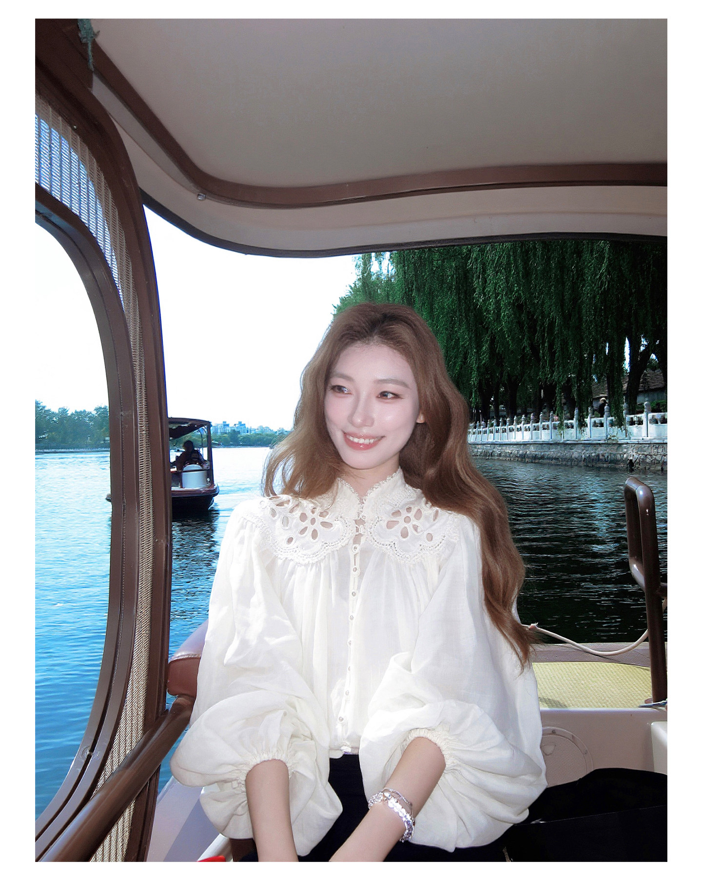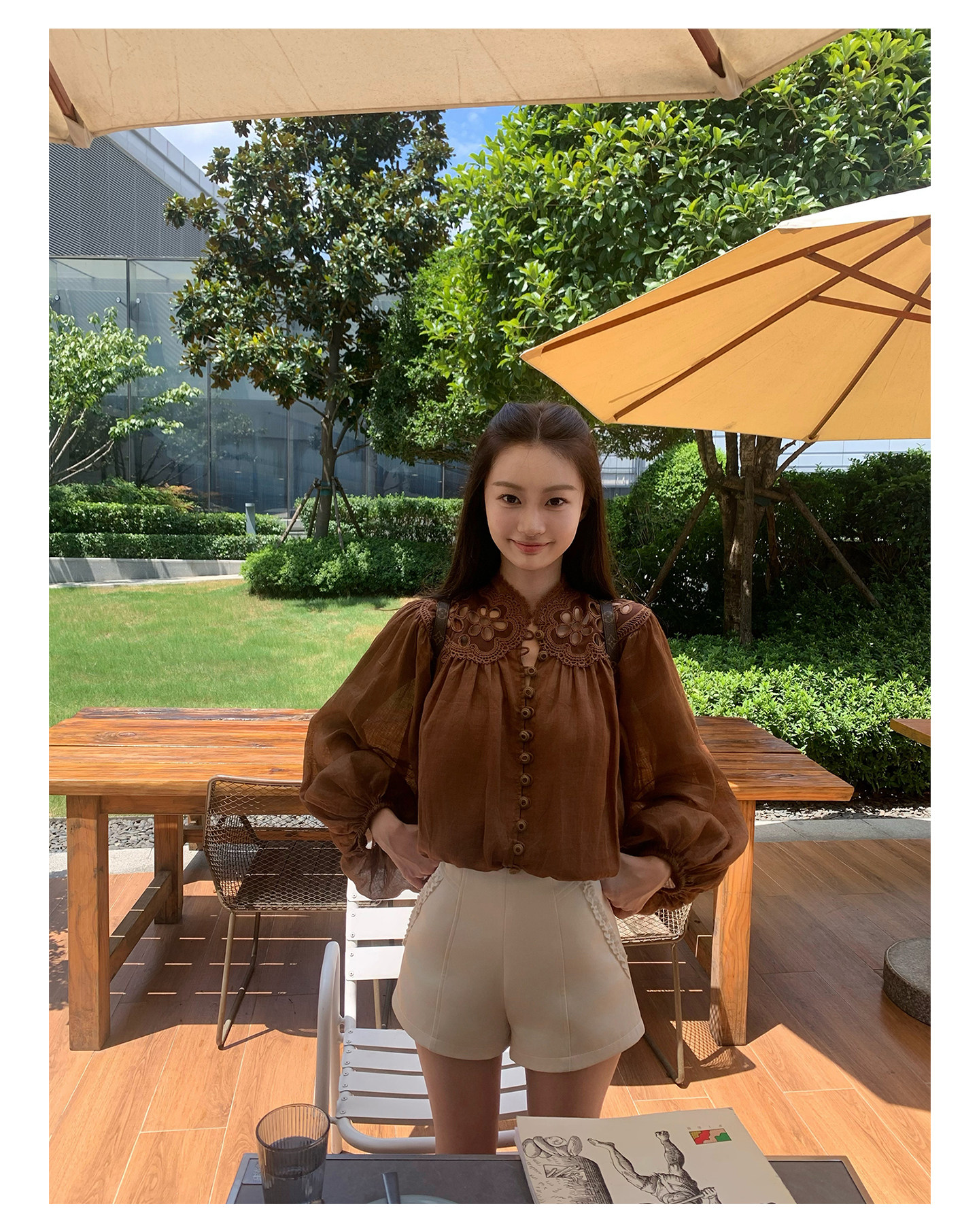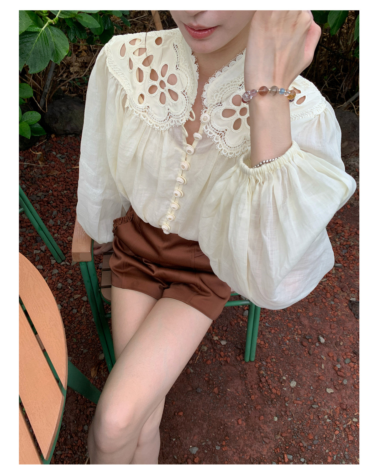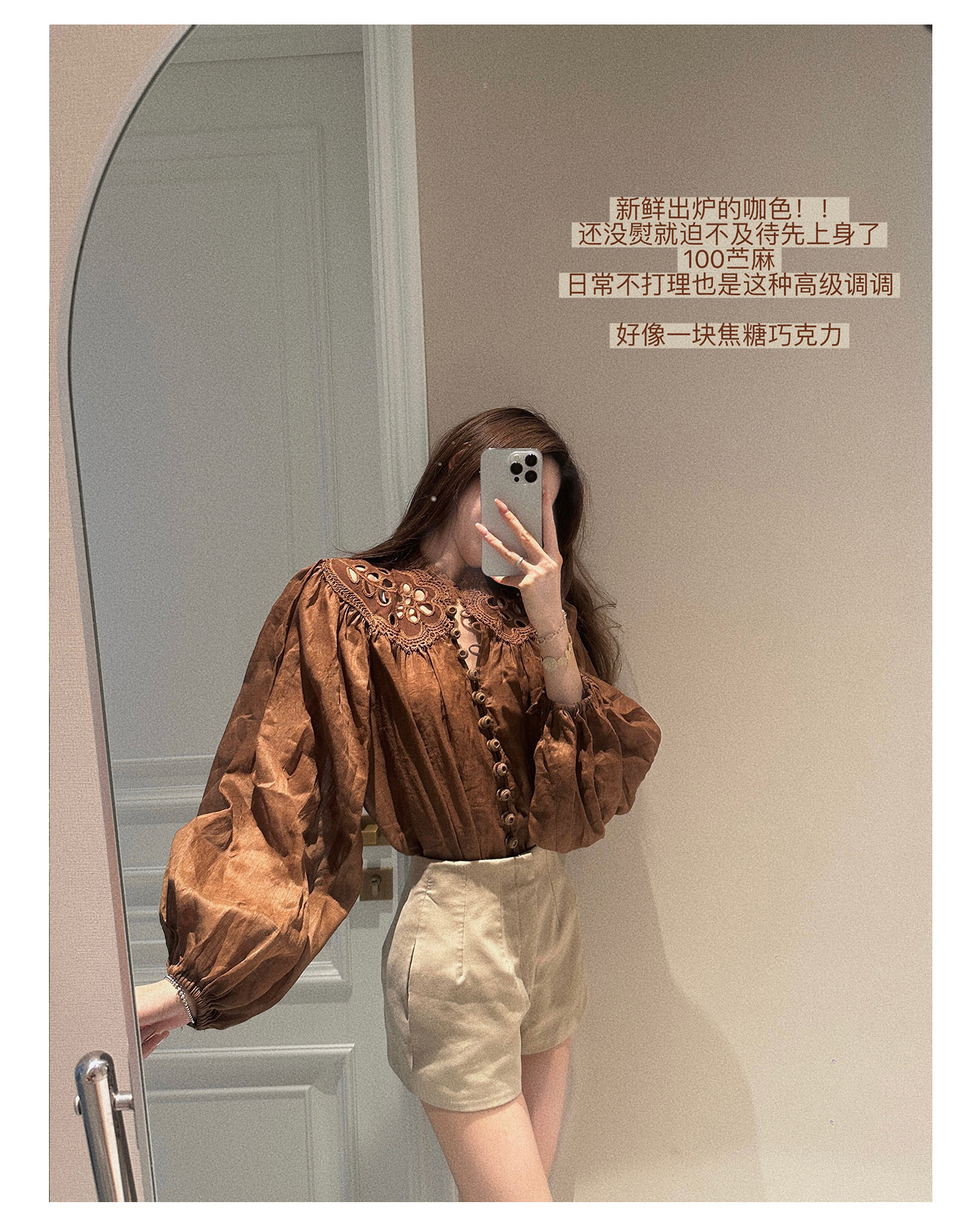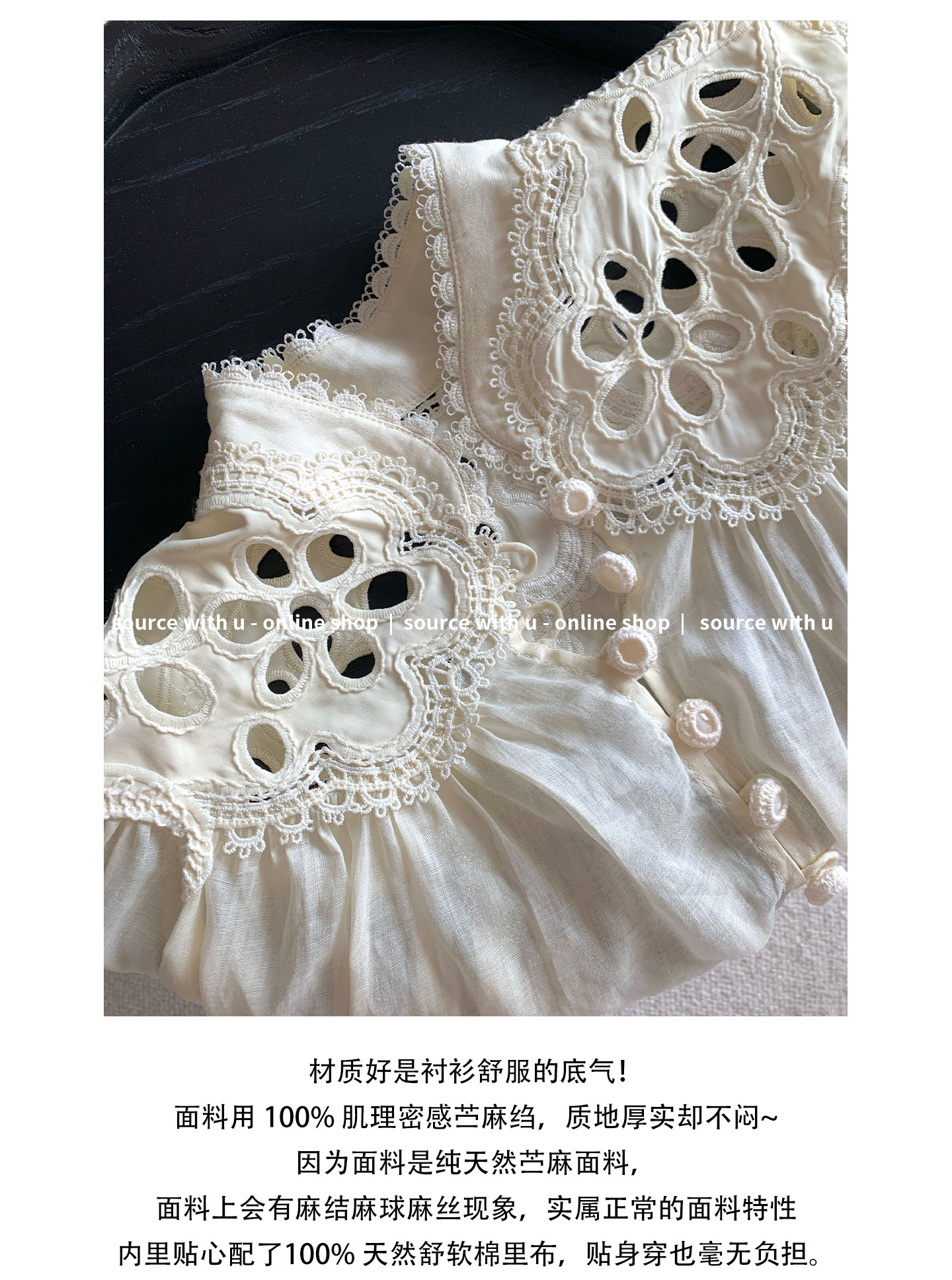 Sourcewithu Liu Yifei's Same Style 100% Ramie Hollow Embroidery High-Quality Cotton and Linen Long-Sleeved Shirt Top