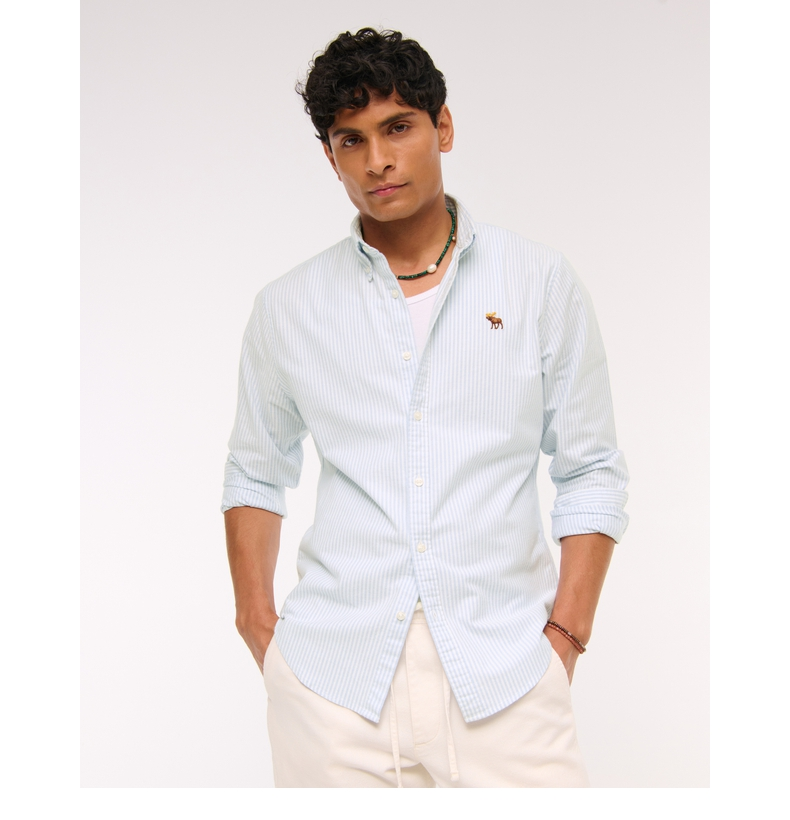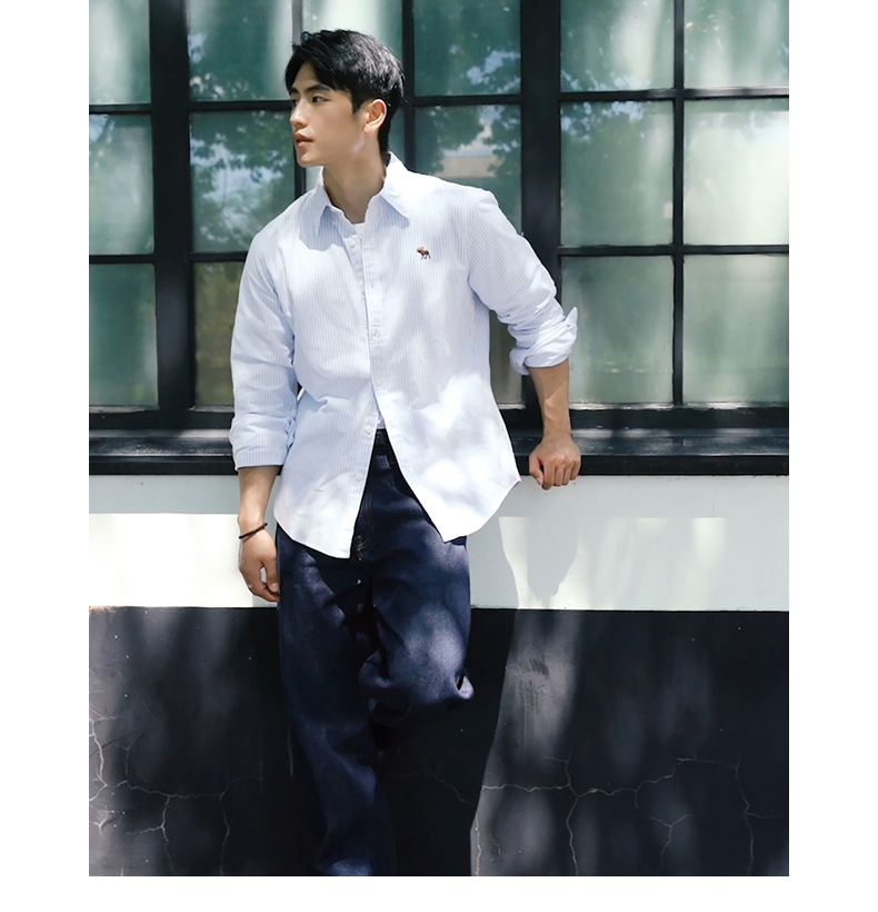 [Same Style as Li Xian] Af Little Deer Pattern Men's Clothing 25 Autumn/Winter American Oxford Long Sleeve Shirt 125-5224