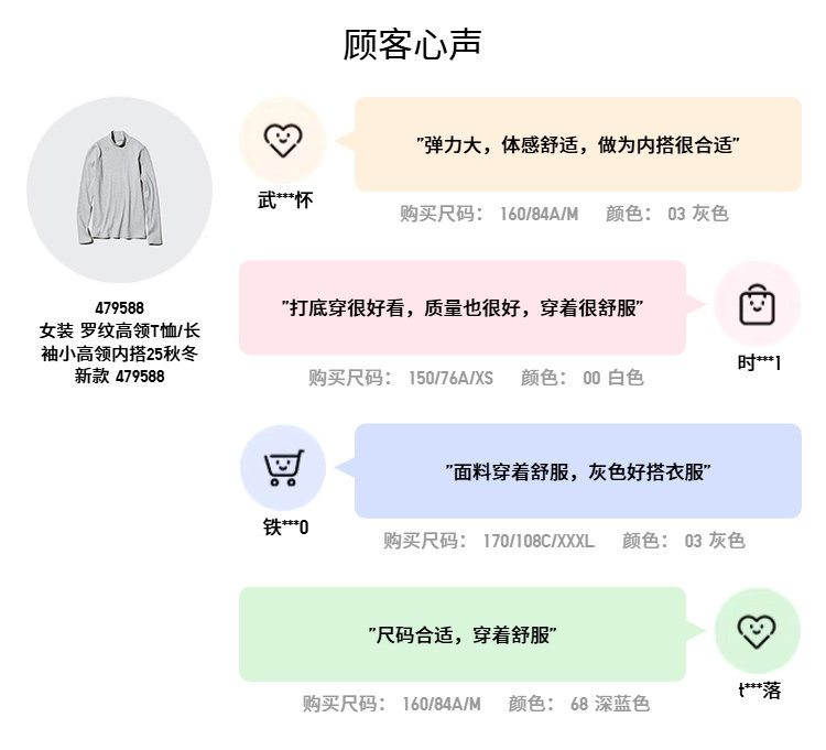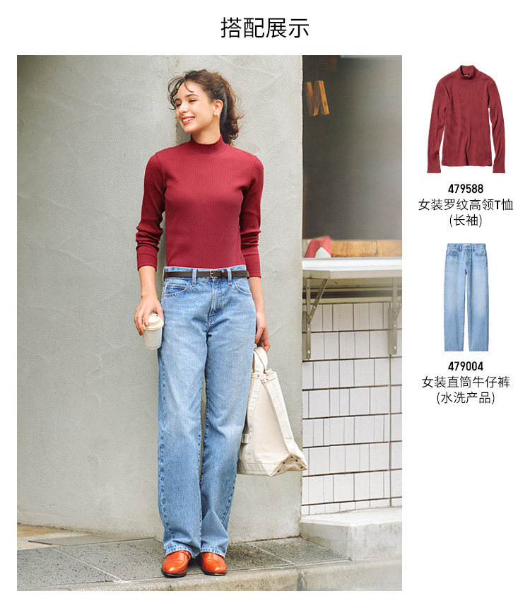 Uniqlo Women's Ribbed Turtleneck T-Shirt/Long-Sleeved Mock Turtleneck Inner Layer 479588