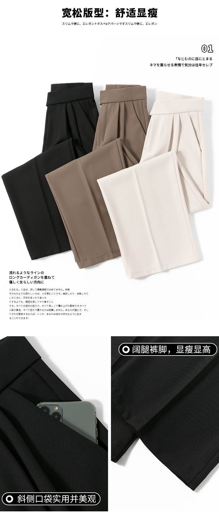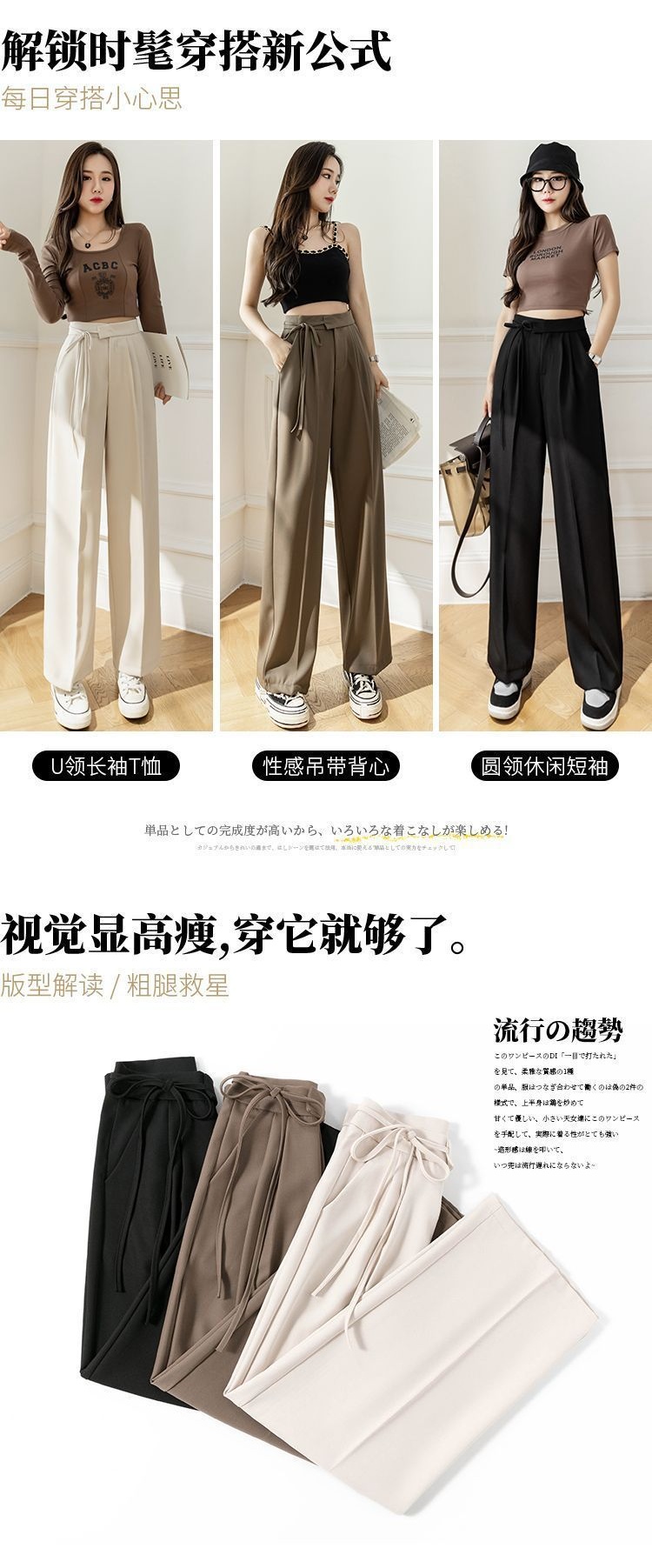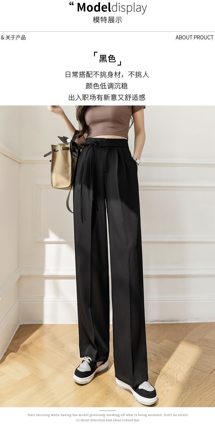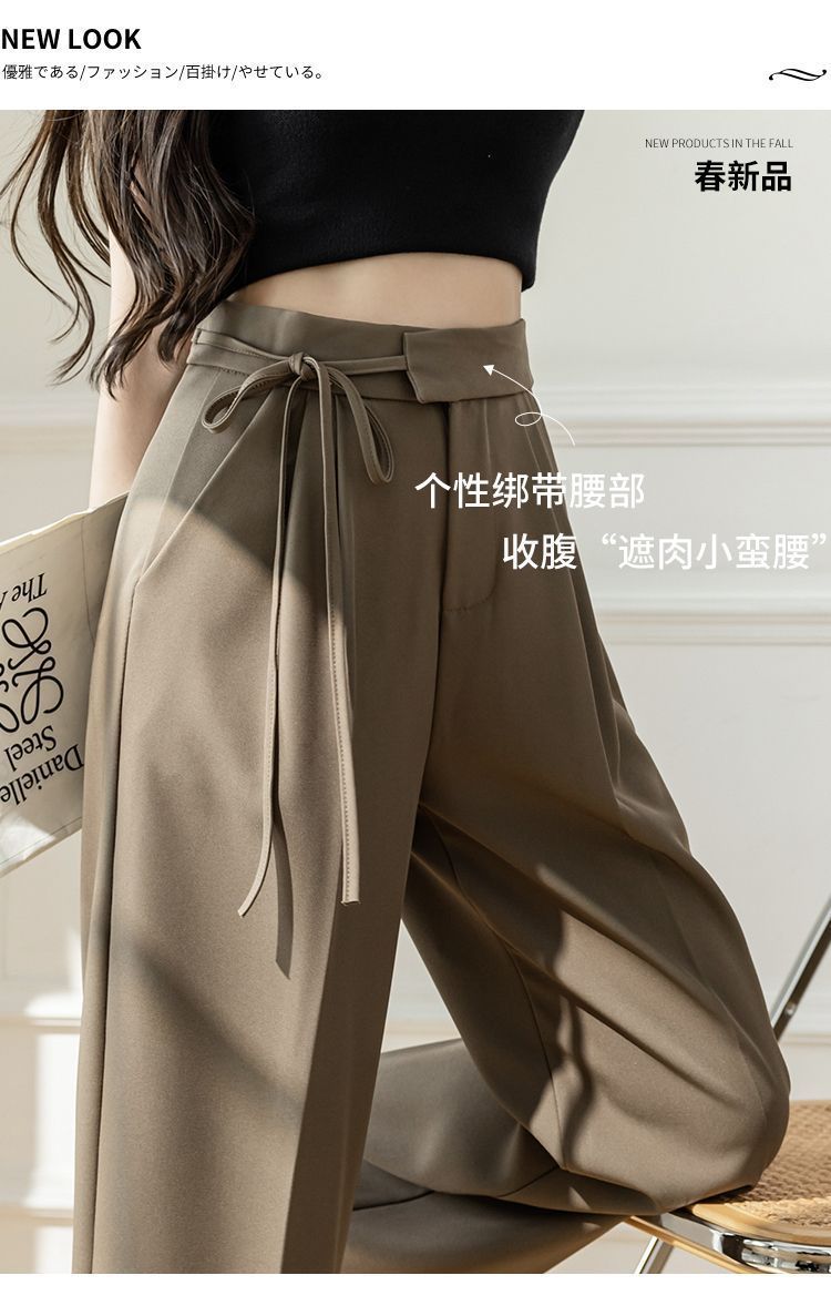 Straight-Leg Tie-Waist Suit Pants for Women, Autumn, Petite, High-Waisted, Drapey Wide-Leg Pants, 2025 New Style, Casual Trousers