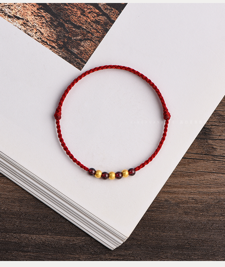999 Pure Gold Gold Bead Red String Bracelet Anklet for Men and Women Natural Garnet for Safety and Good Luck Woven Bracelet