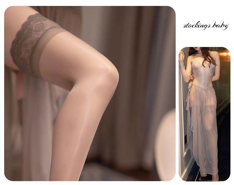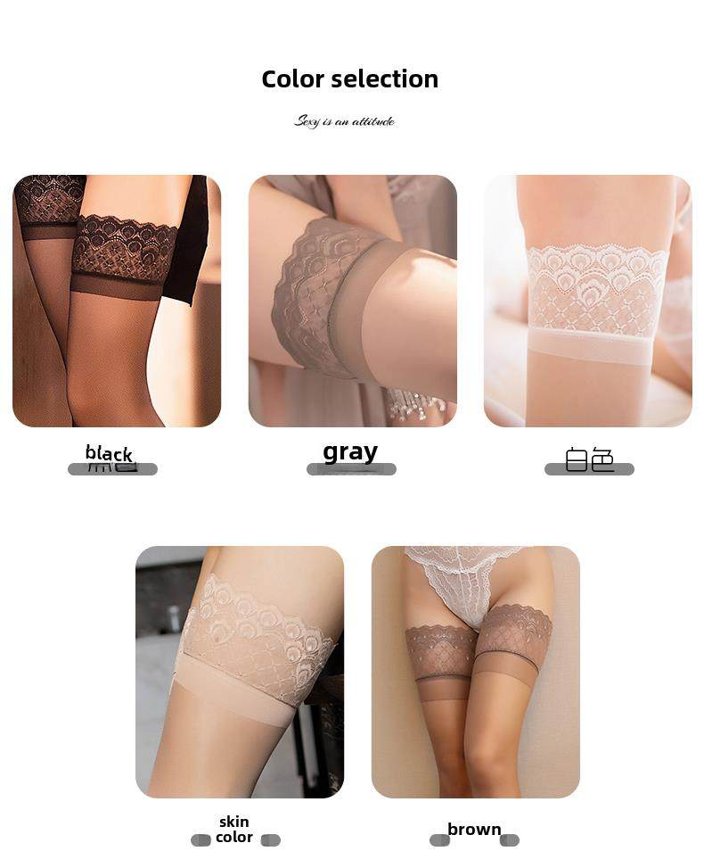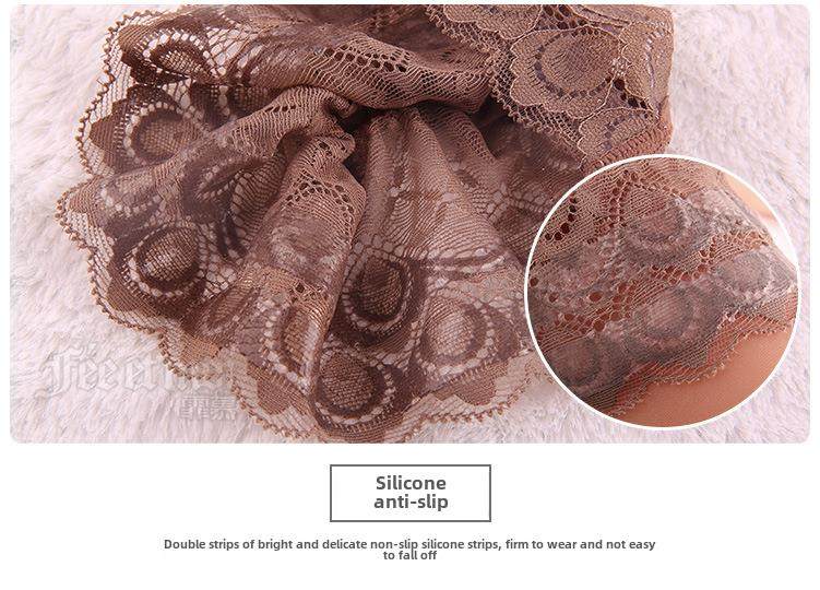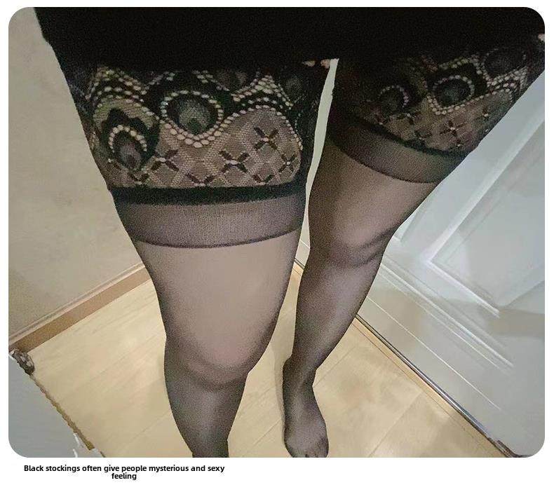 3 Pairs of Thin, Extra-Long Stockings, Feminine High-Tube Stockings That Go over the Knee to the Thigh, with Lace Trim, Non-Slip, Black Silk, Transparent