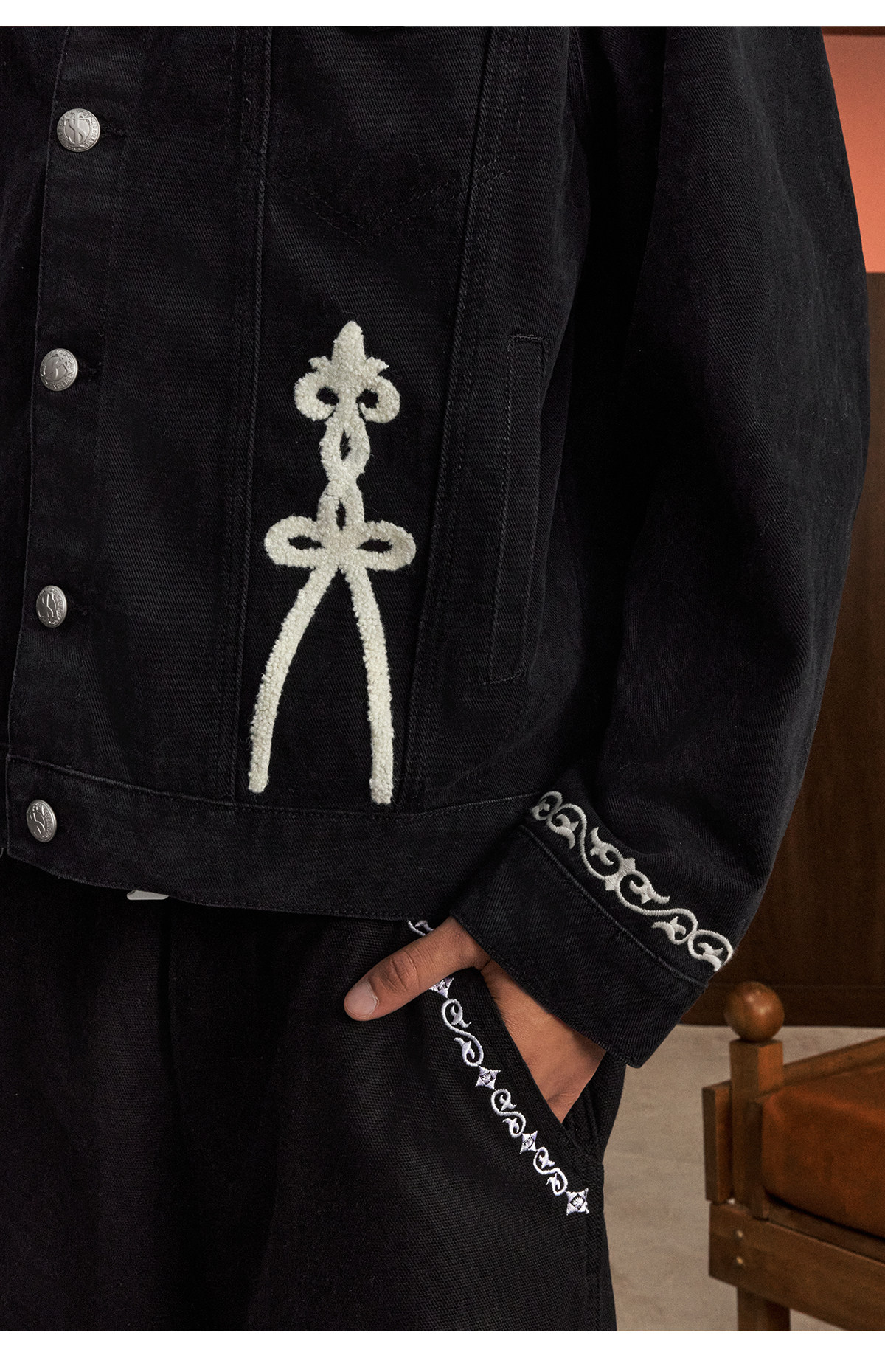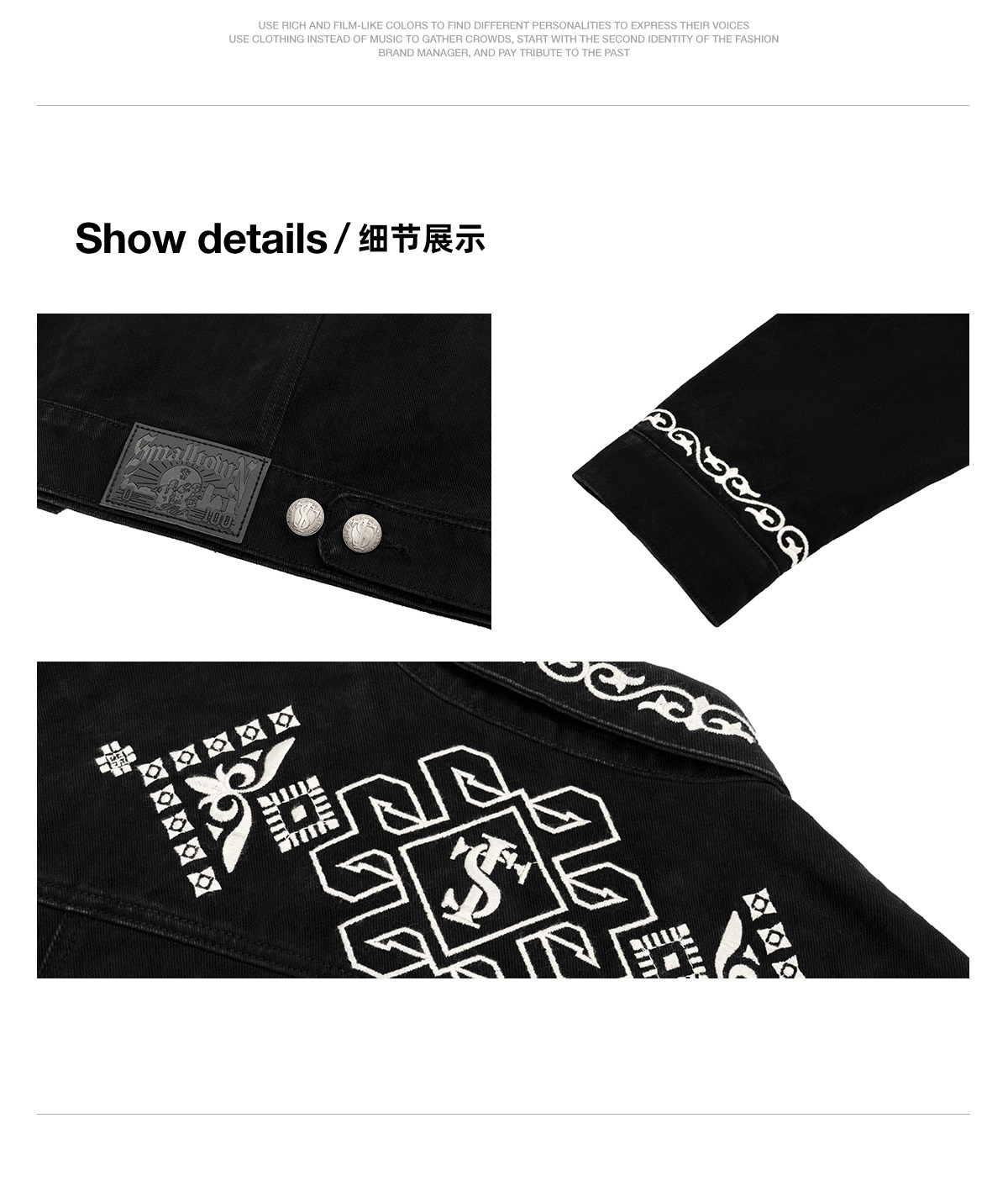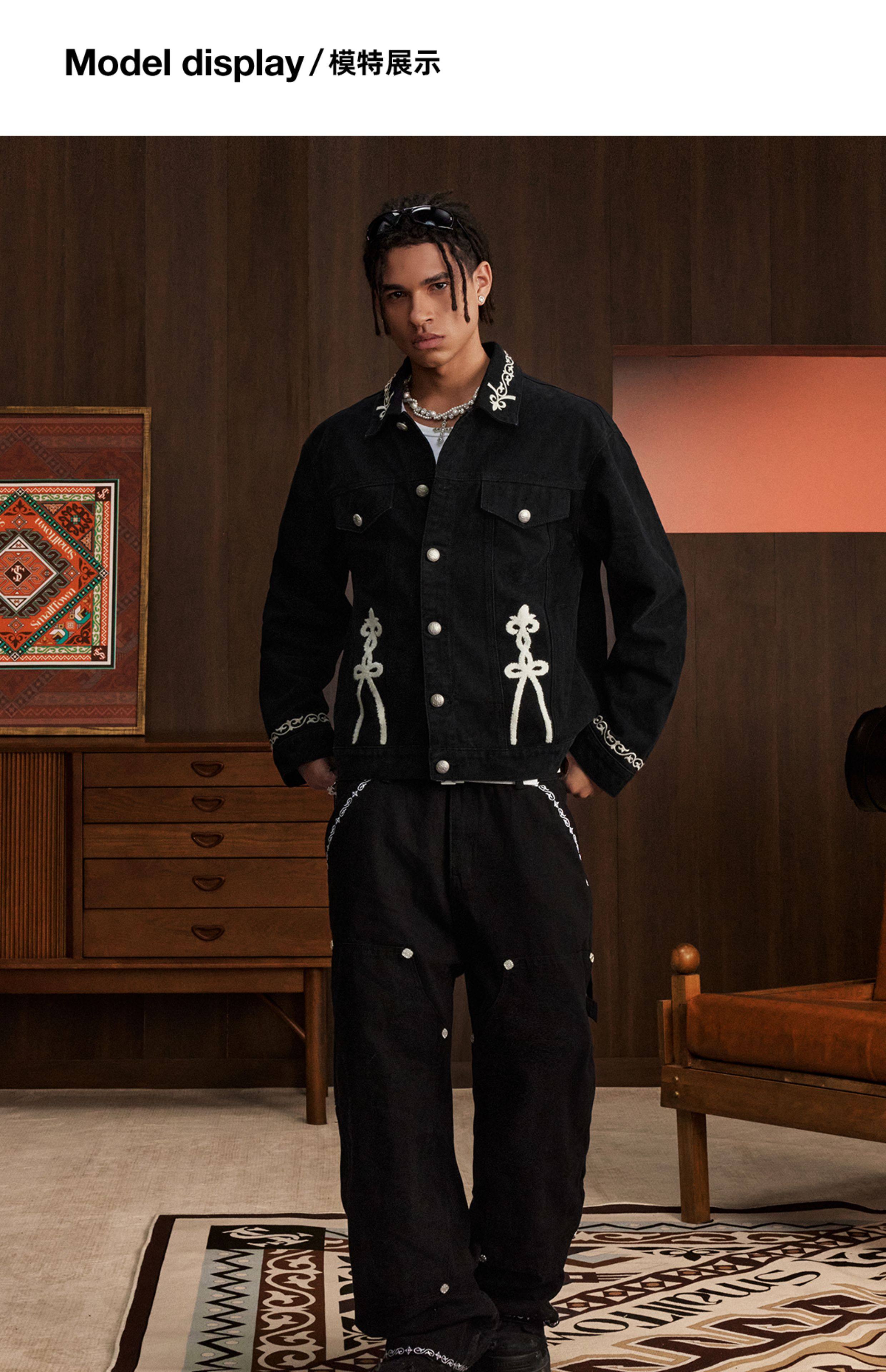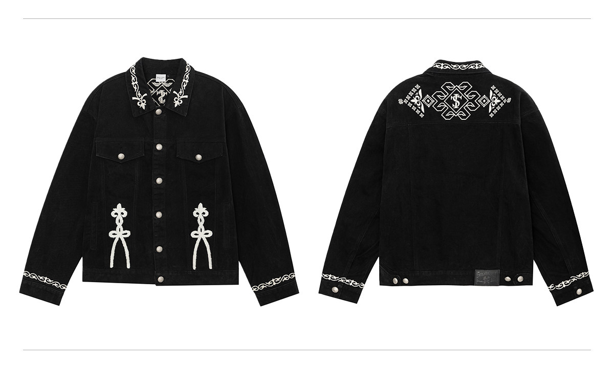 Stk Smalltownkid Ethnic Style Brocade Flower Vine Embroidery Denim Jacket Unisex Trendy Outerwear