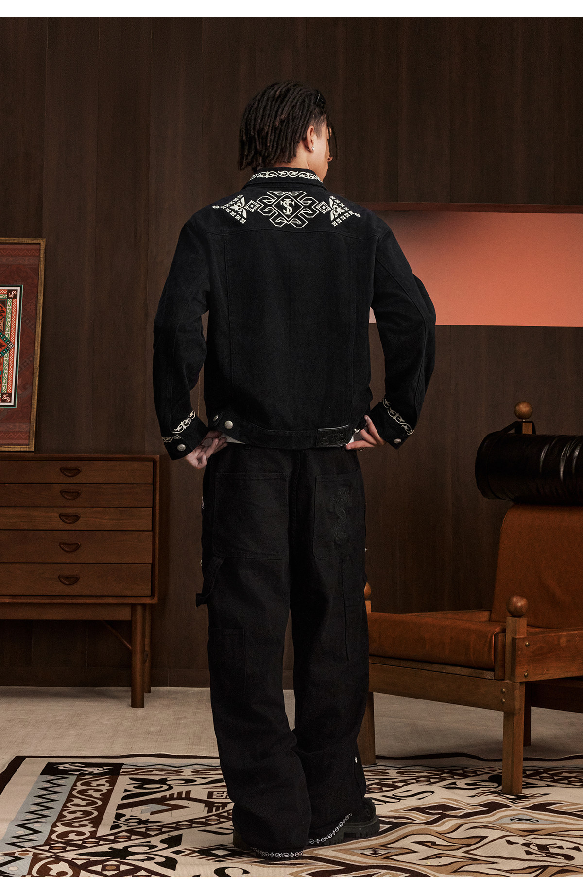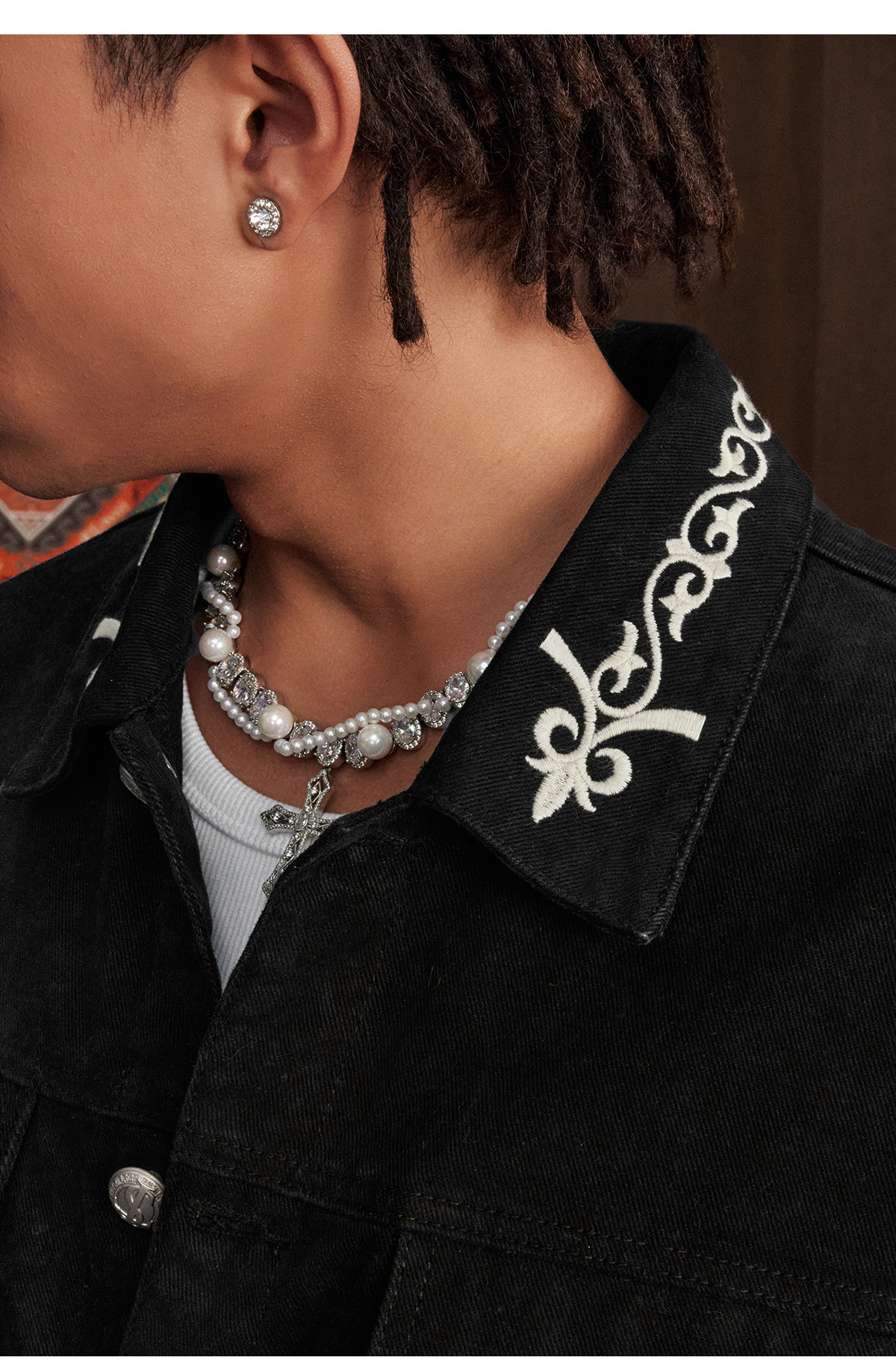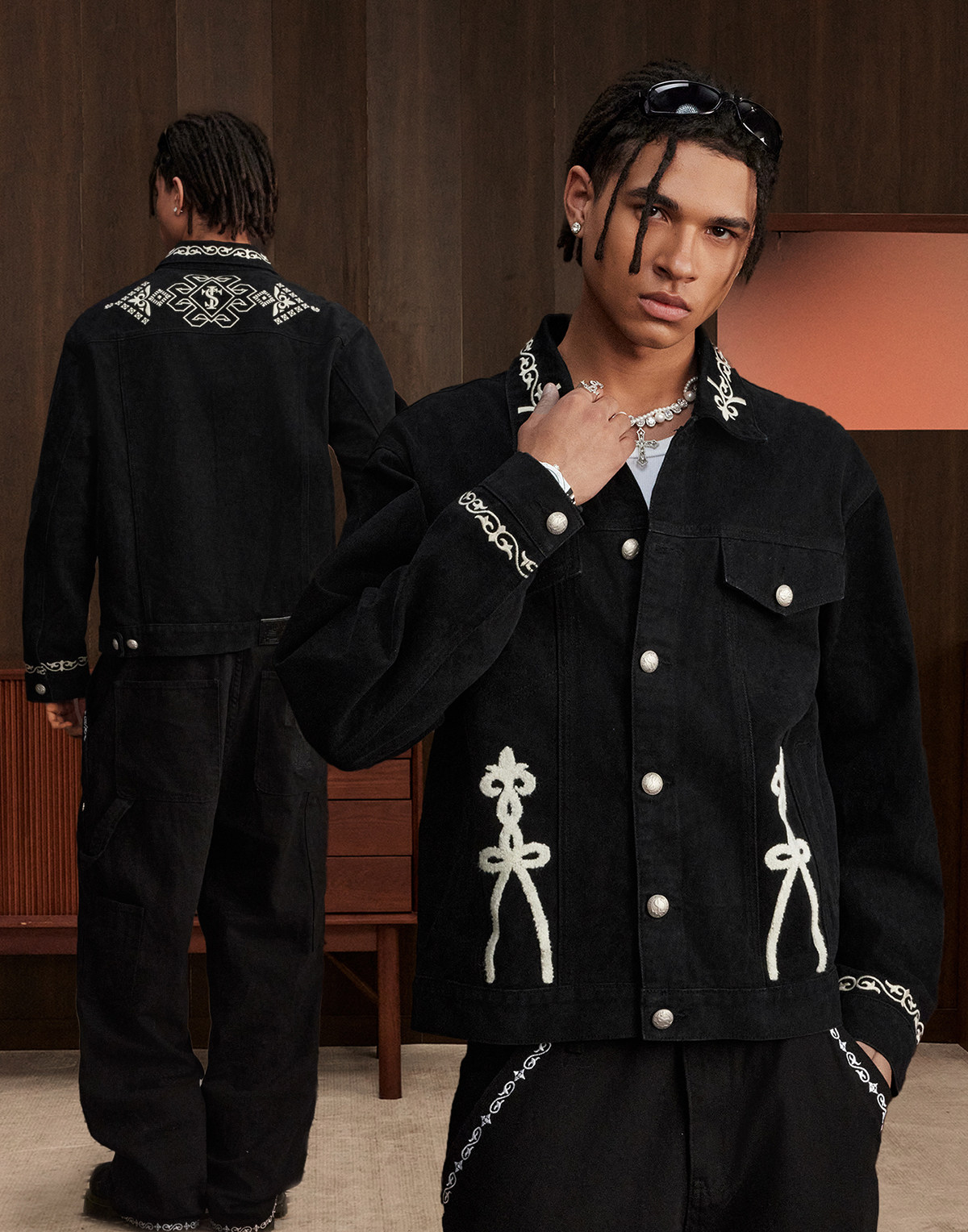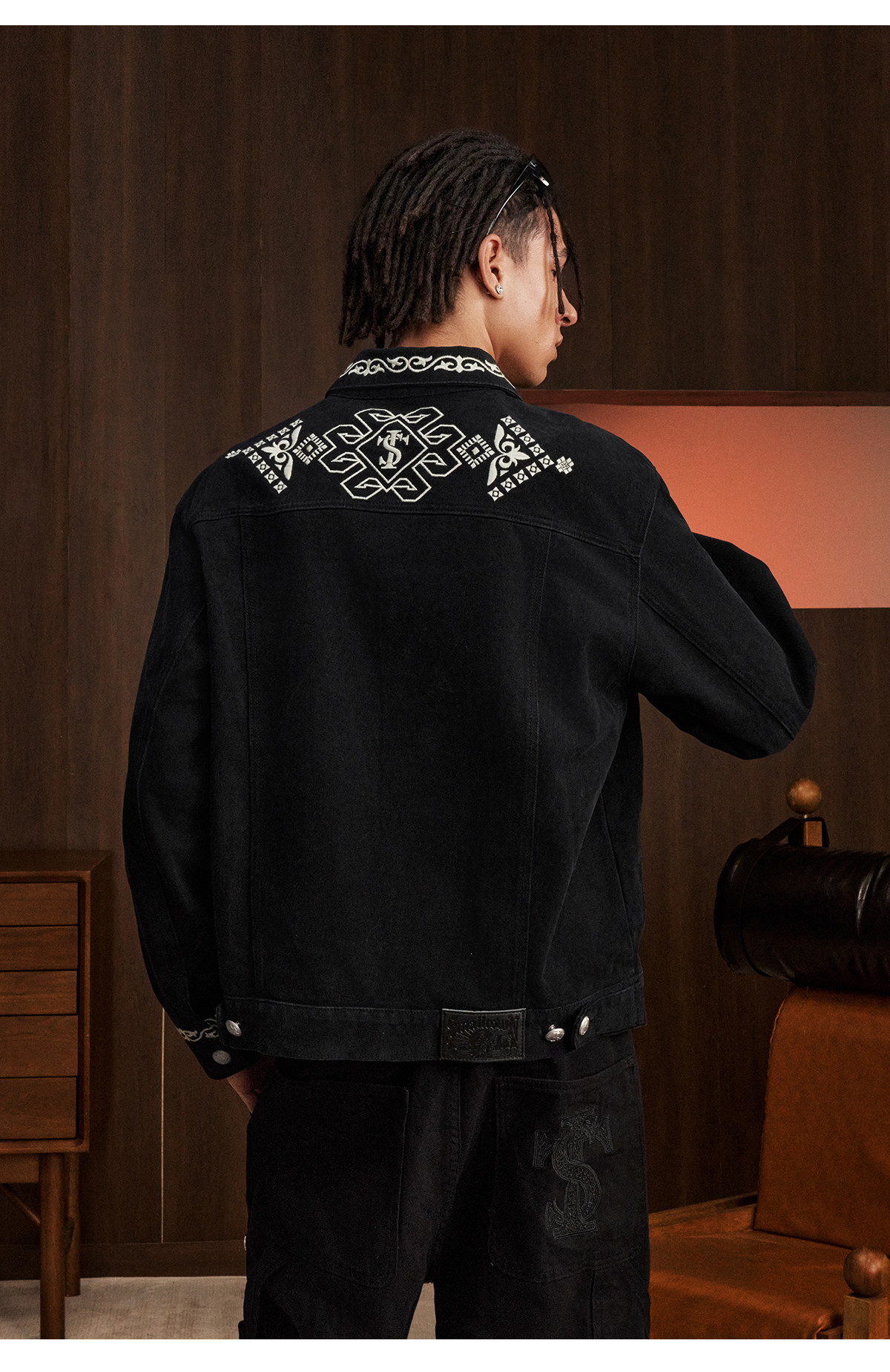 Stk Smalltownkid Ethnic Style Brocade Flower Vine Embroidery Denim Jacket Unisex Trendy Outerwear