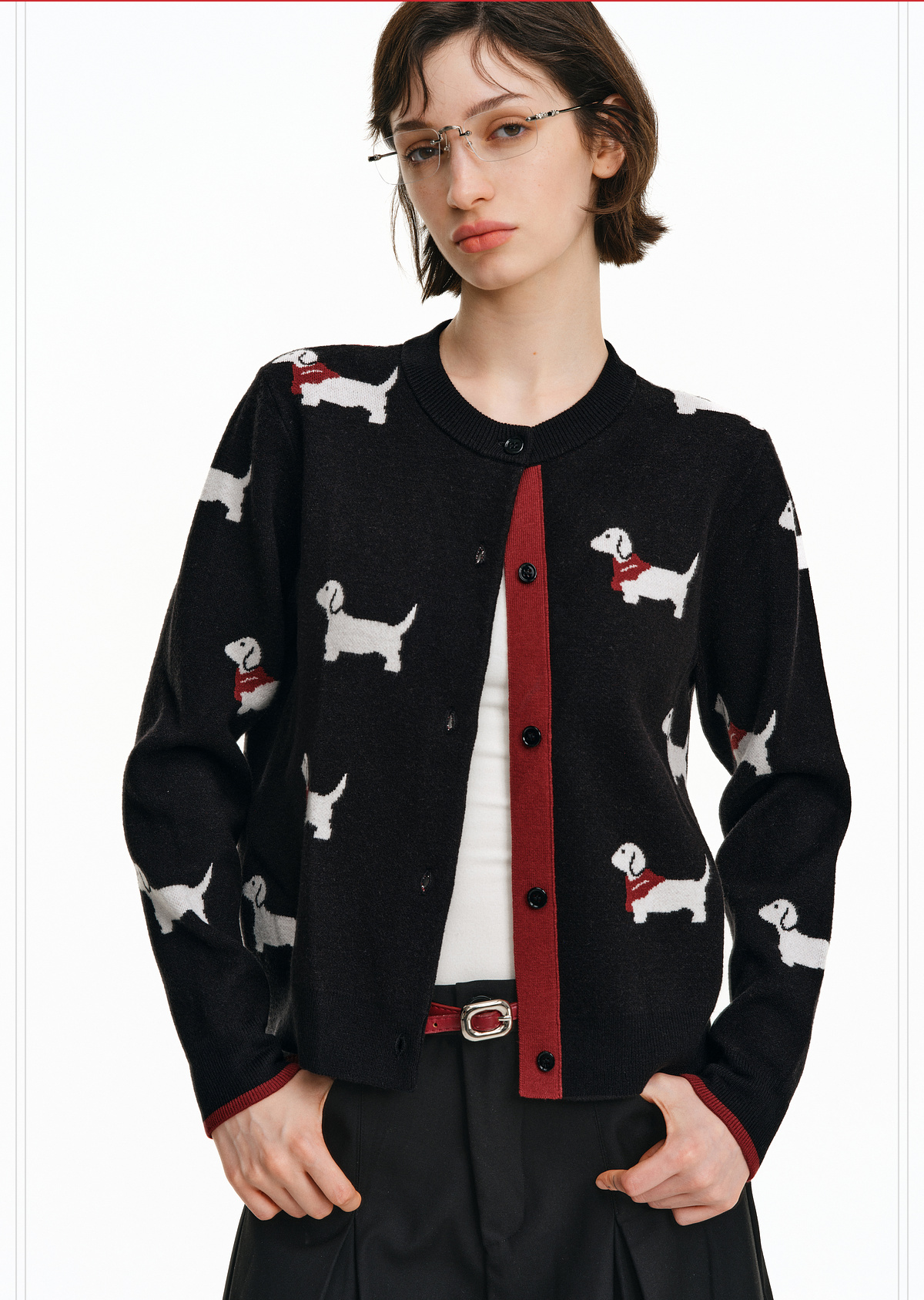 Pclp All-Over Print Puppy Cardigan Sweater Trendy Autumn Loose Retro Button Versatile Slimming Knit Jacket