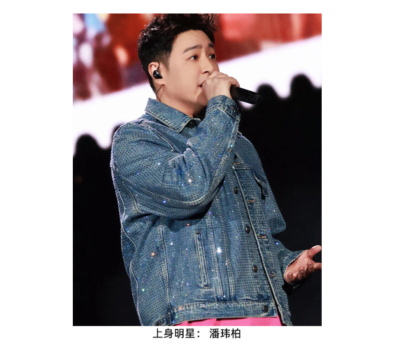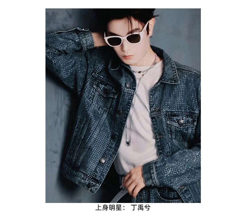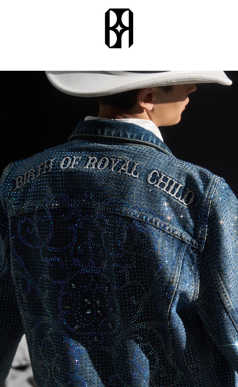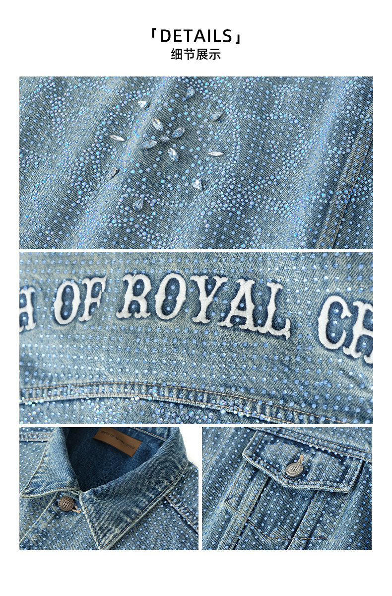 Birth of Royal Child.Borc 【Same Style as Pan Wei Bai】Rhinestone-Encrusted Denim Jacket with Dazzling Sparkle