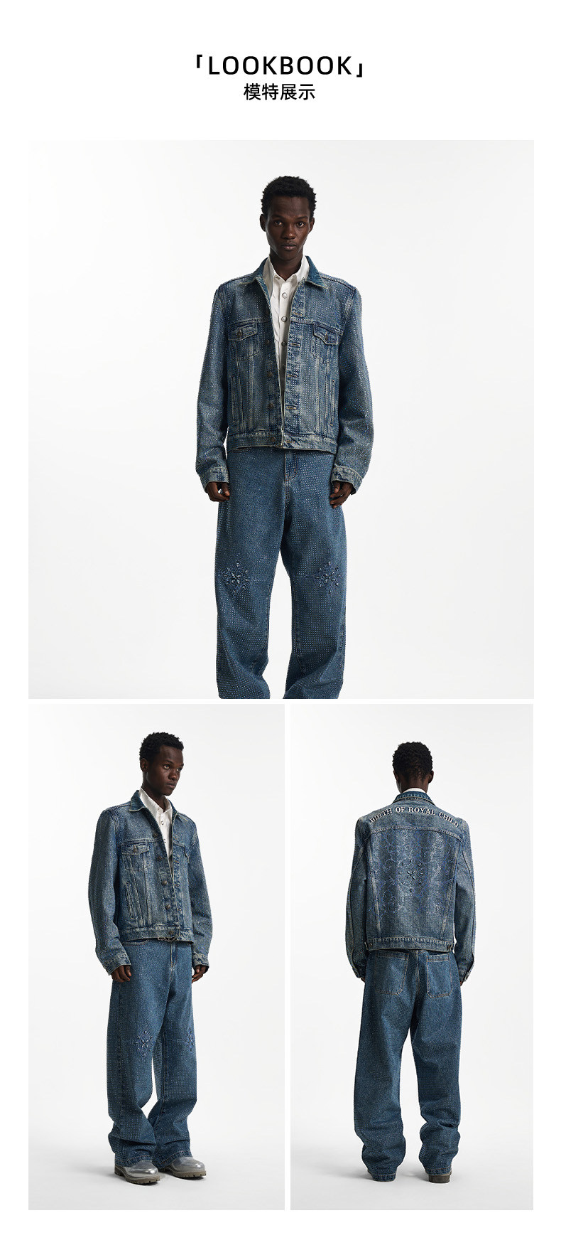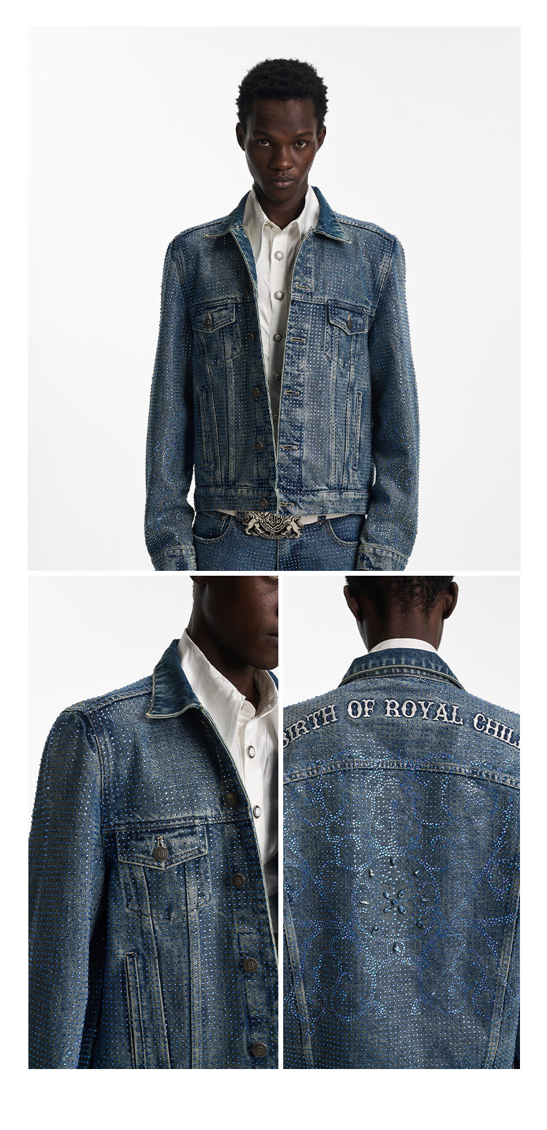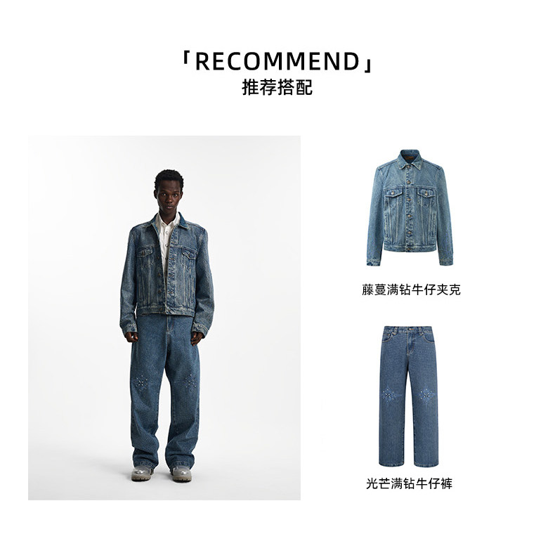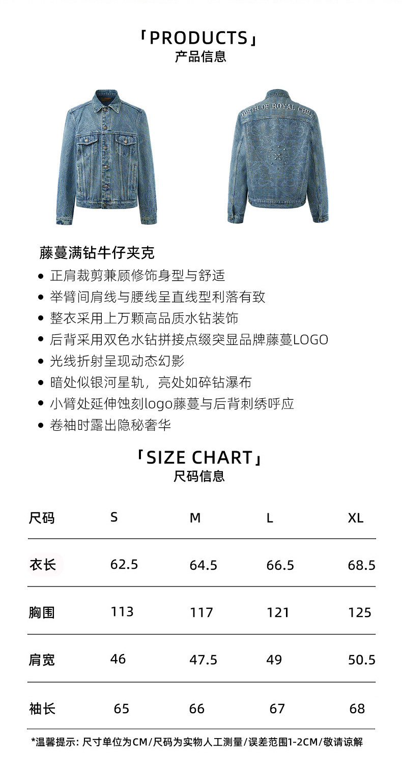 Birth of Royal Child.Borc 【Same Style as Pan Wei Bai】Rhinestone-Encrusted Denim Jacket with Dazzling Sparkle