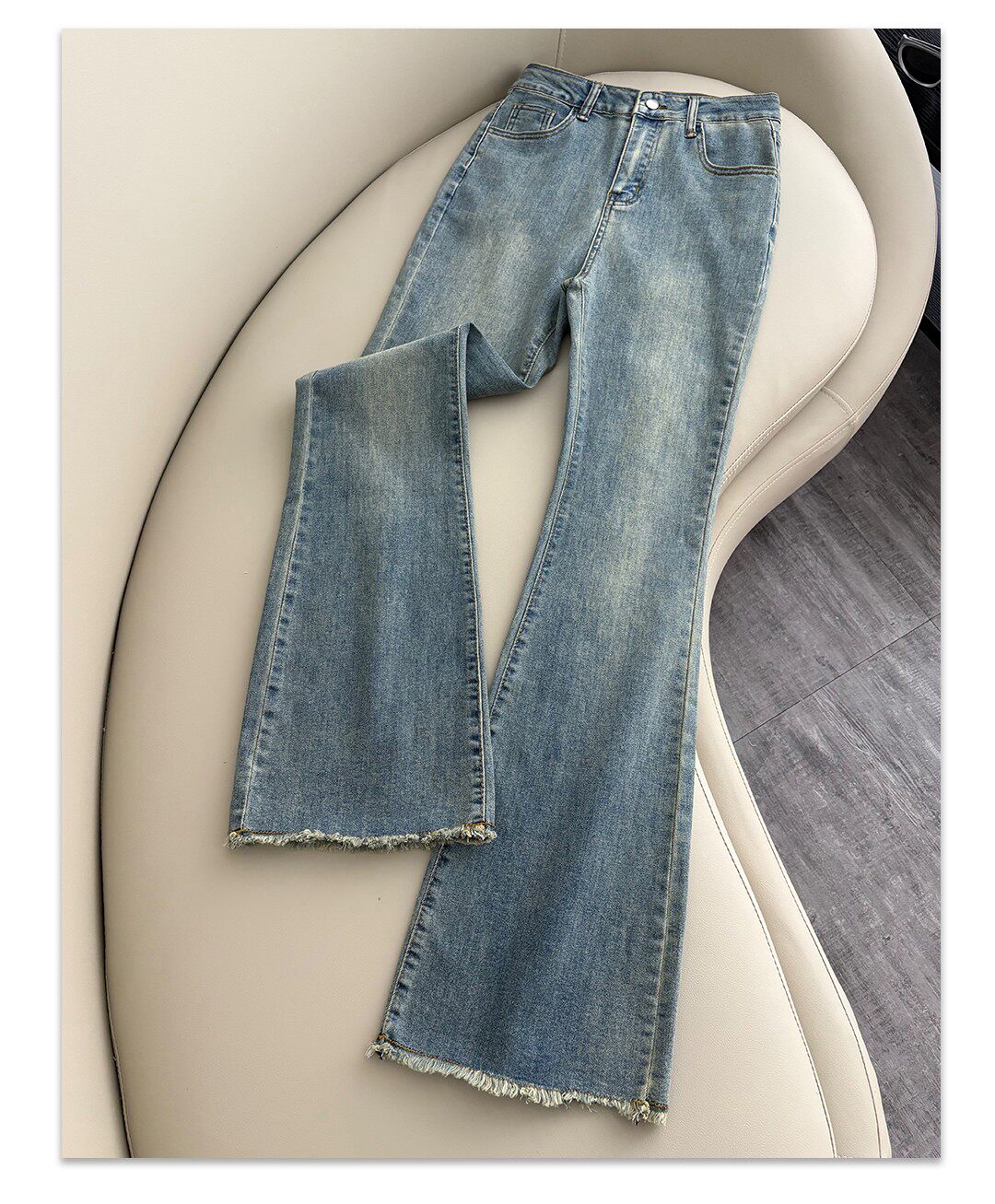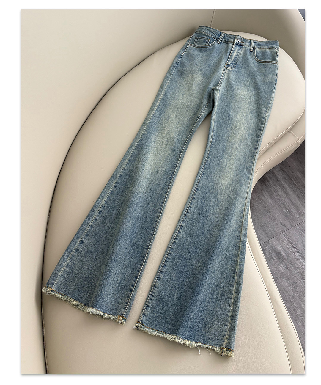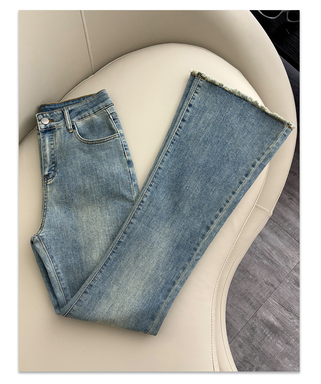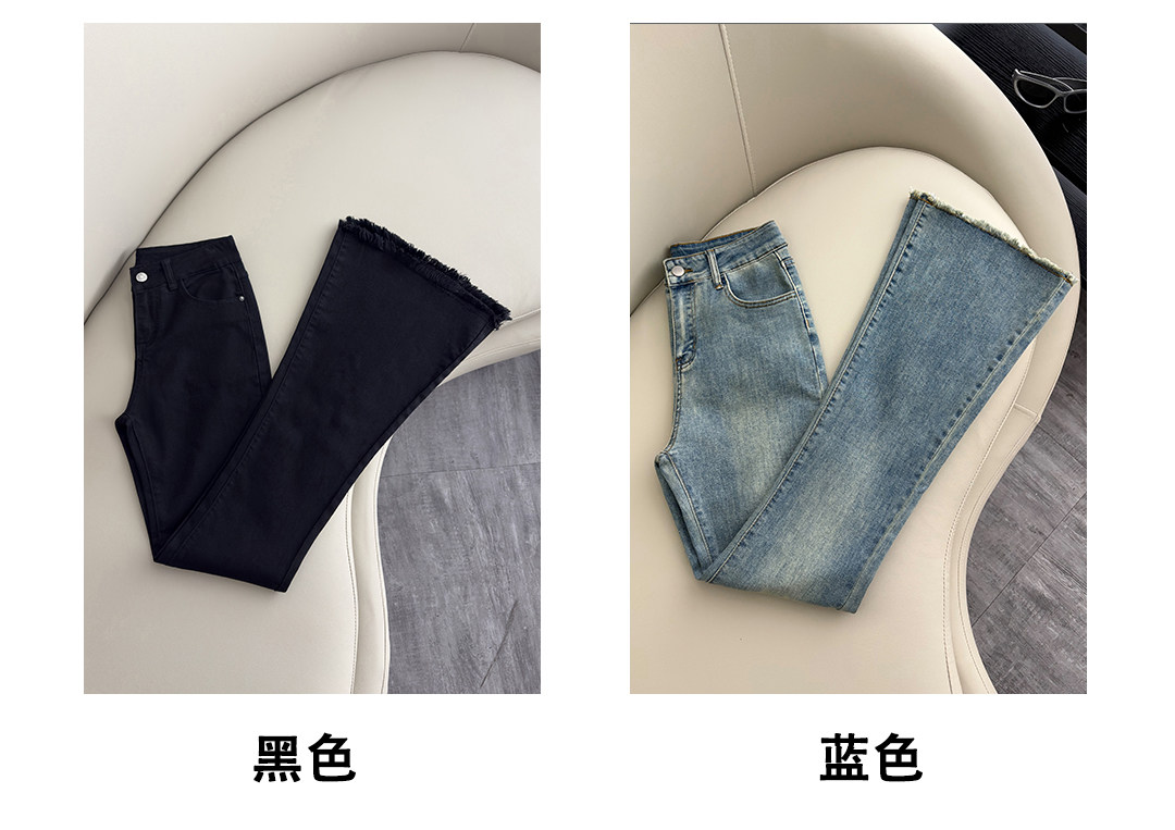 La Chapelle Nostalgic Blue Frayed Hem Flared Jeans for Women 2026 Spring and Autumn New High-Waisted Slimming Stretch Bell-Bottom Pants