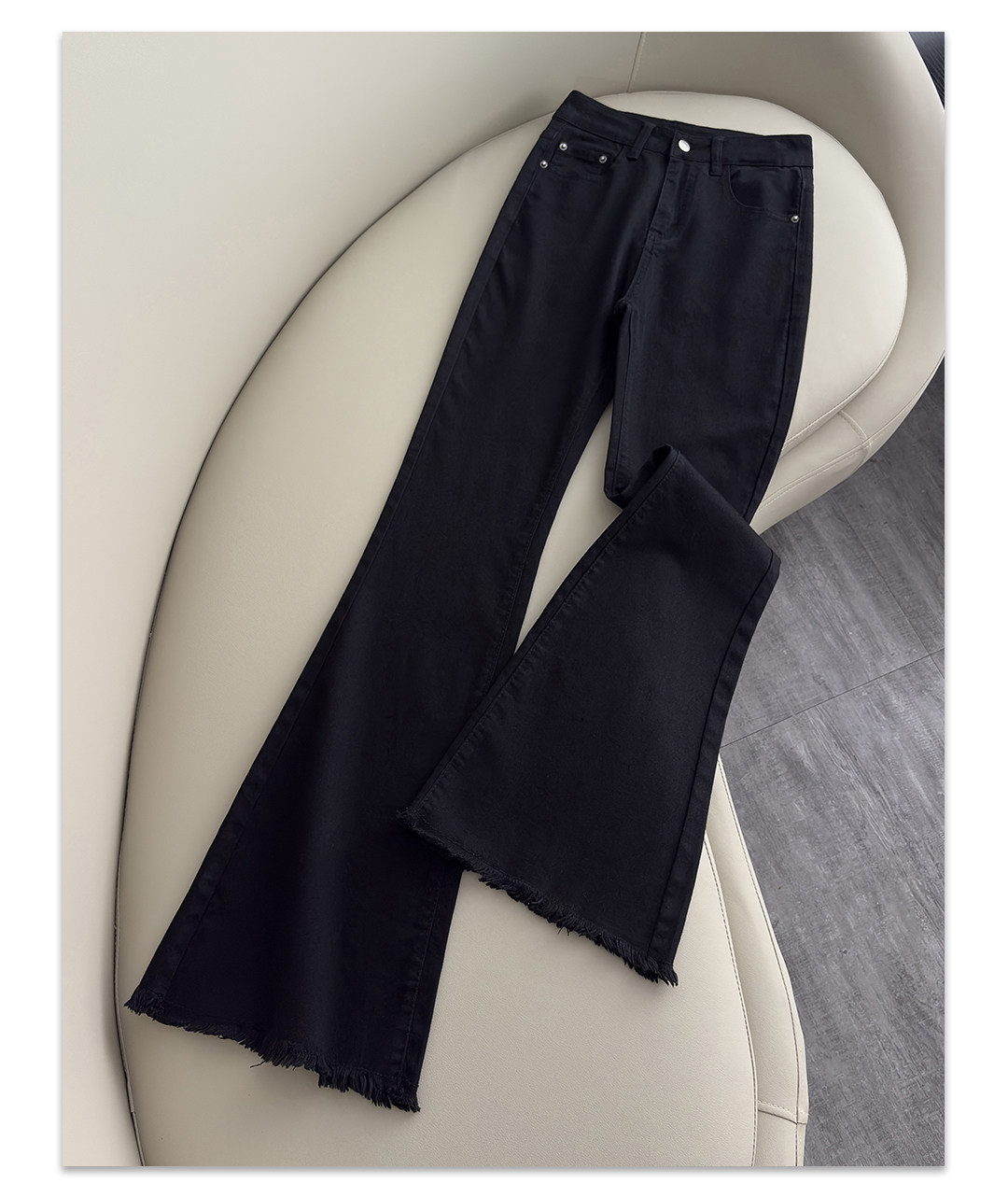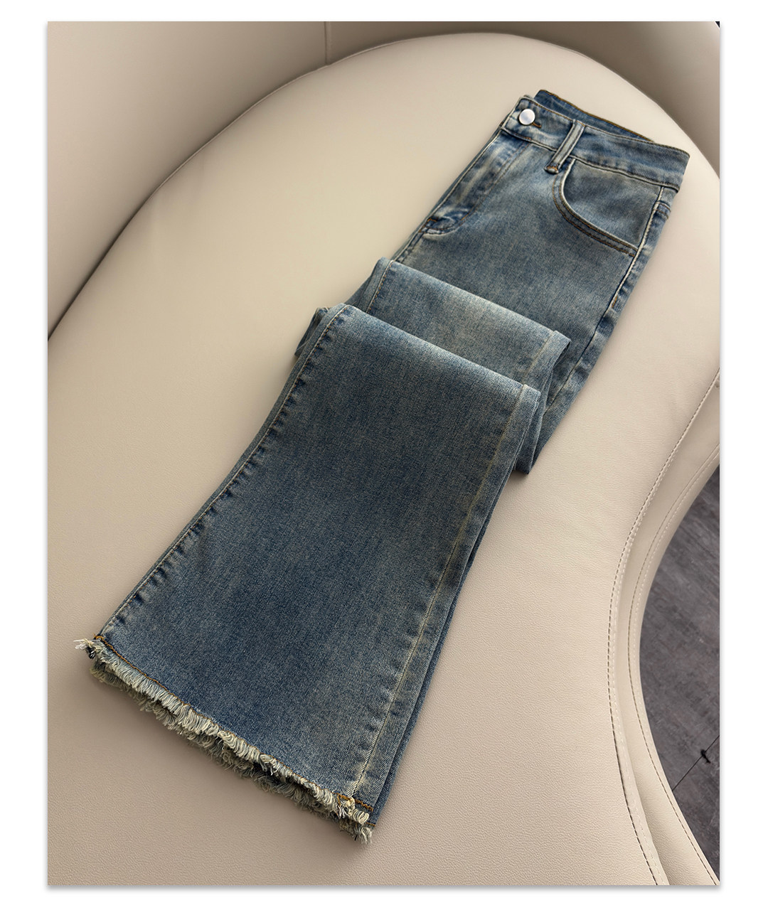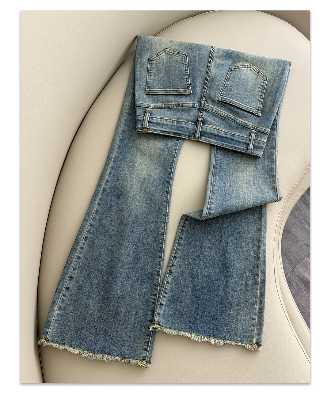 La Chapelle Nostalgic Blue Frayed Hem Flared Jeans for Women 2026 Spring and Autumn New High-Waisted Slimming Stretch Bell-Bottom Pants