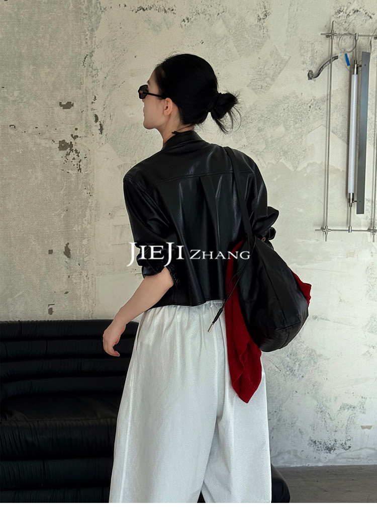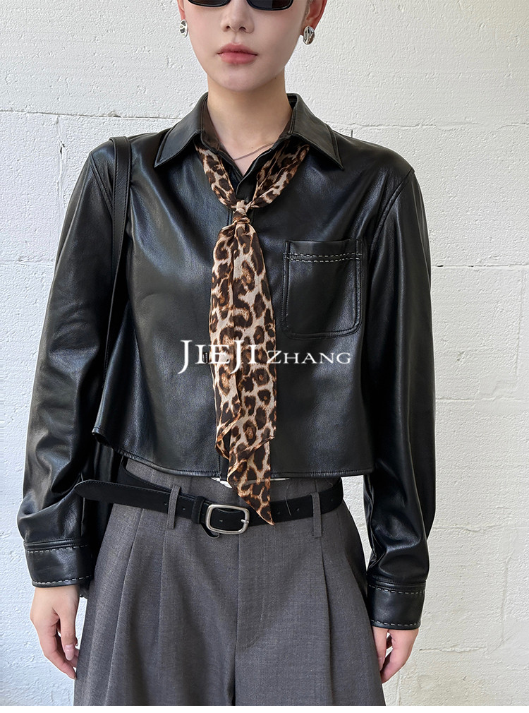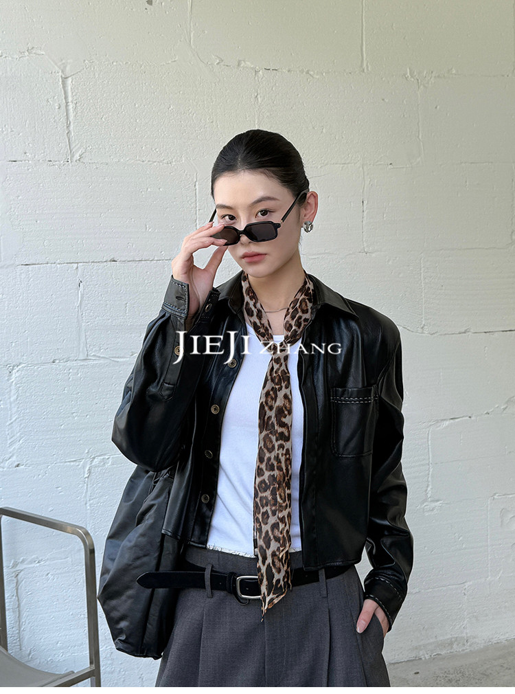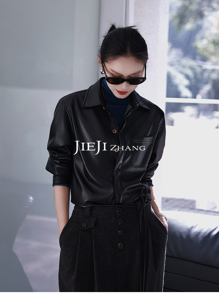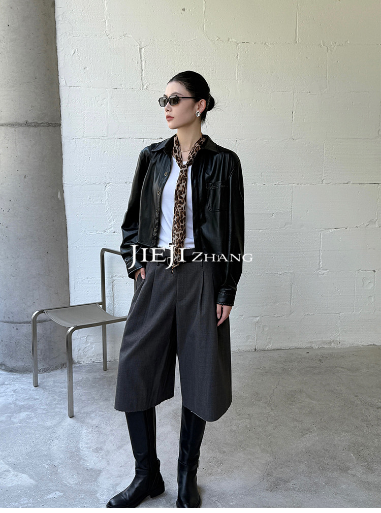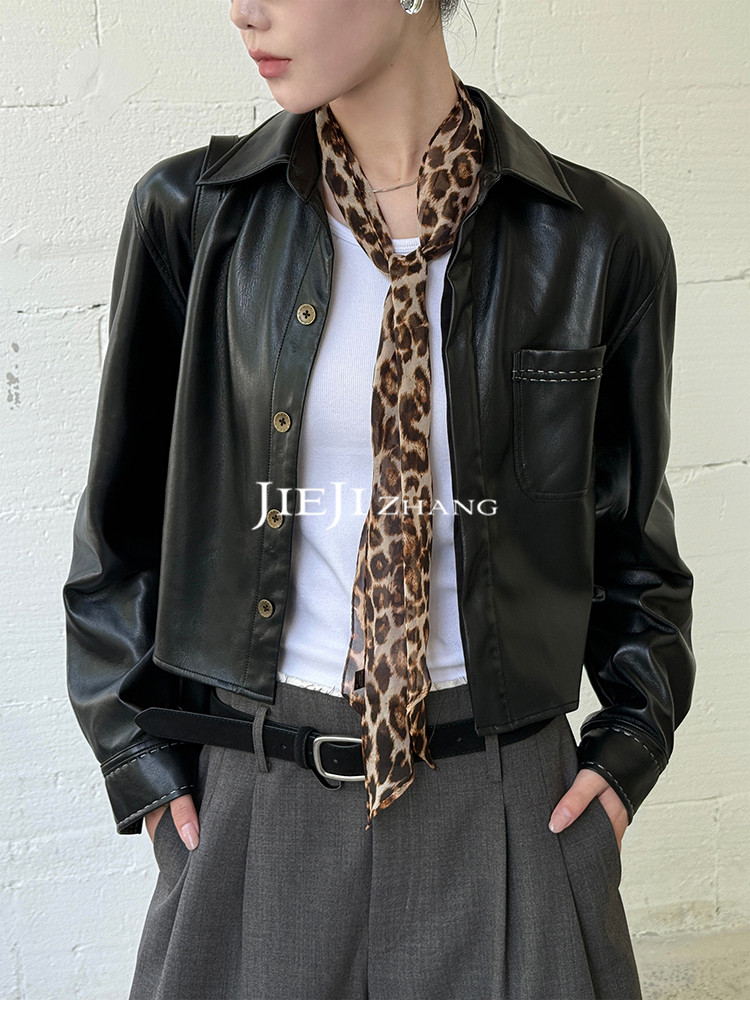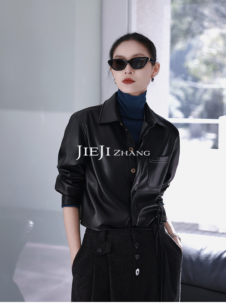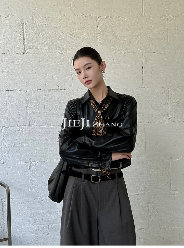 Zhang Qi Jieji Autumn Vintage Motorcycle Jacket Leather Short Coat Slim Fit Leather Shirt Top 350174