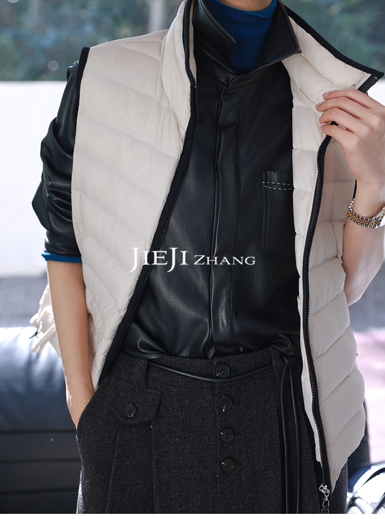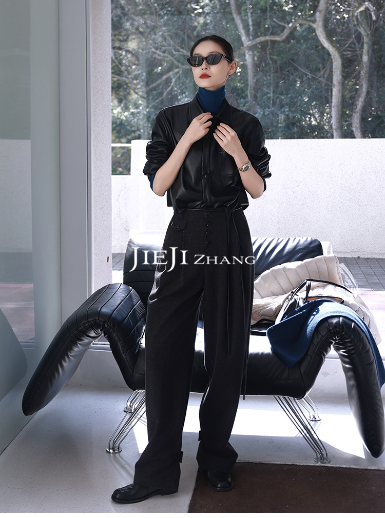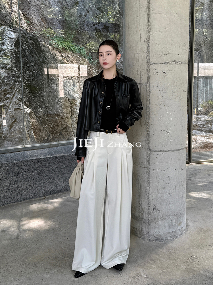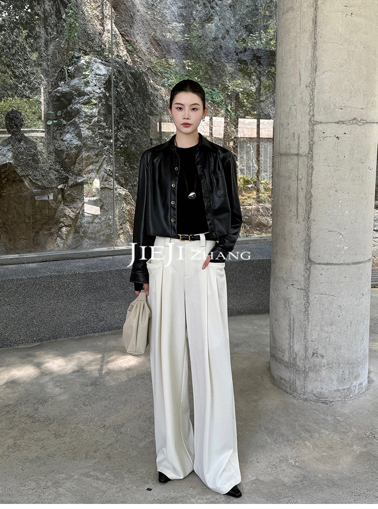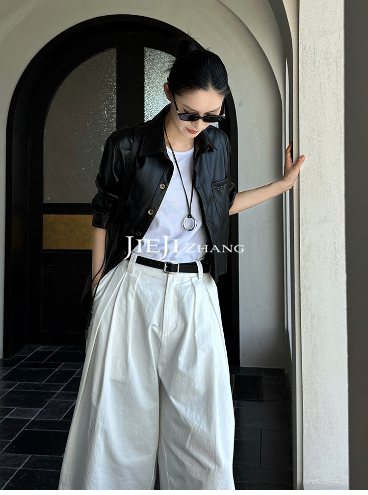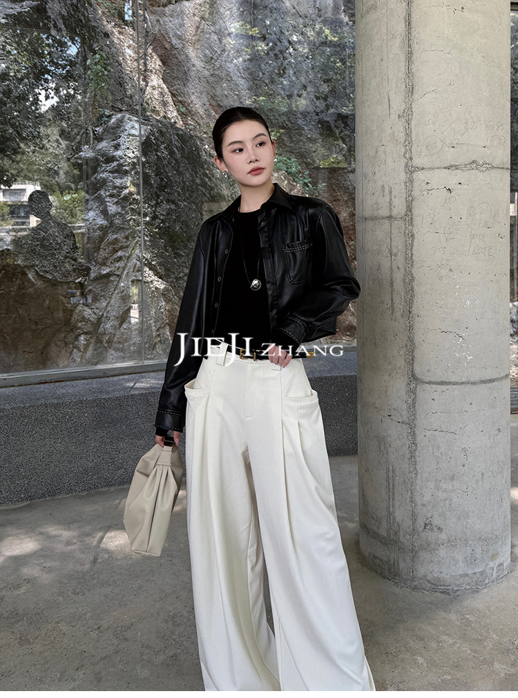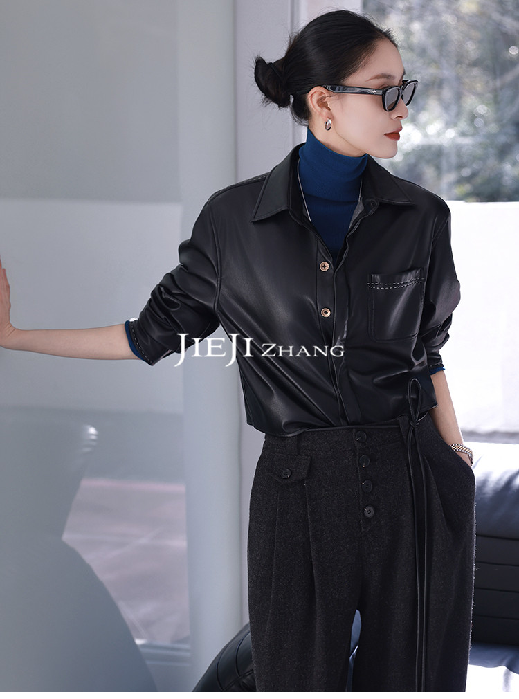 Zhang Qi Jieji Autumn Vintage Motorcycle Jacket Leather Short Coat Slim Fit Leather Shirt Top 350174