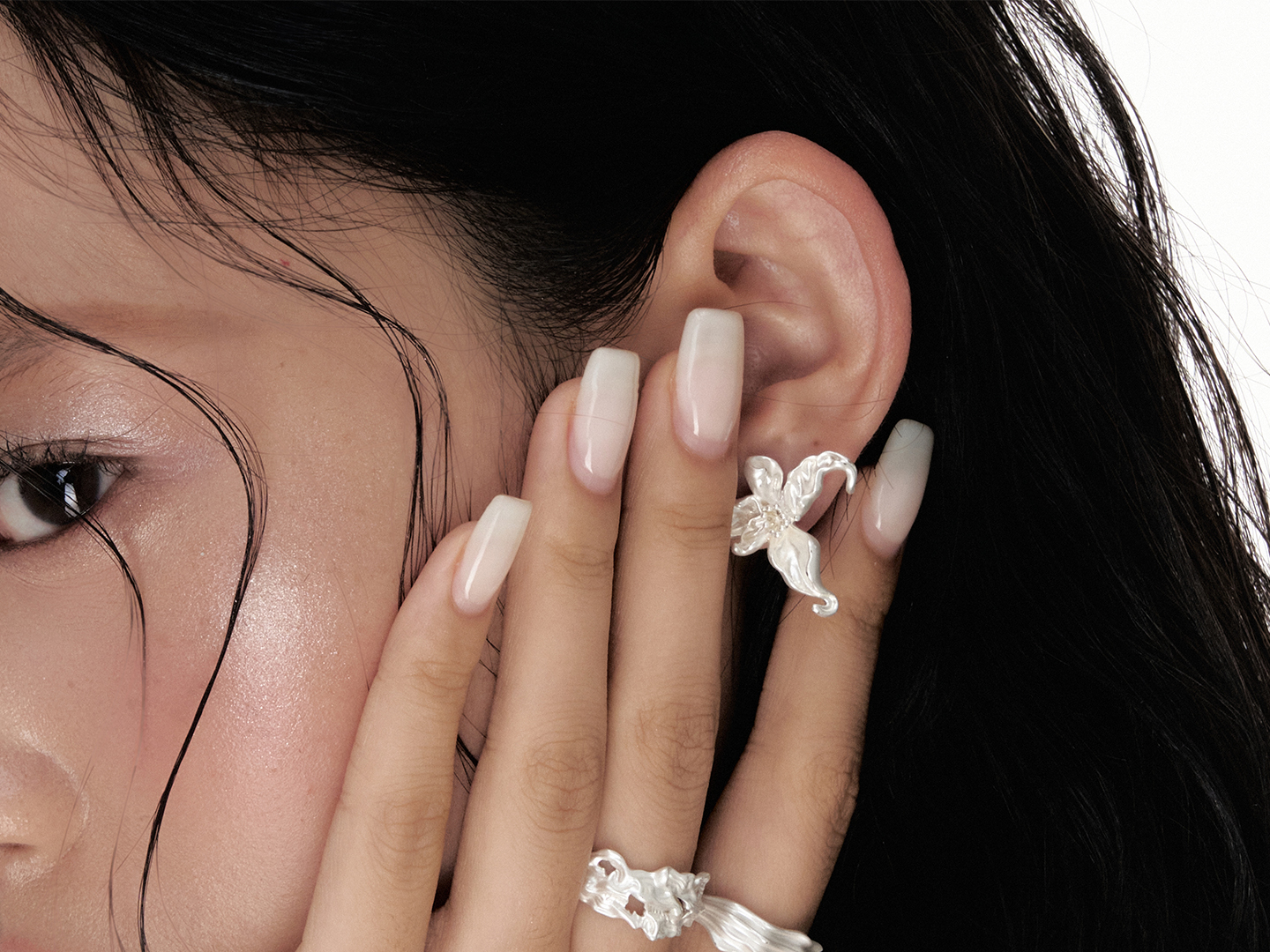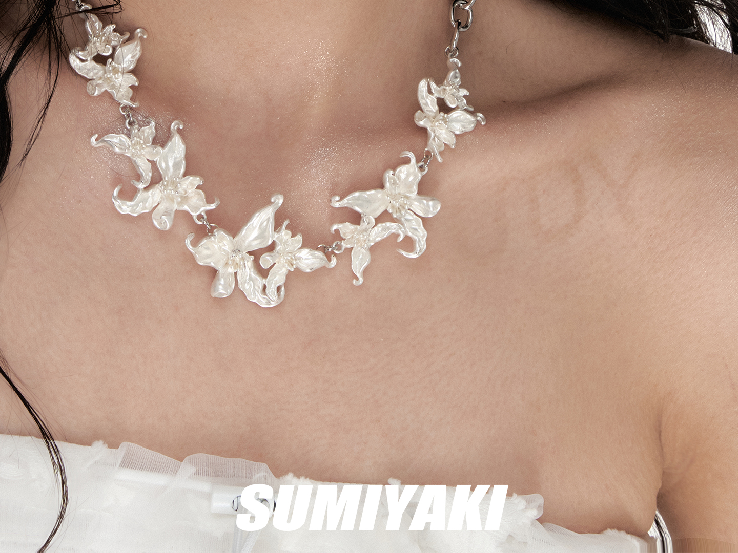 Sumiyaki Pale Whisper Series Pure White Iris Flower Earrings Niche Design Light Luxury High-End Earrings for Women