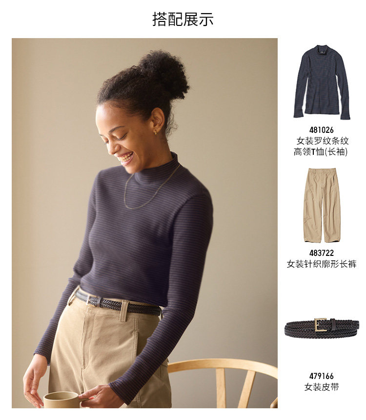 Priority Express Uniqlo Women's Ribbed Striped High-Neck T-Shirt/Long-Sleeve Mock Neck Base Layer 481026