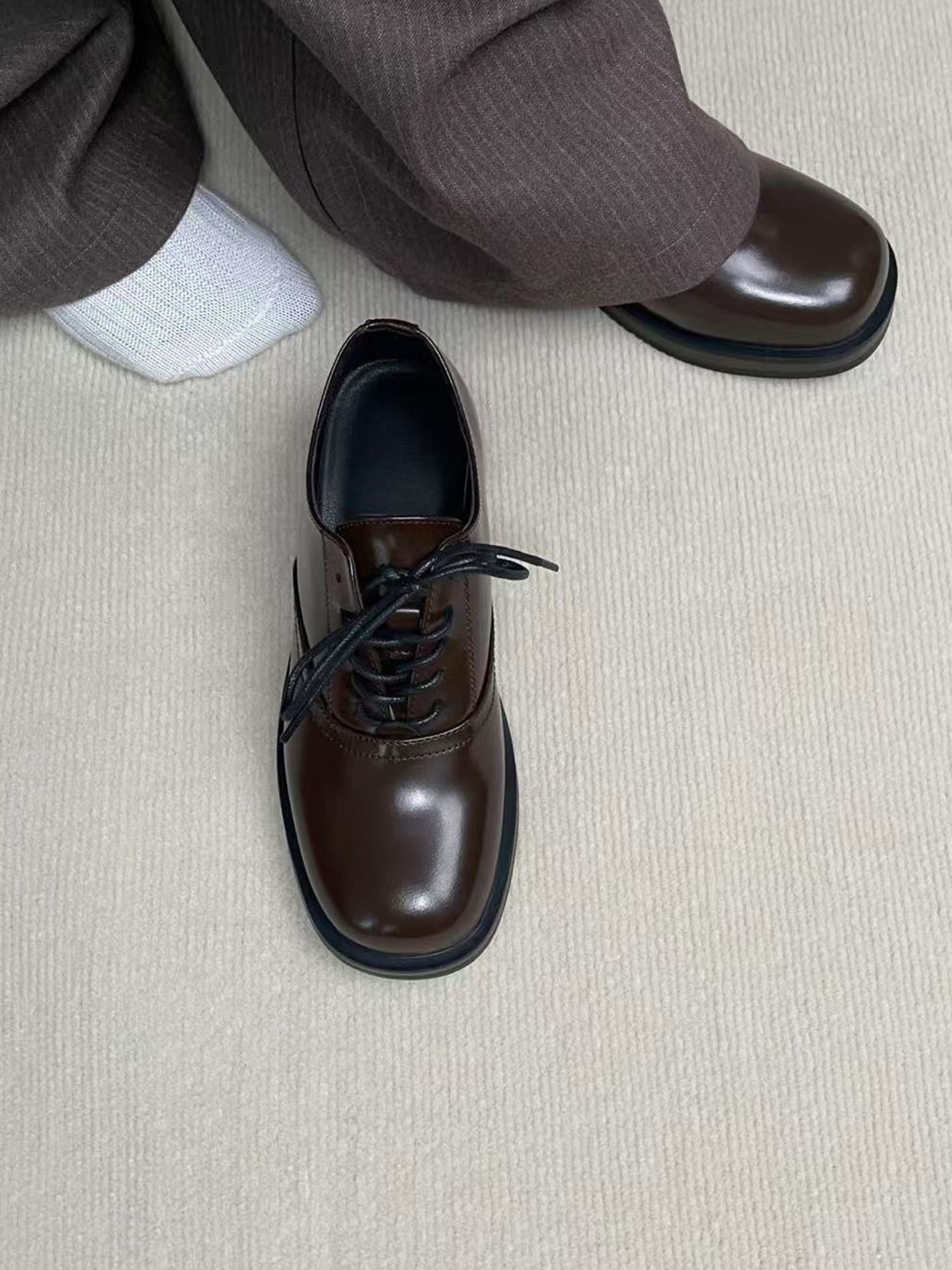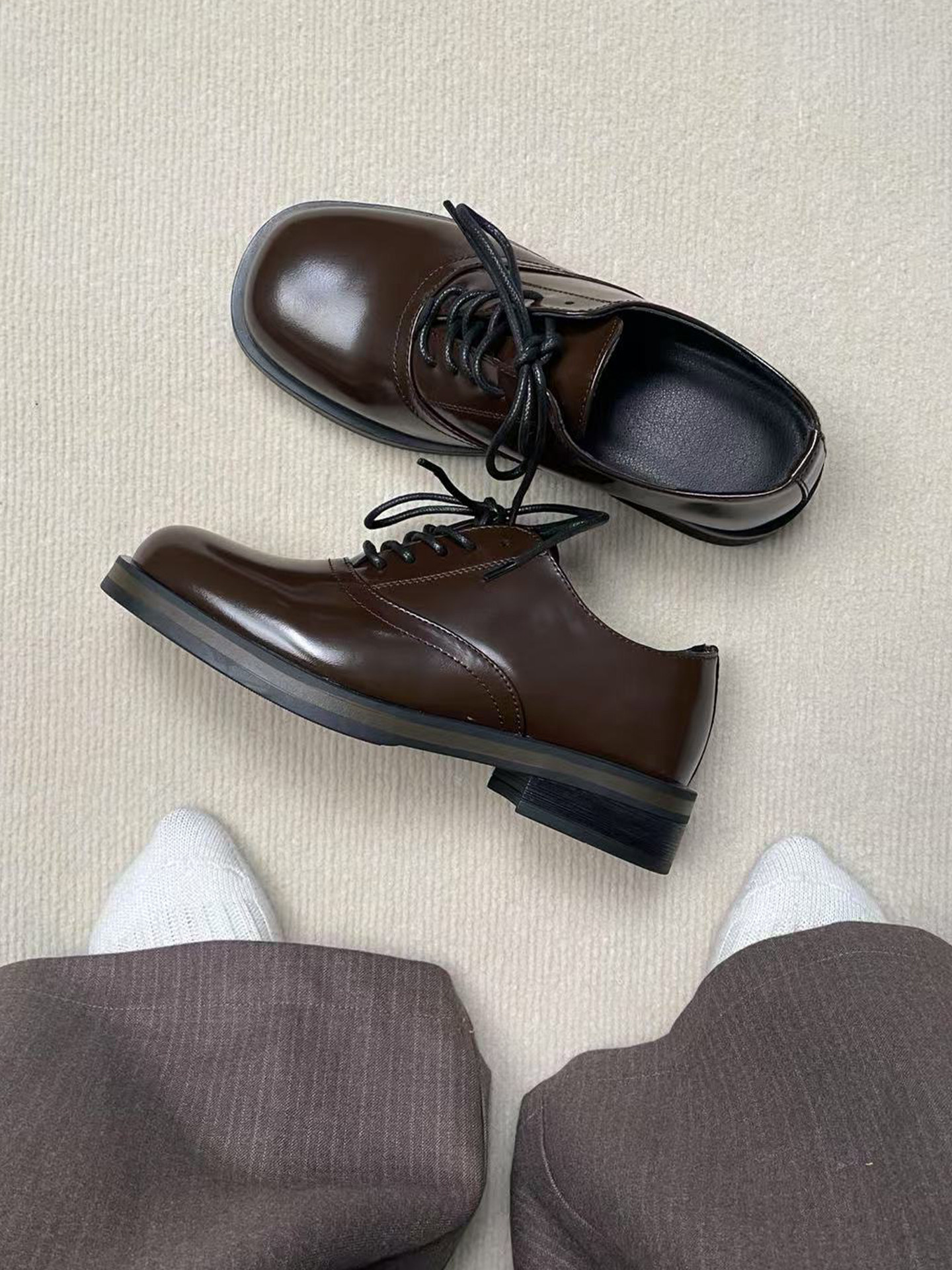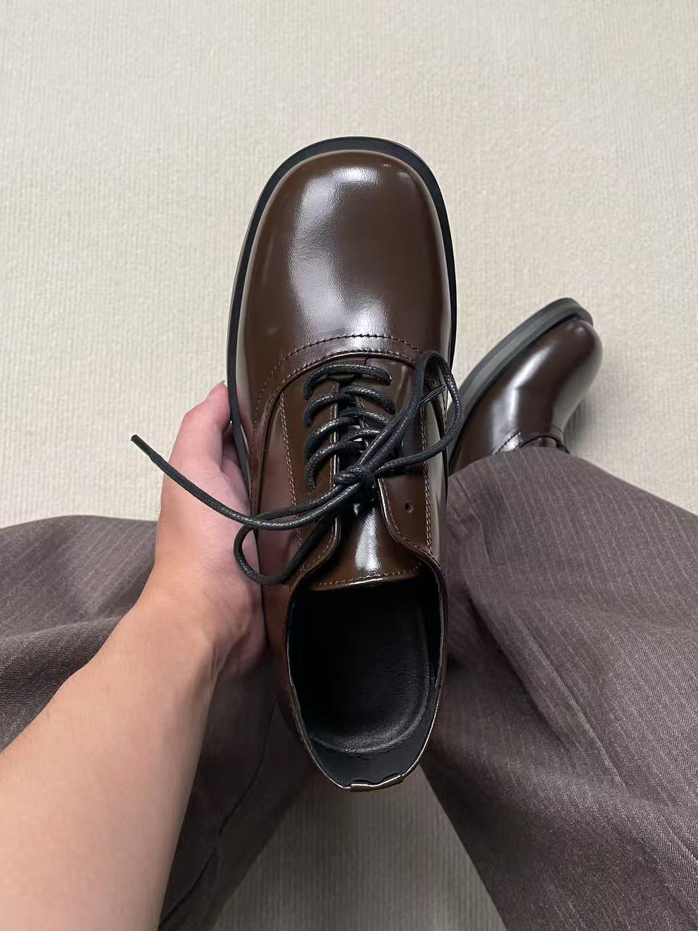 Derby Shoes, Brown, Unisex, British Style, Thick-Soled, Height-Increasing, Casual Square-Toe Cleanfit Business Formal Leather Shoes