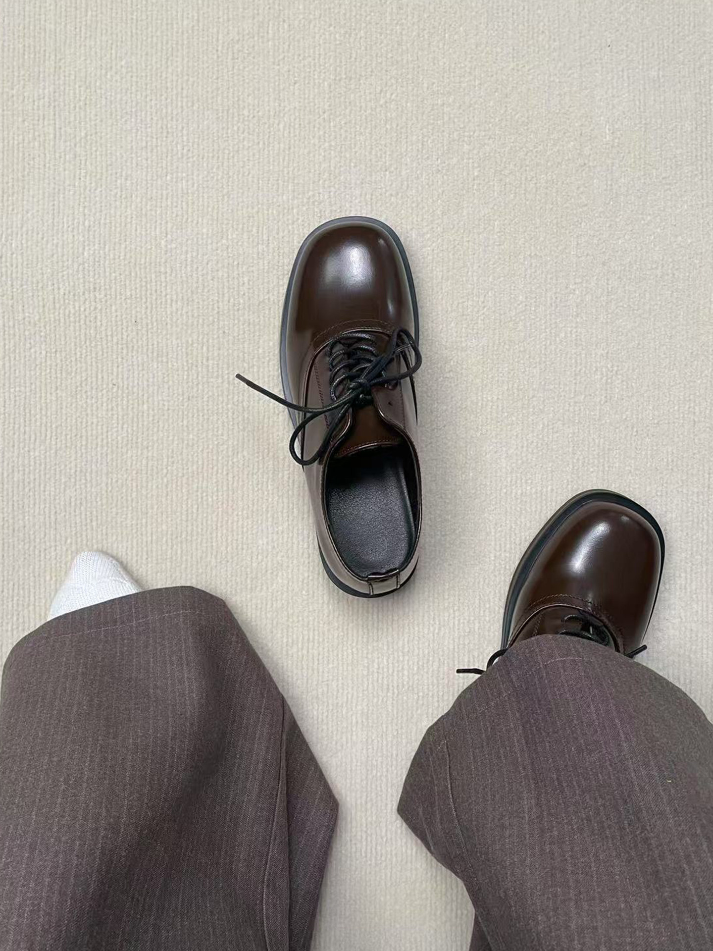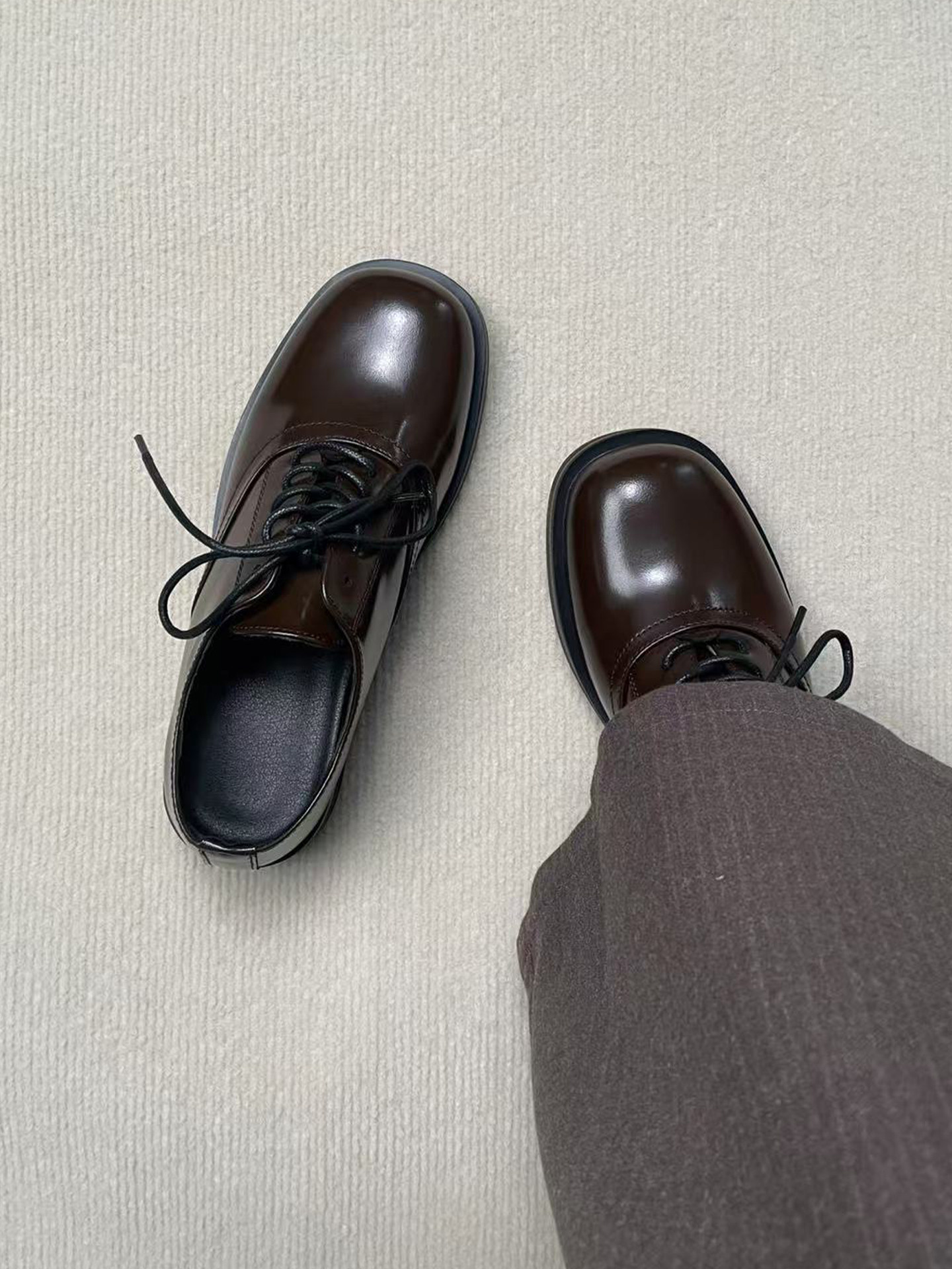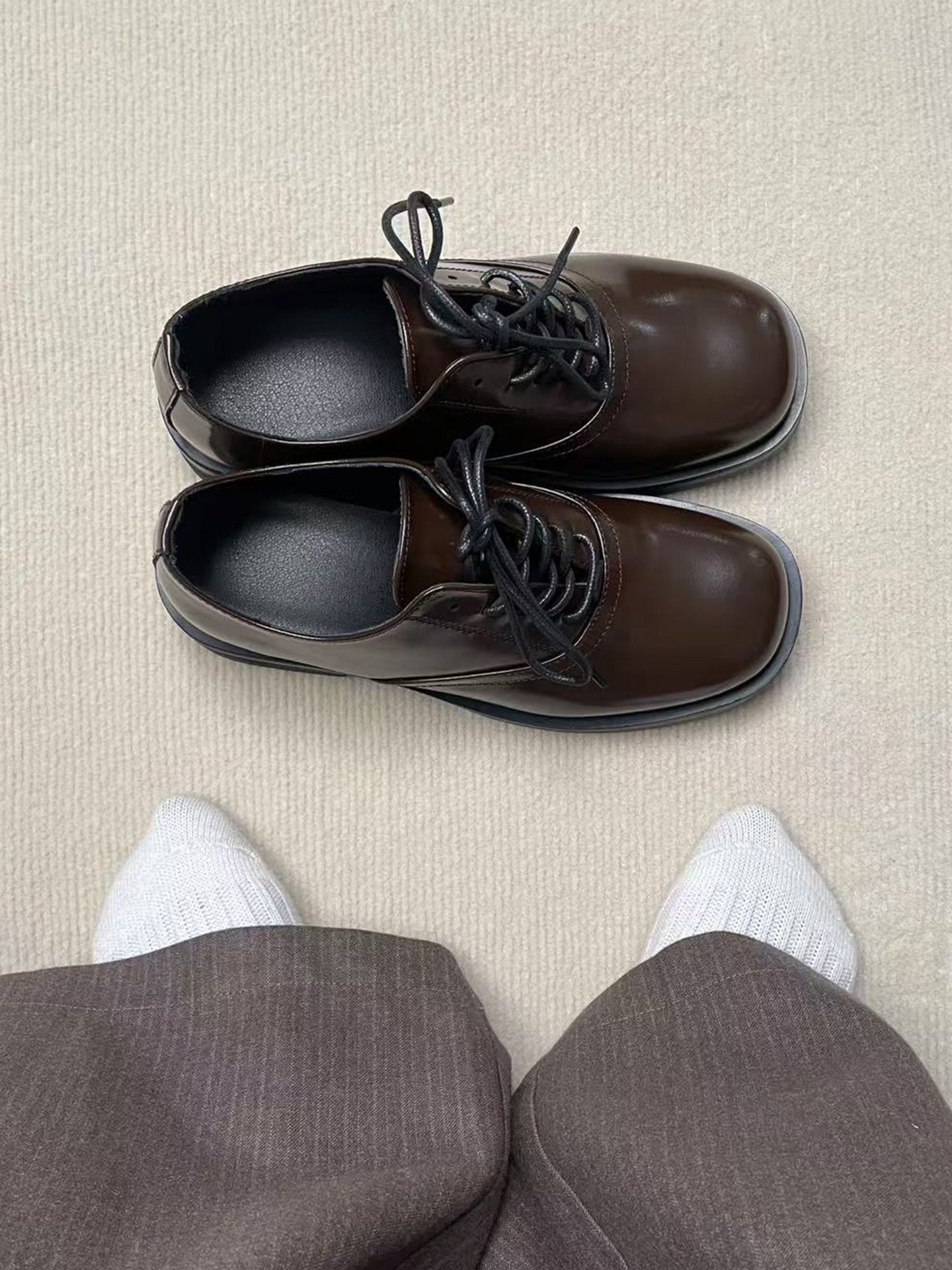 Derby Shoes, Brown, Unisex, British Style, Thick-Soled, Height-Increasing, Casual Square-Toe Cleanfit Business Formal Leather Shoes