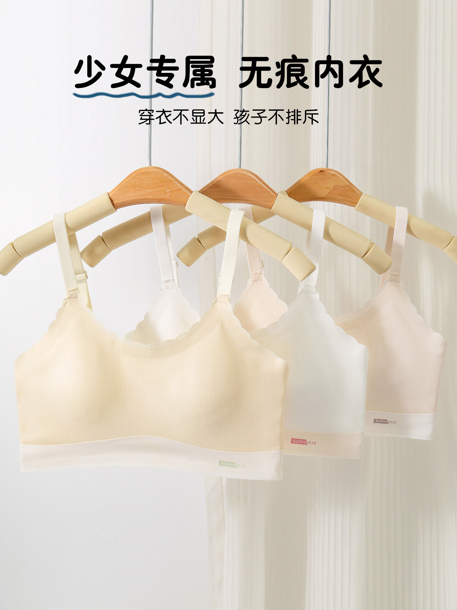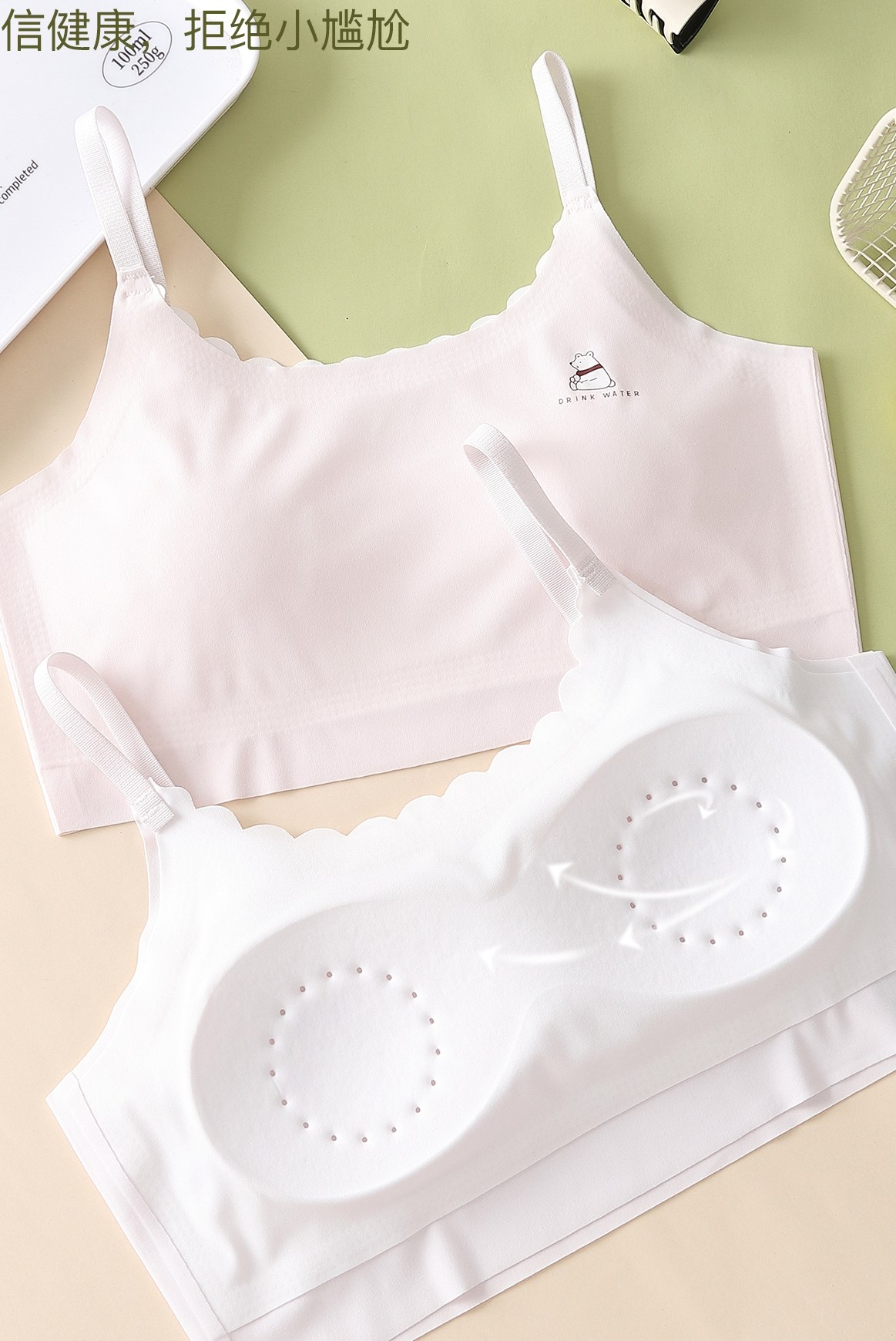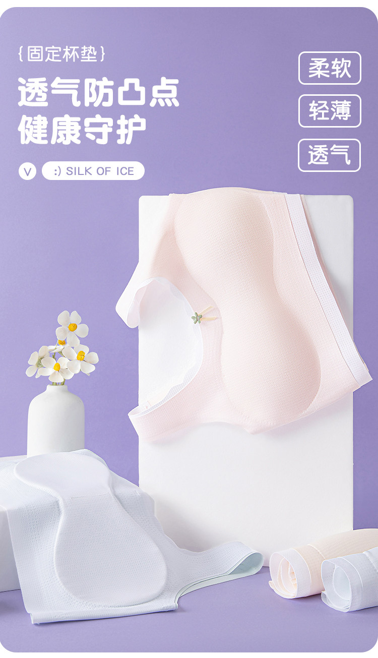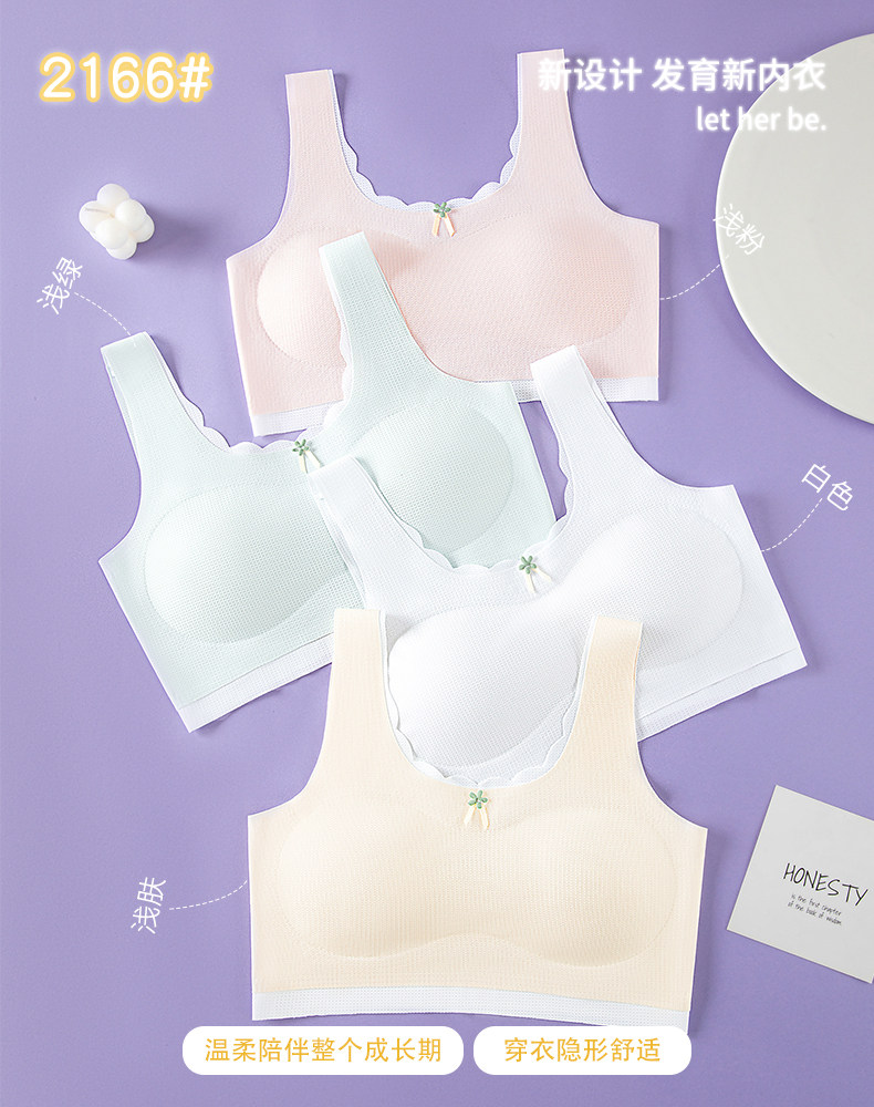 【Code 800-900】2-Pack of Girls' Developmental Stage Vests with Fixed Cups, Anti-Bump, Comfortable, Seamless for Summer