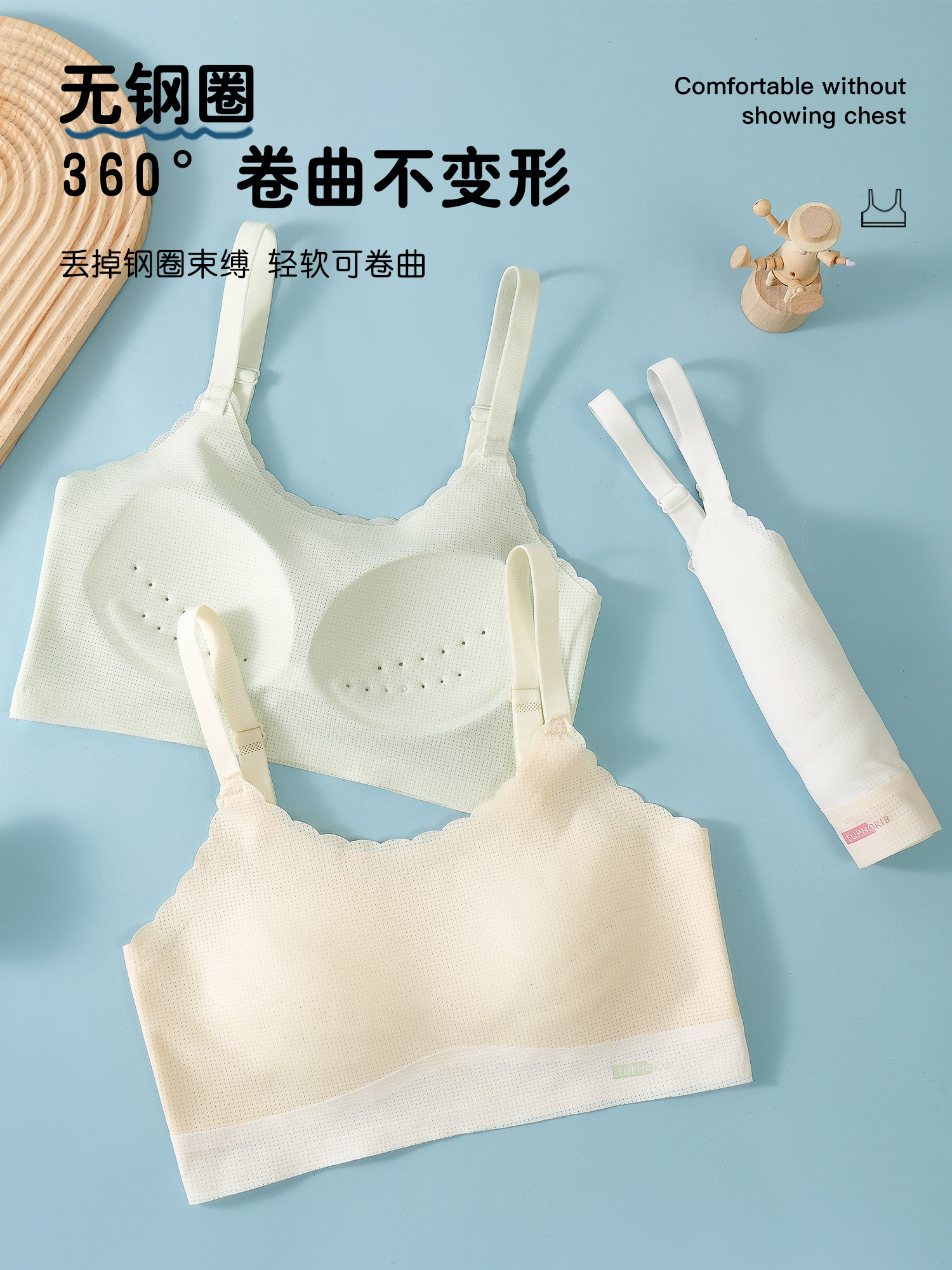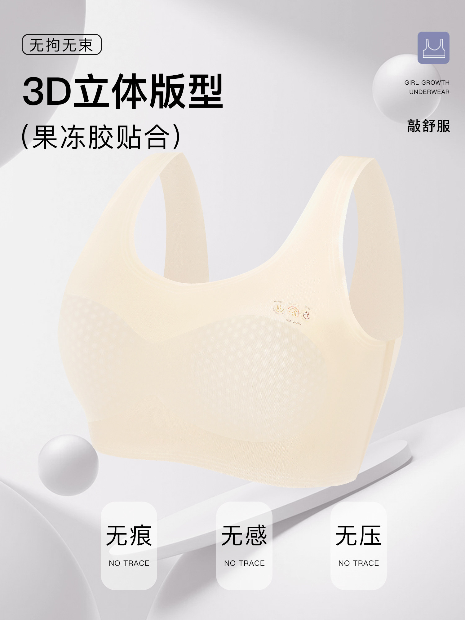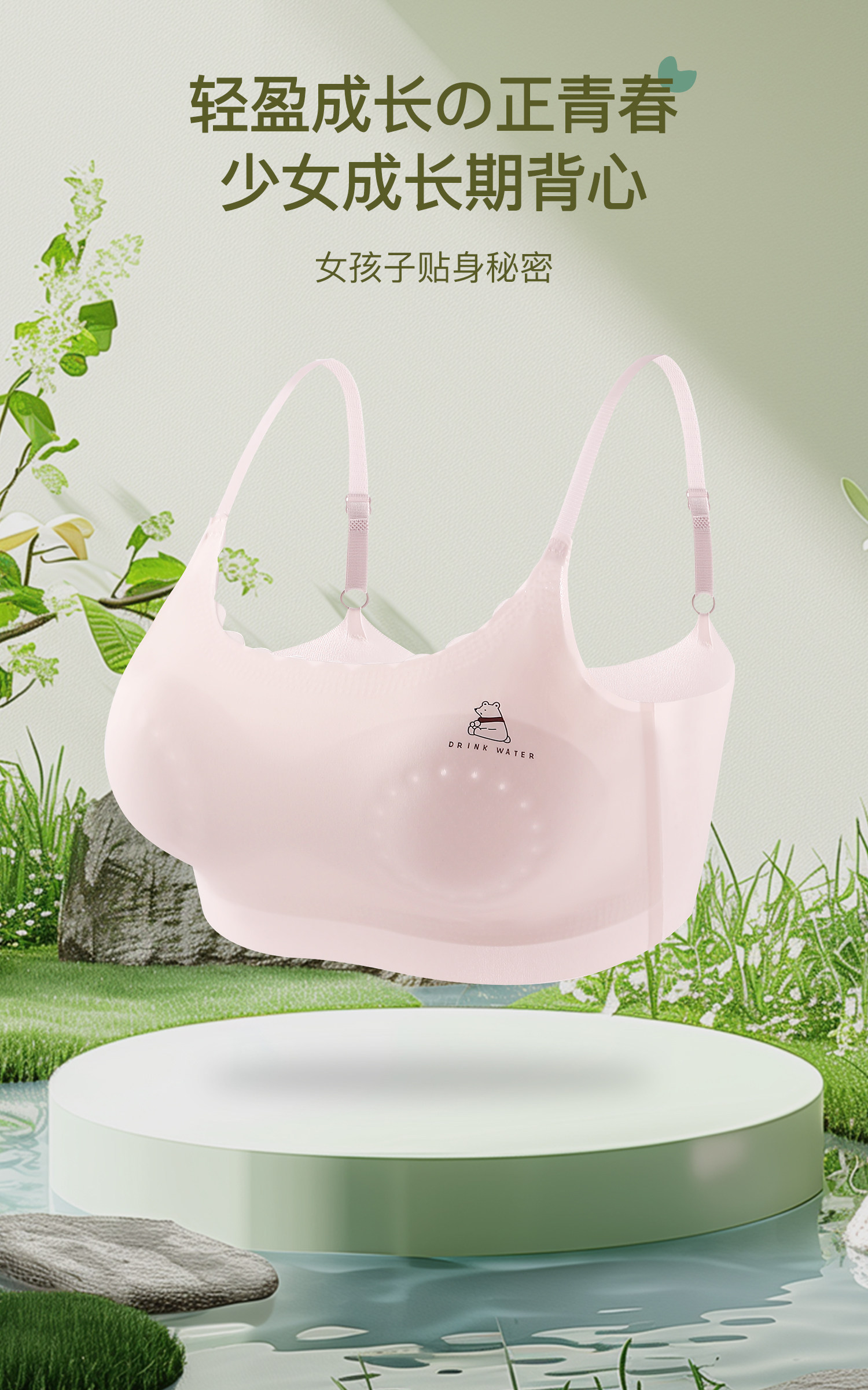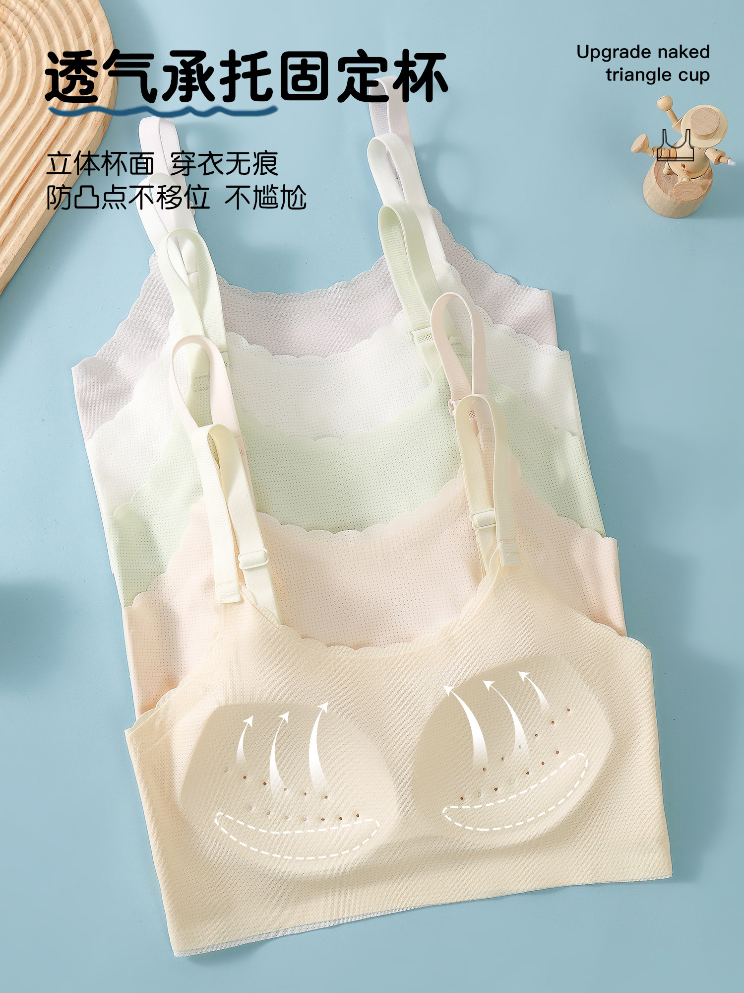 【Code 800-900】2-Pack of Girls' Developmental Stage Vests with Fixed Cups, Anti-Bump, Comfortable, Seamless for Summer