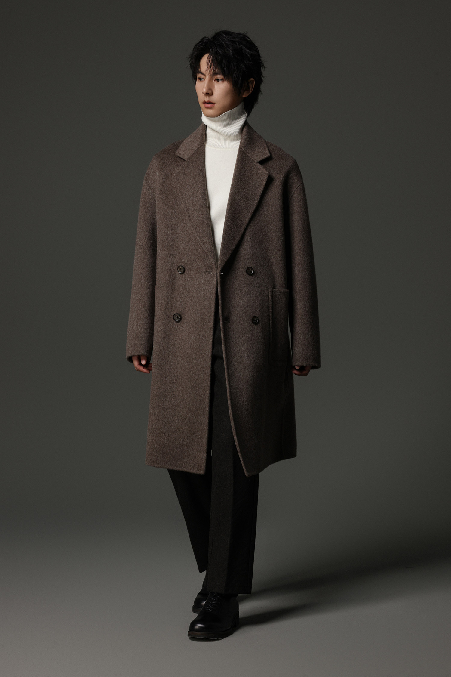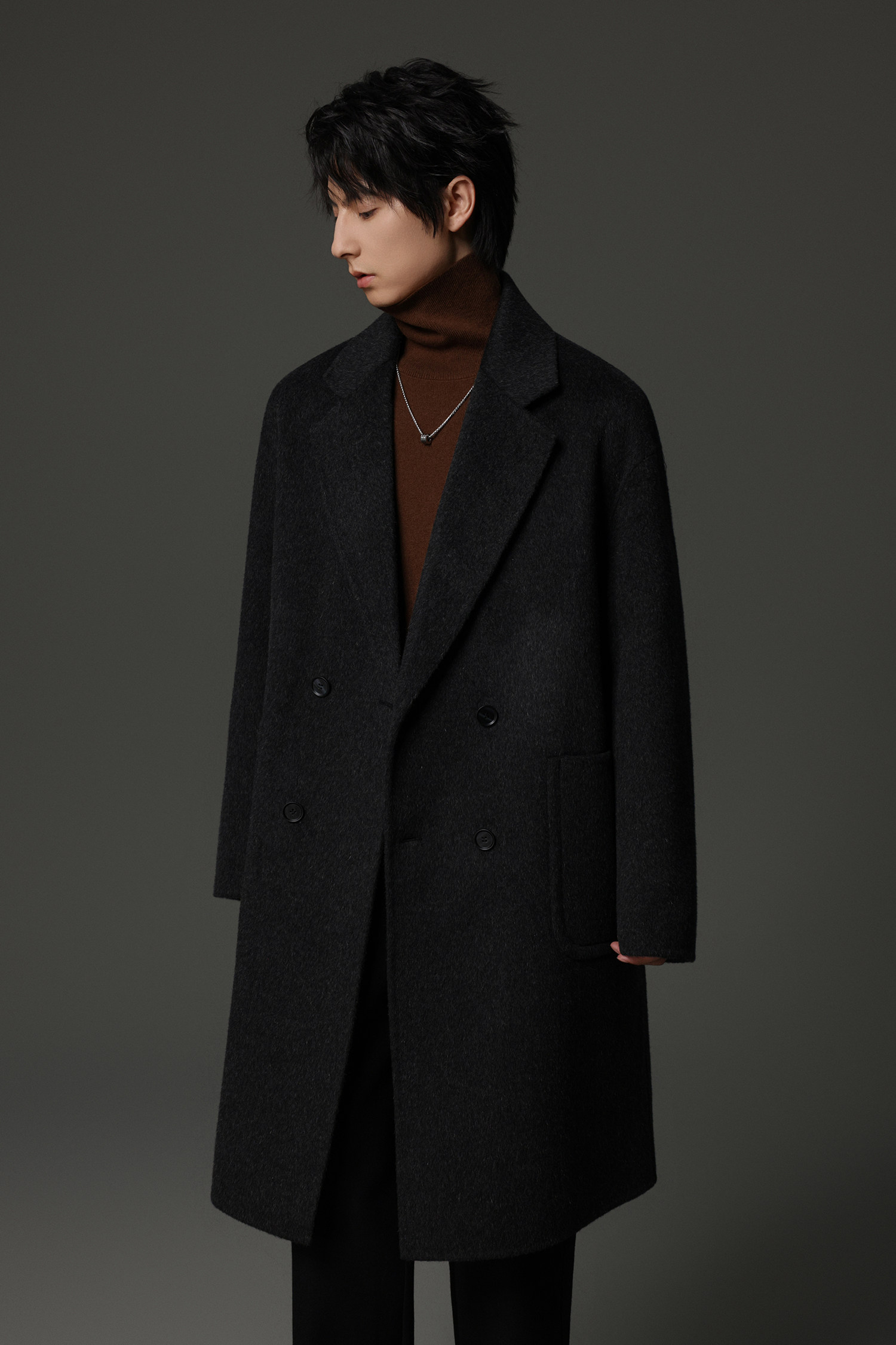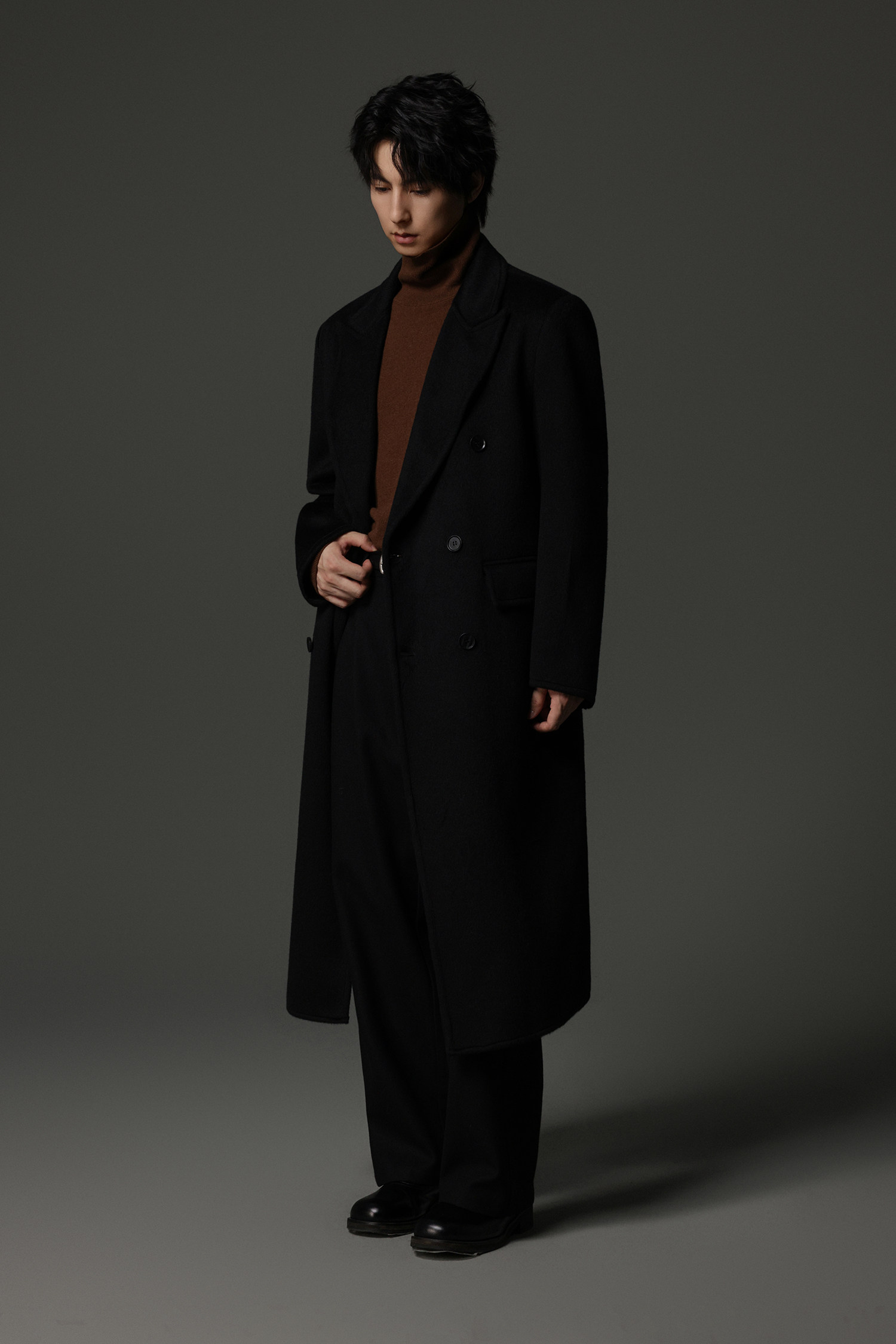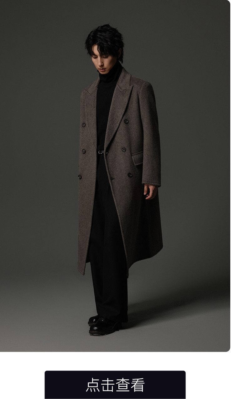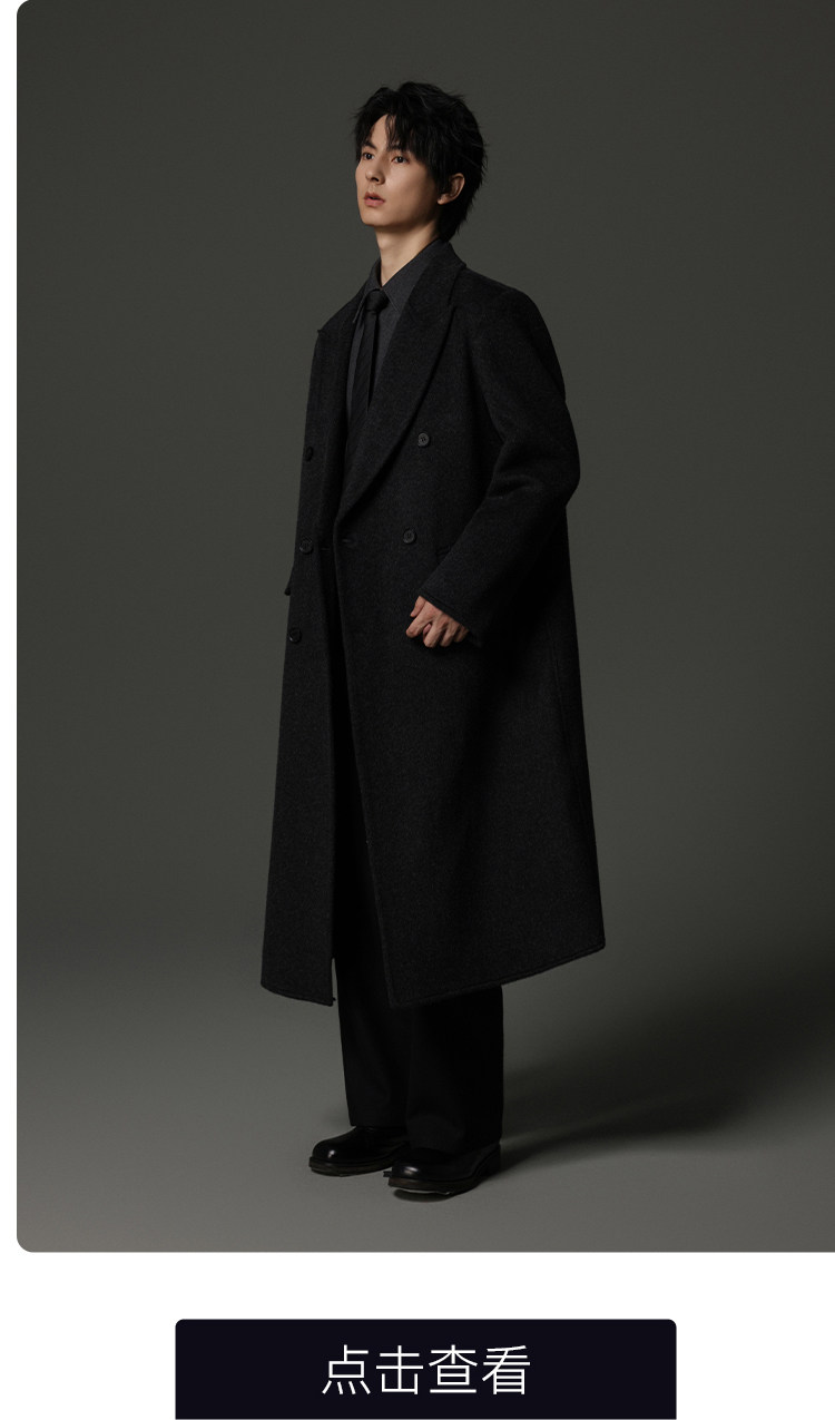 【Double-Sided Full Wool】Men's Over-The-Knee Woolen Coat with Padded Shoulders, Thickened Old Money Style Woolen Jacket