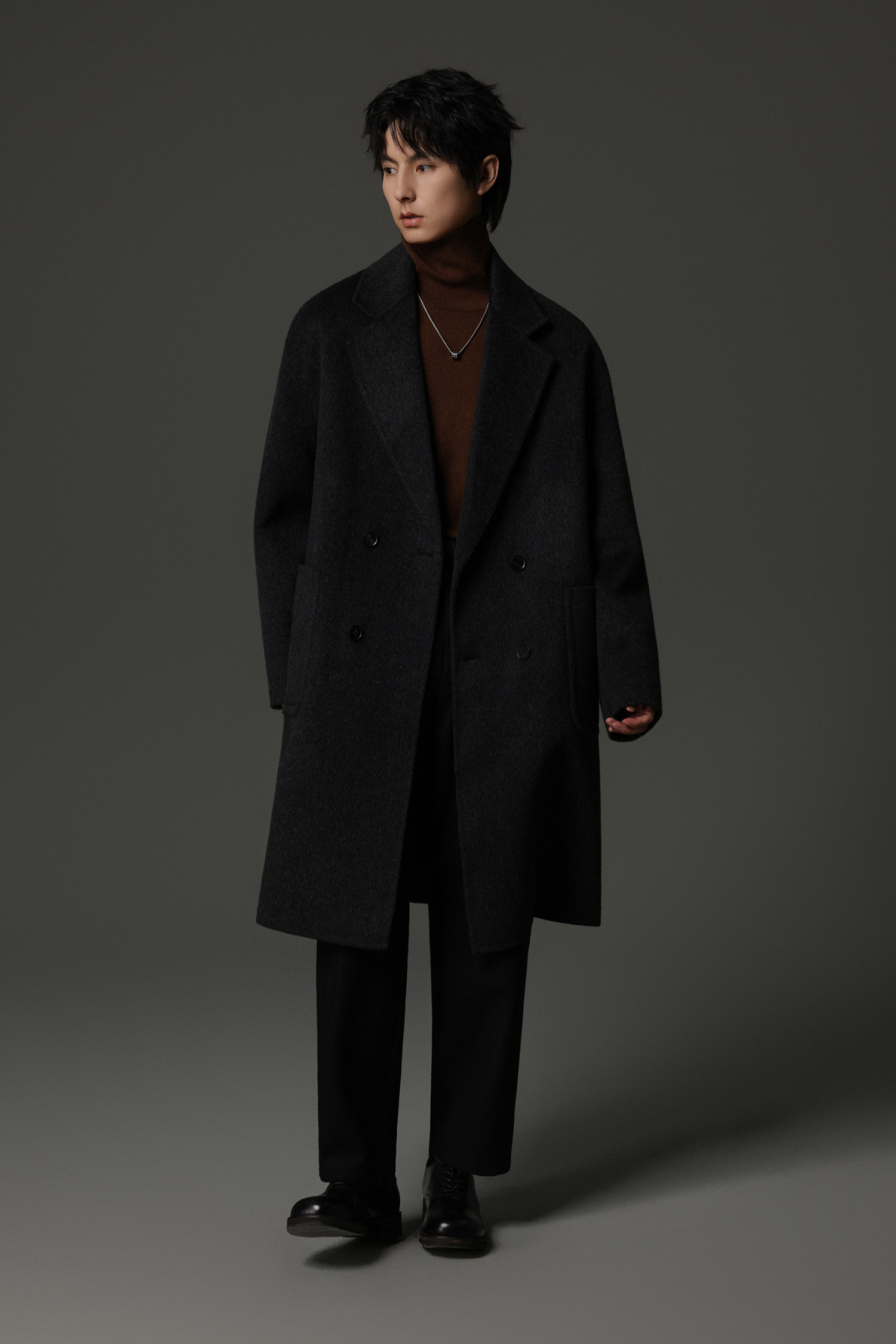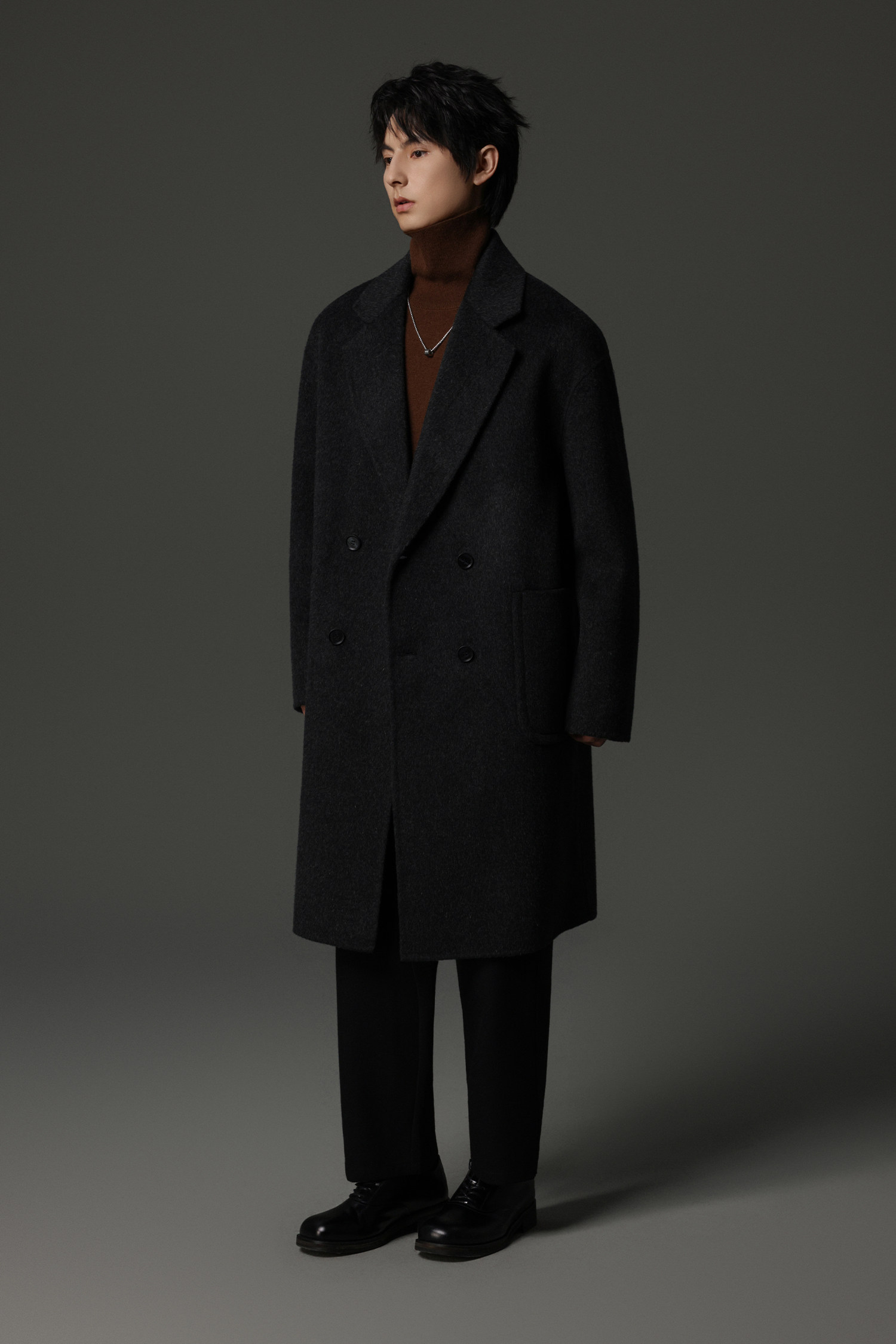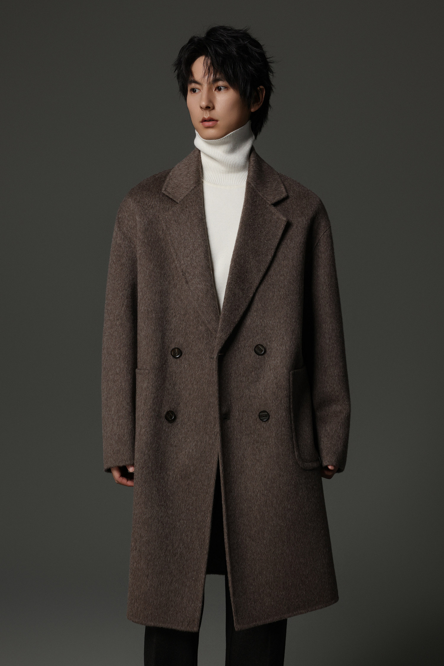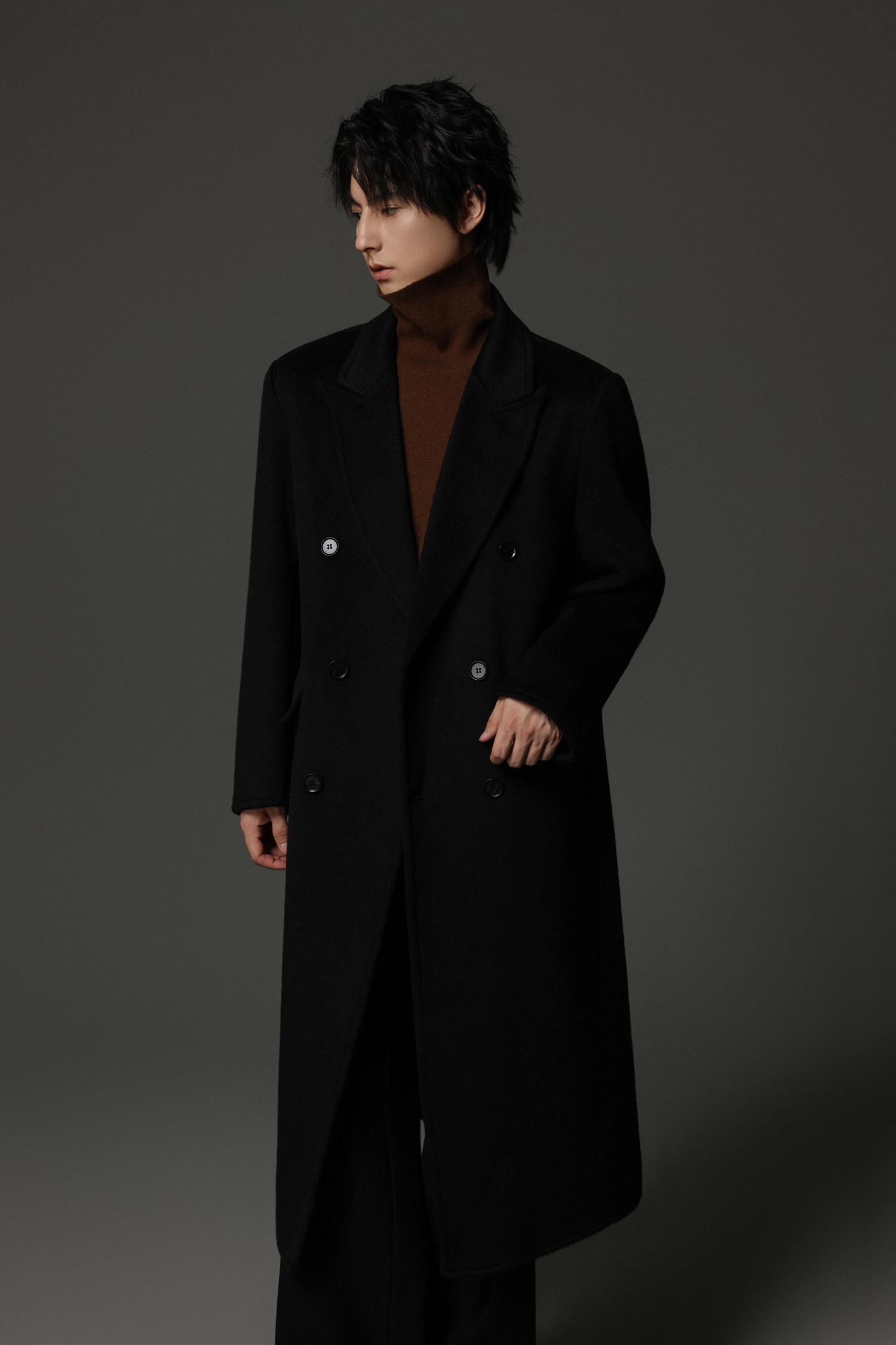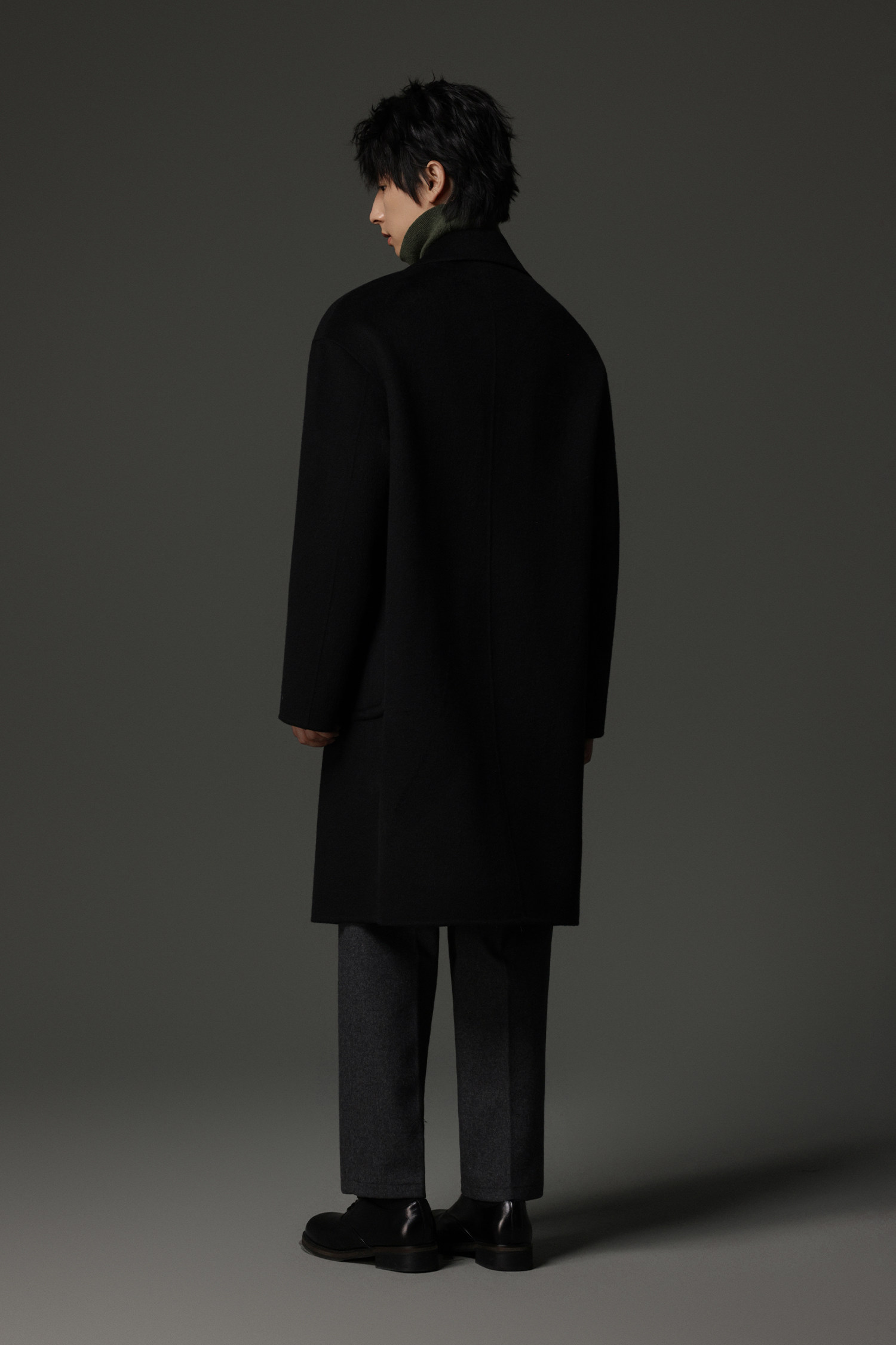 【Double-Sided Full Wool】Men's Over-The-Knee Woolen Coat with Padded Shoulders, Thickened Old Money Style Woolen Jacket
