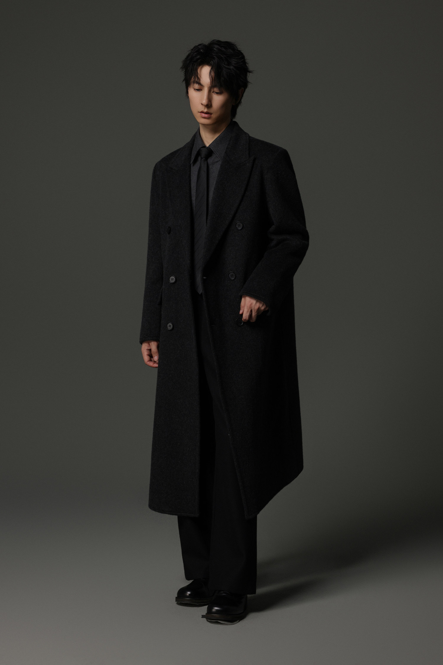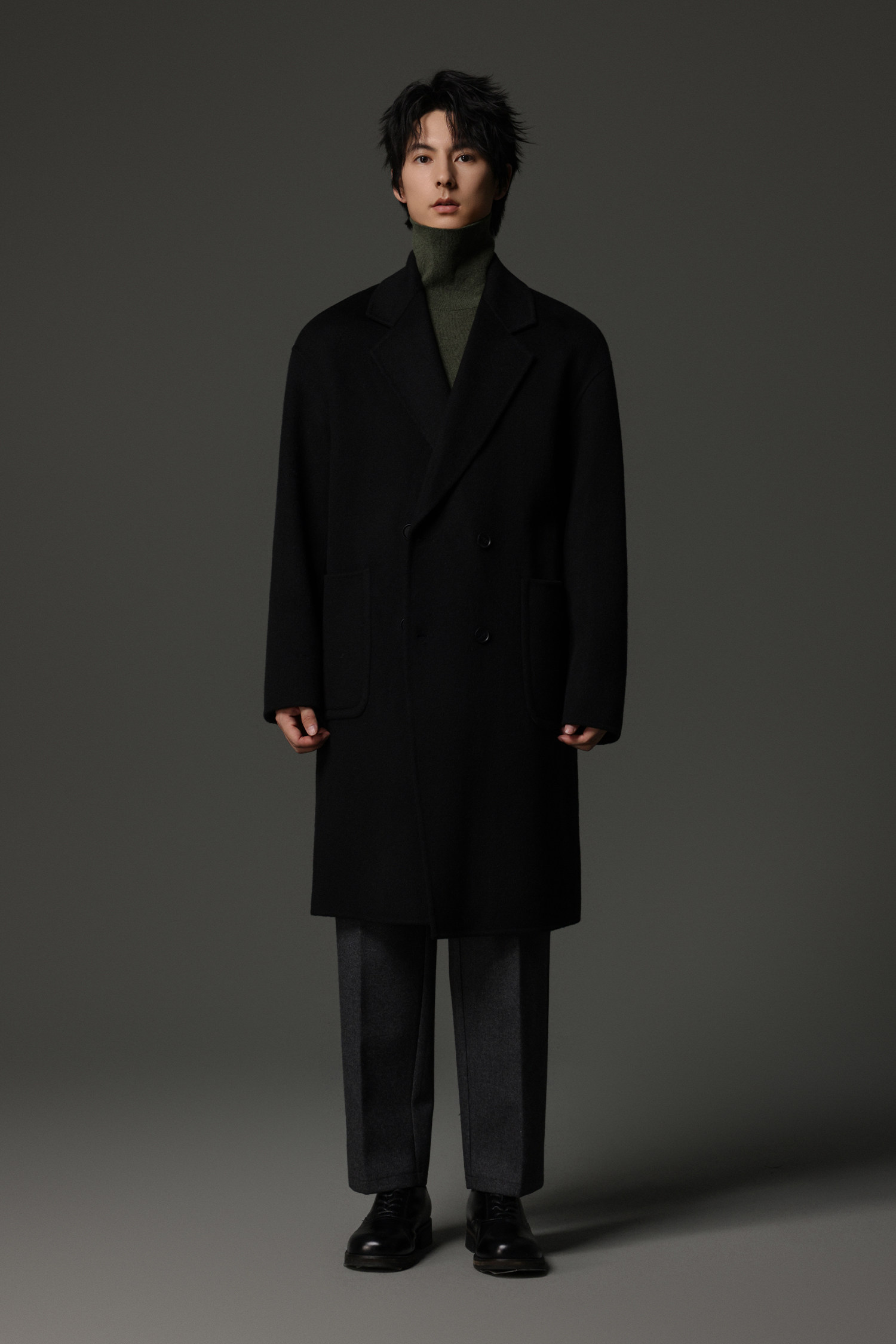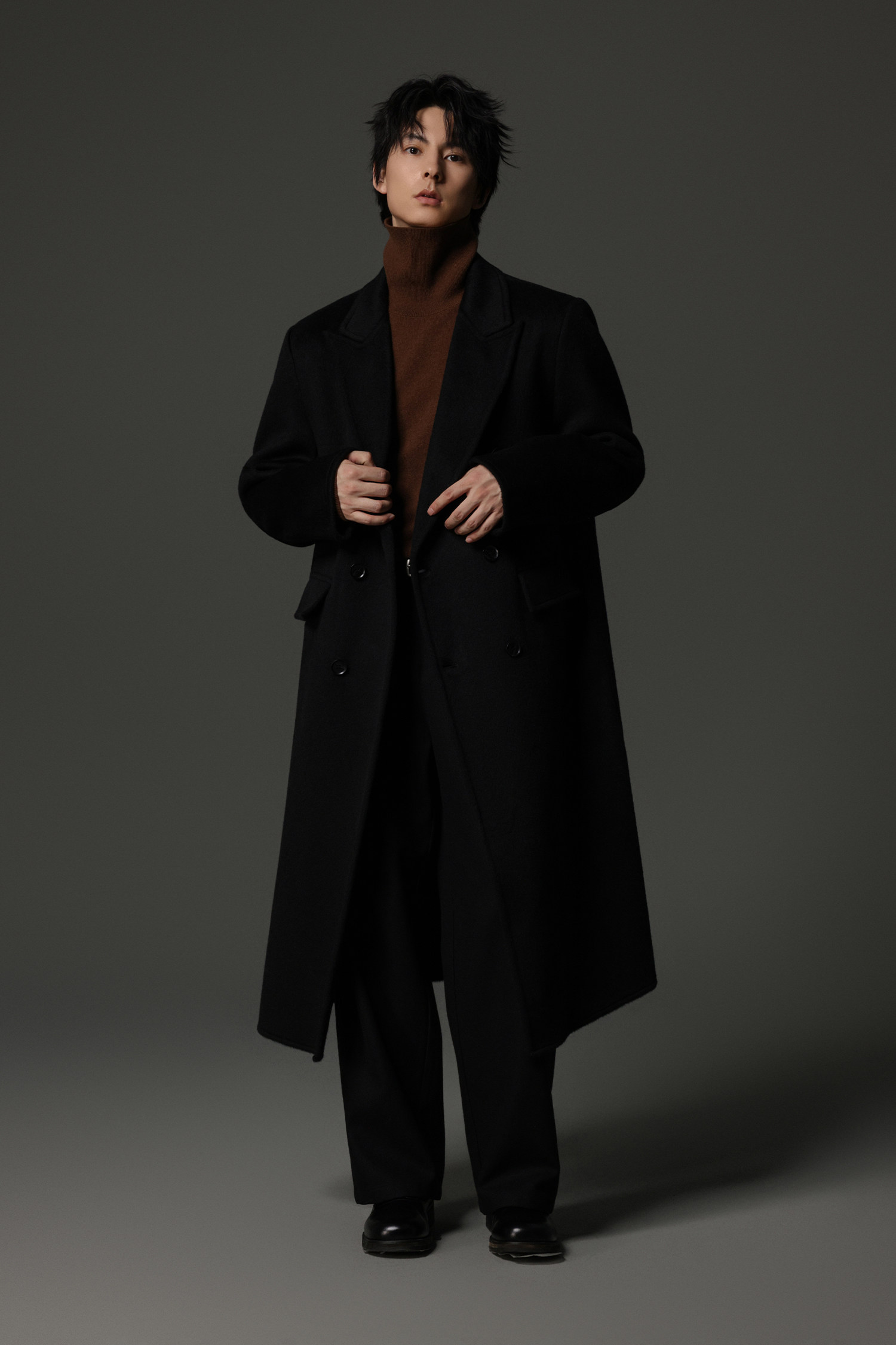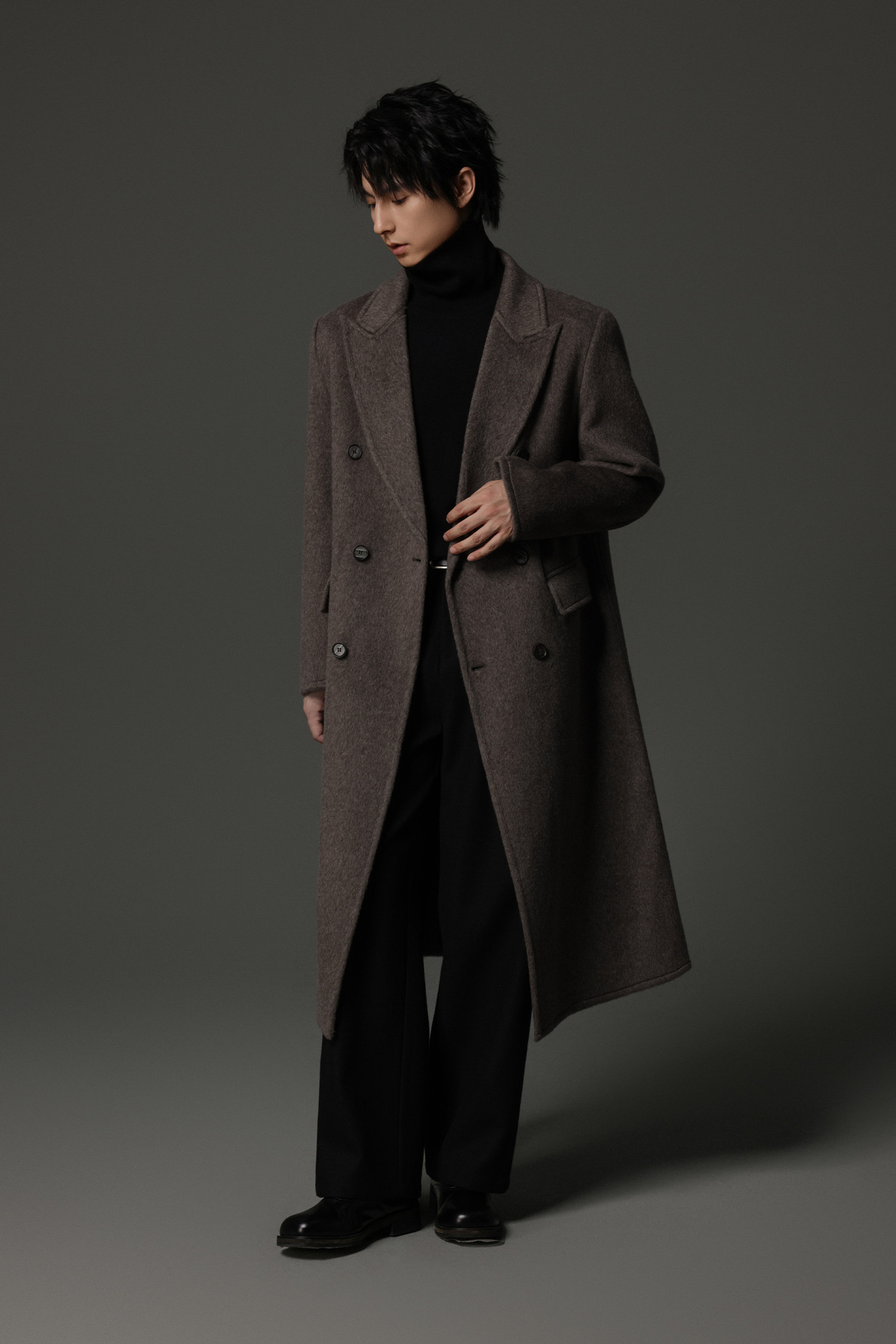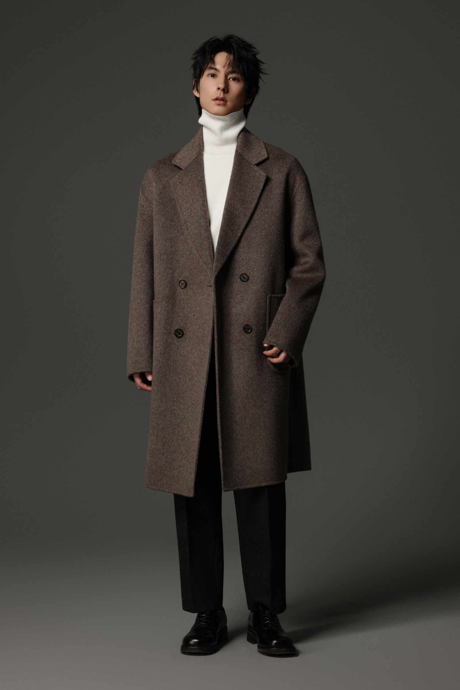 【Double-Sided Full Wool】Men's Over-The-Knee Woolen Coat with Padded Shoulders, Thickened Old Money Style Woolen Jacket