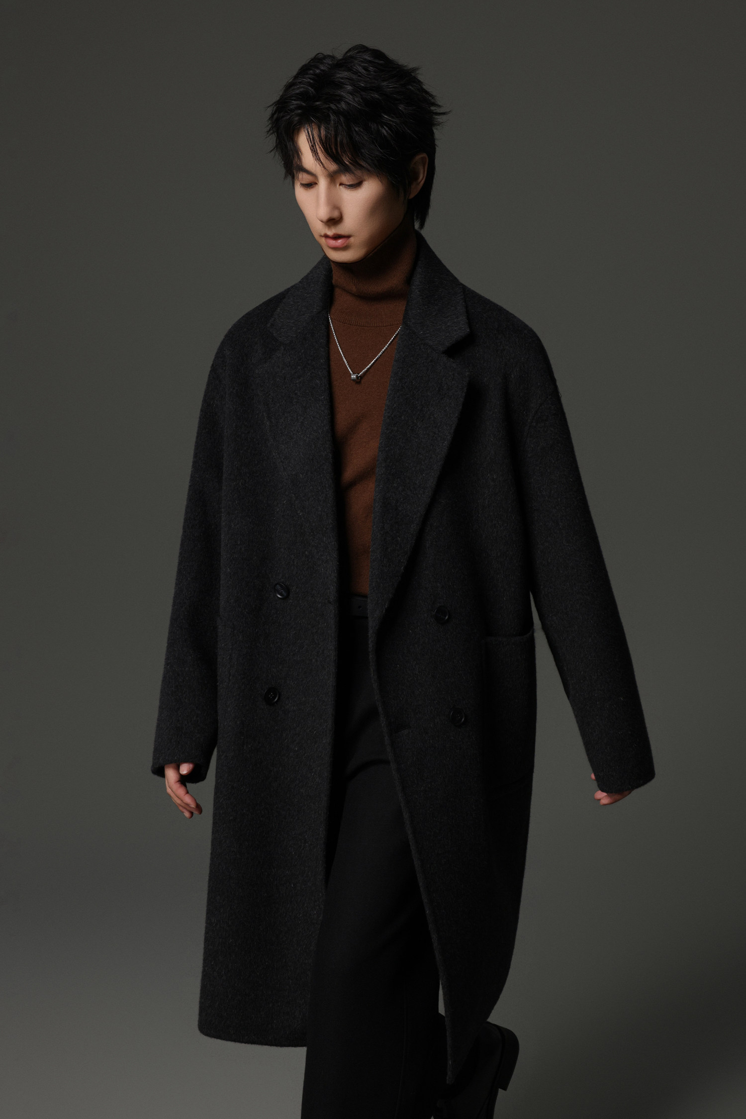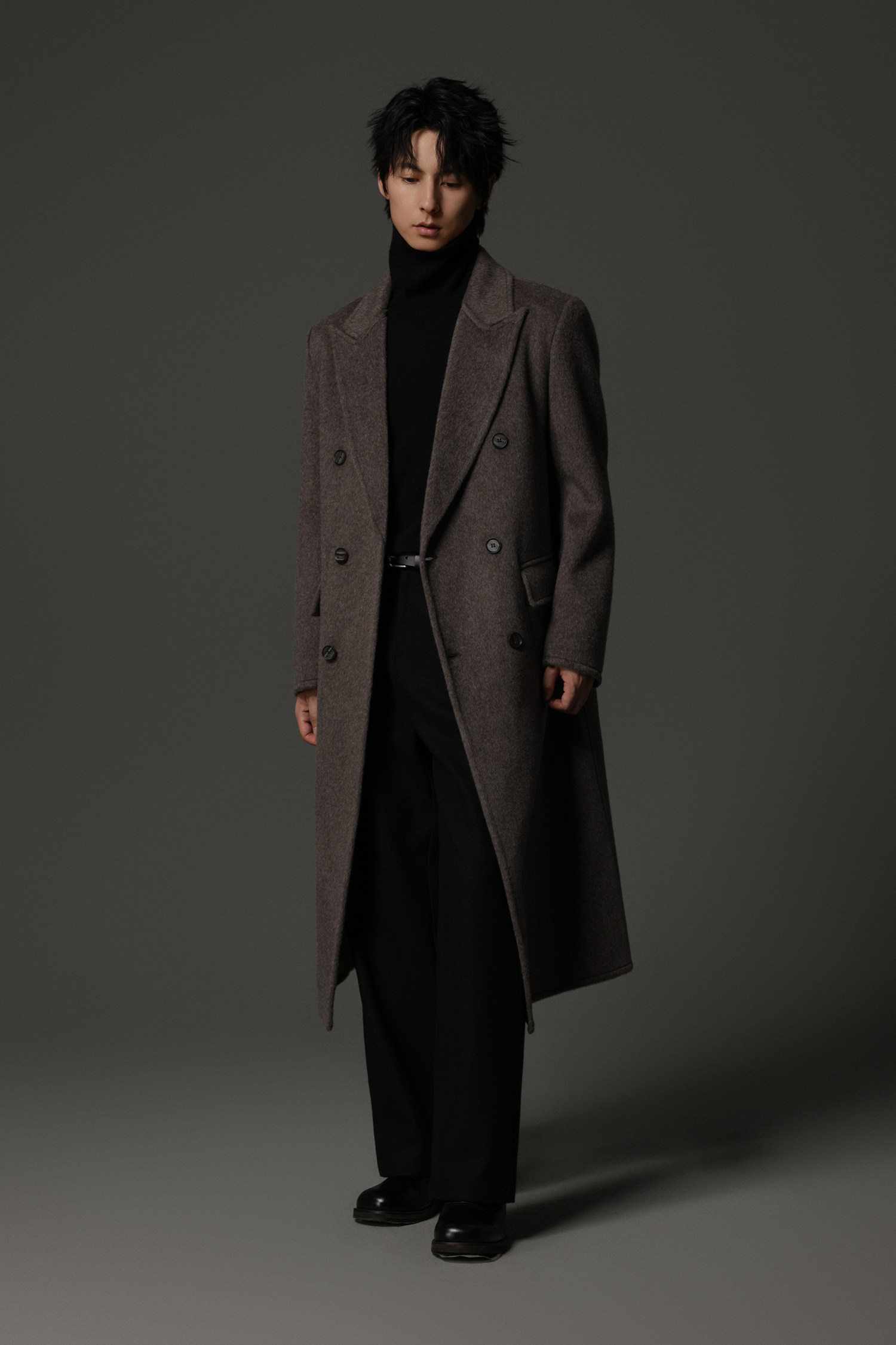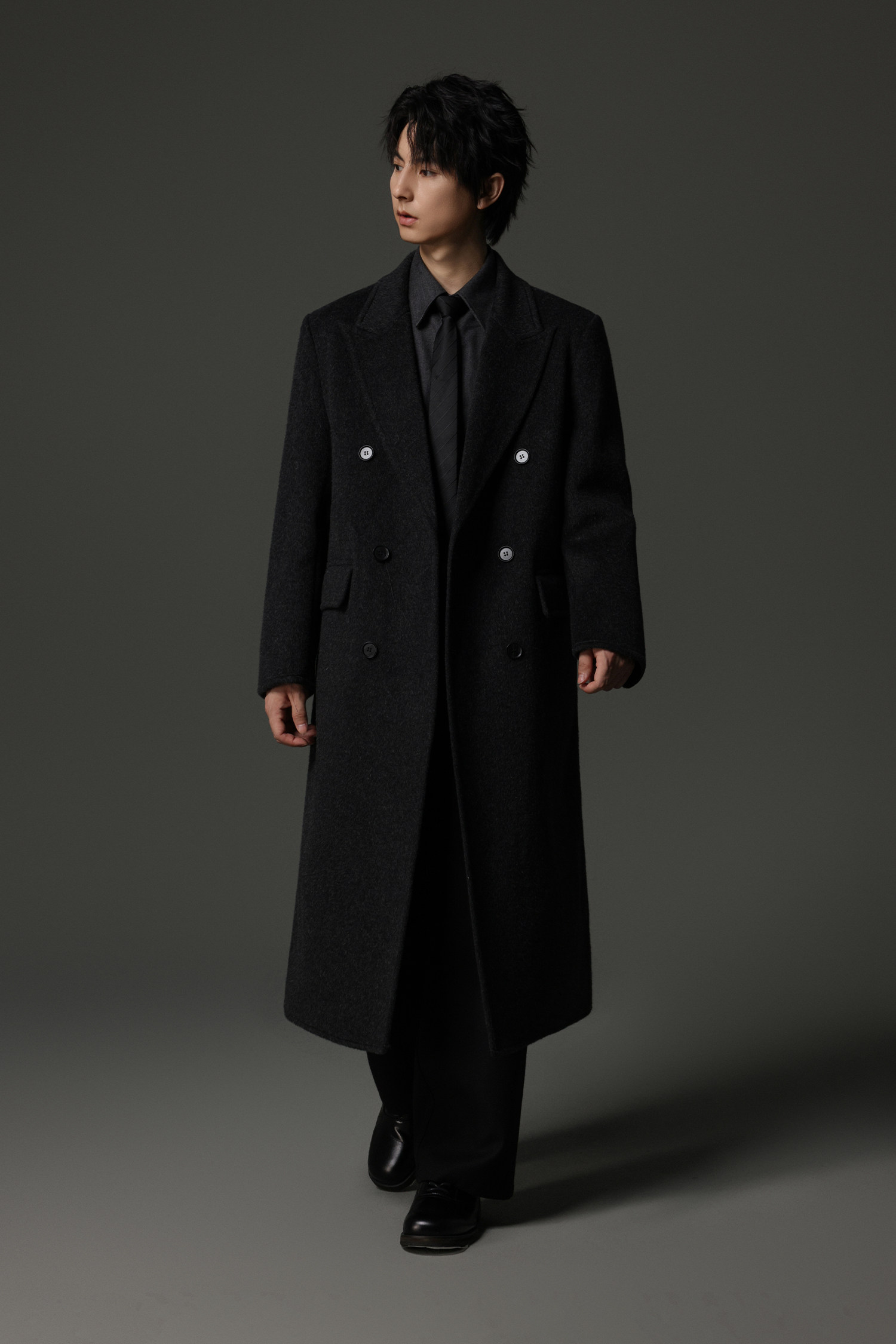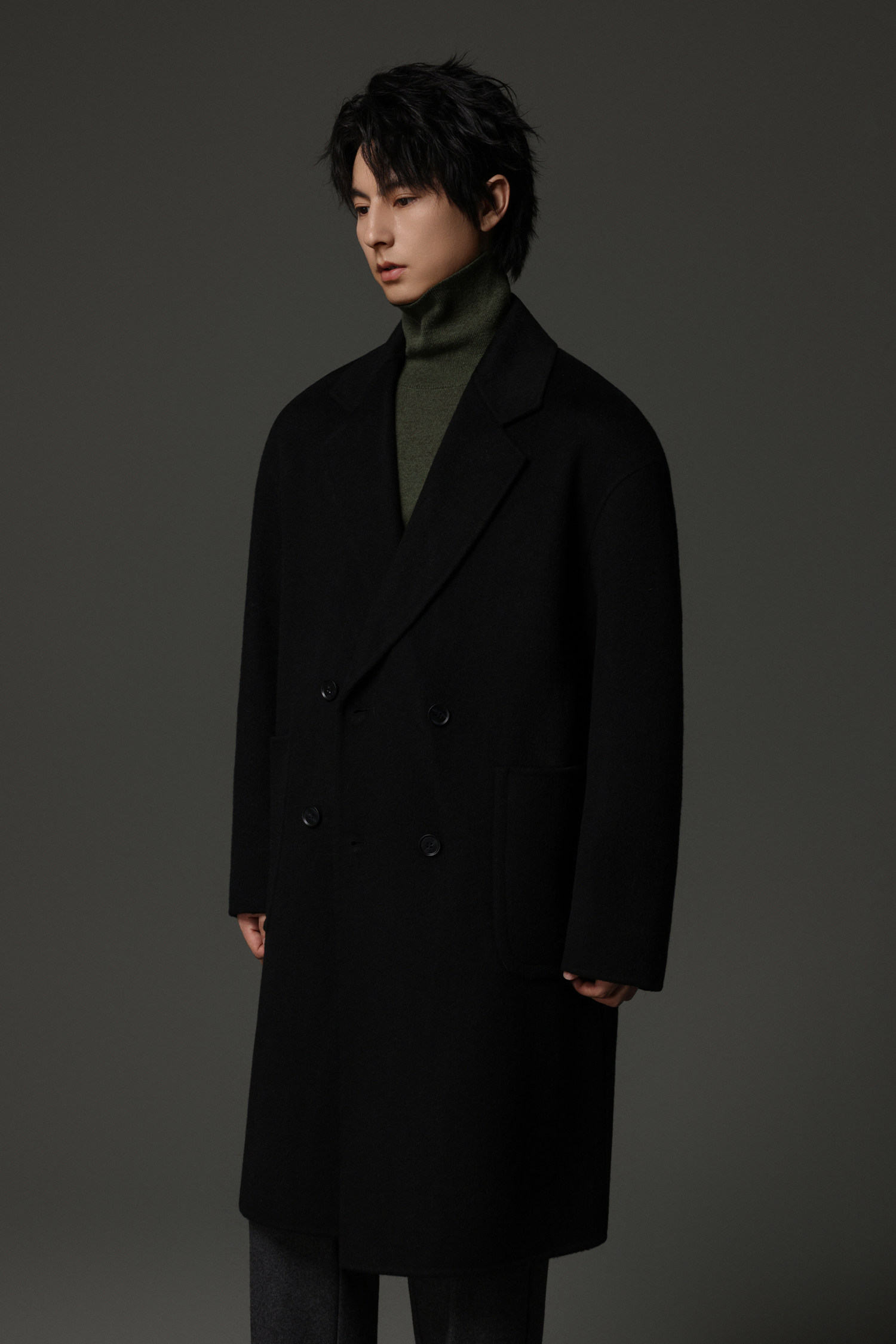 【Double-Sided Full Wool】Men's Over-The-Knee Woolen Coat with Padded Shoulders, Thickened Old Money Style Woolen Jacket