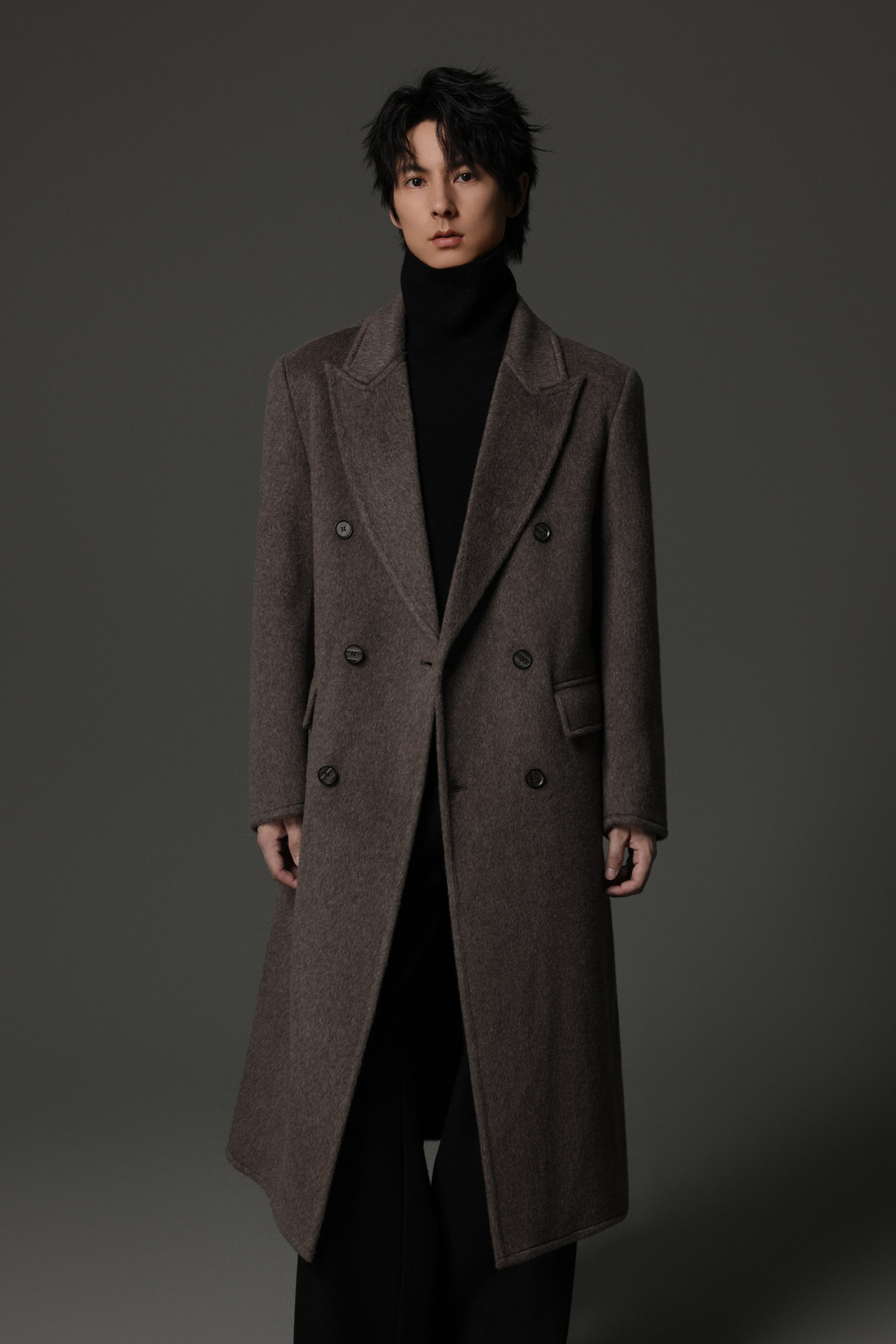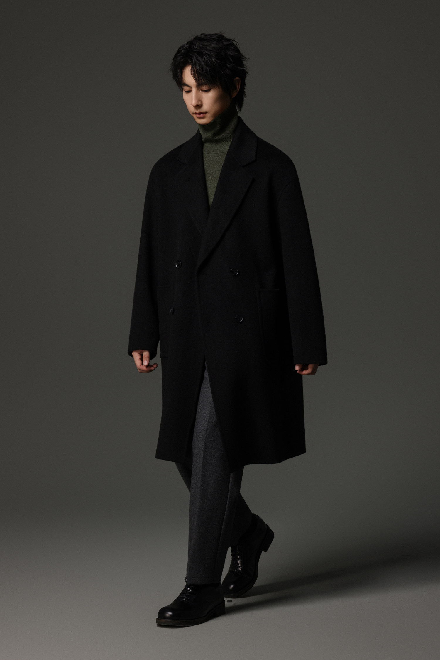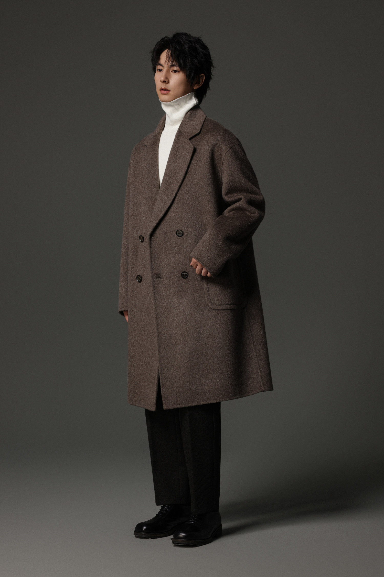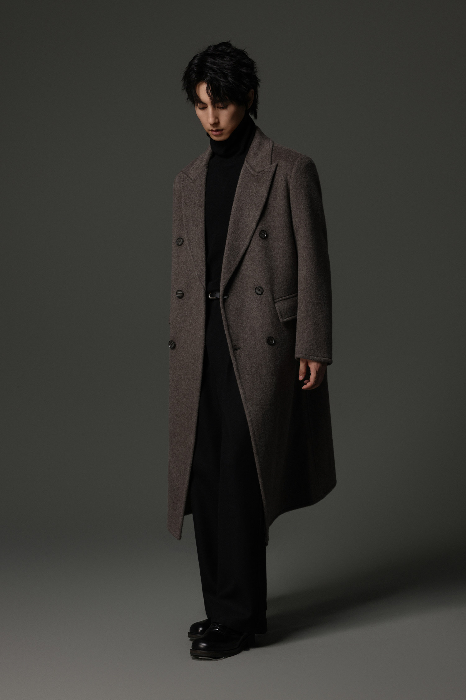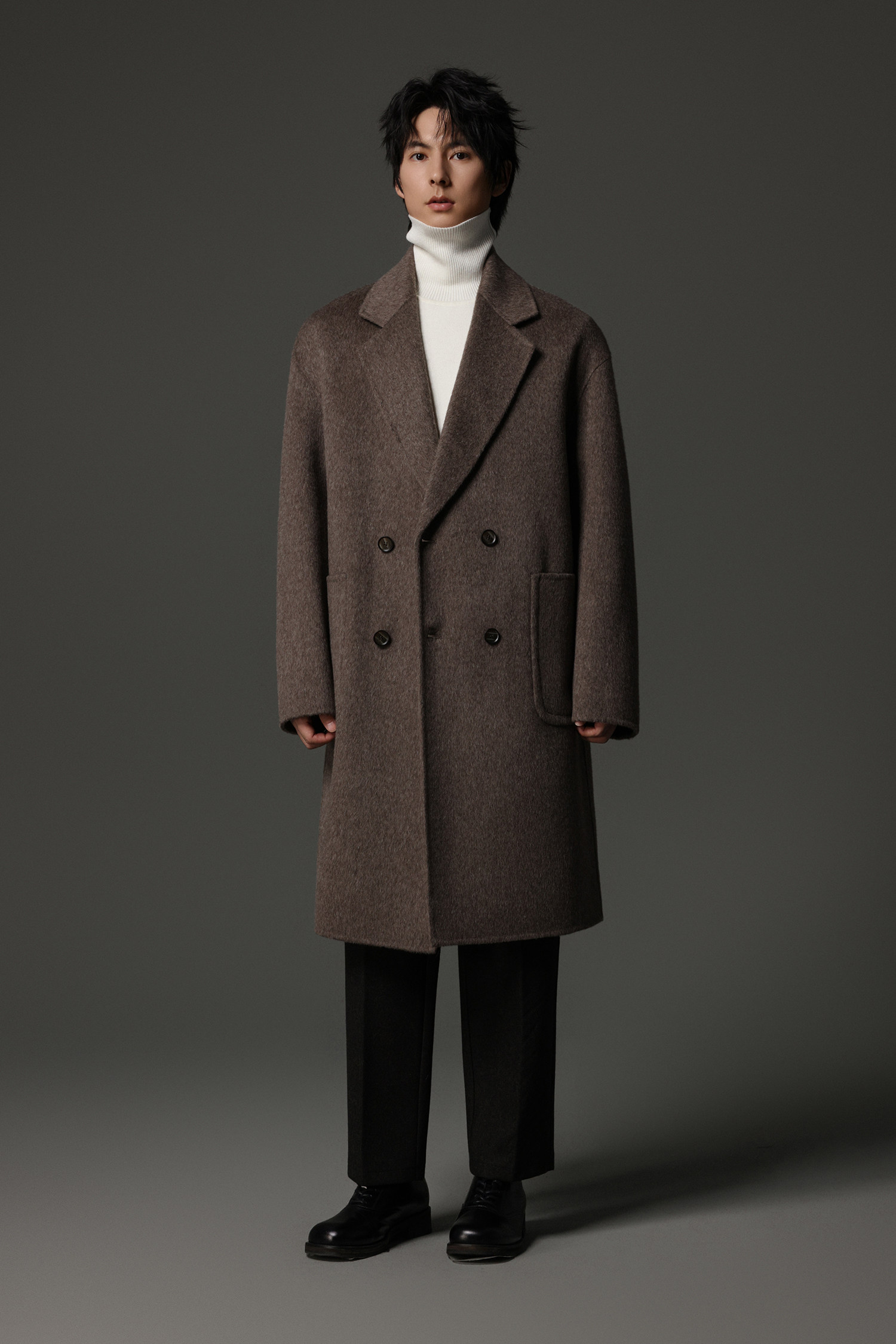 【Double-Sided Full Wool】Men's Over-The-Knee Woolen Coat with Padded Shoulders, Thickened Old Money Style Woolen Jacket